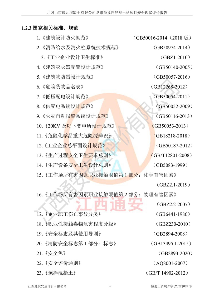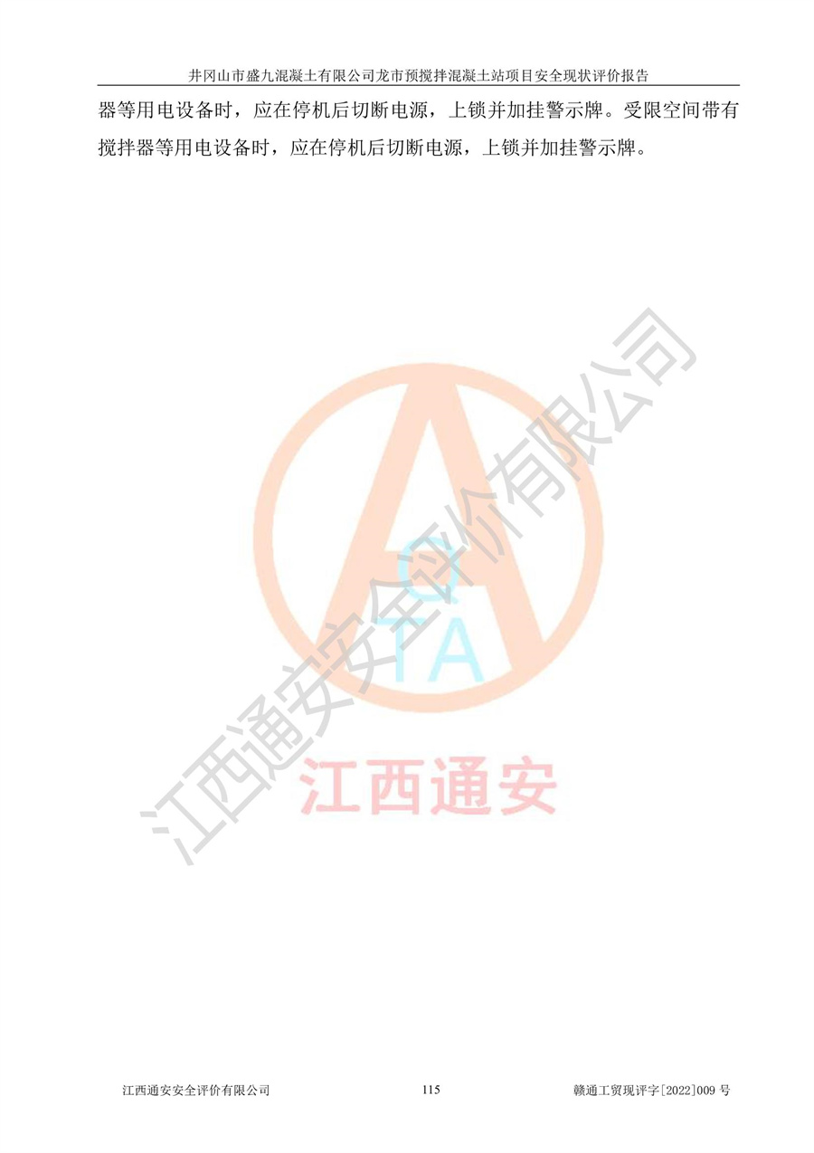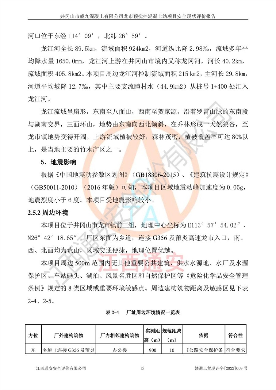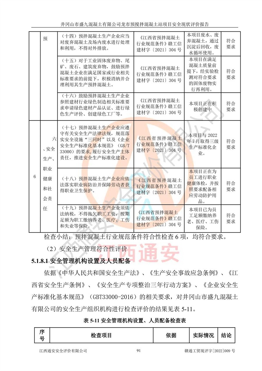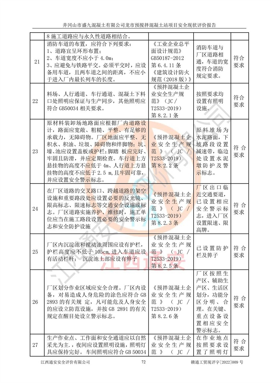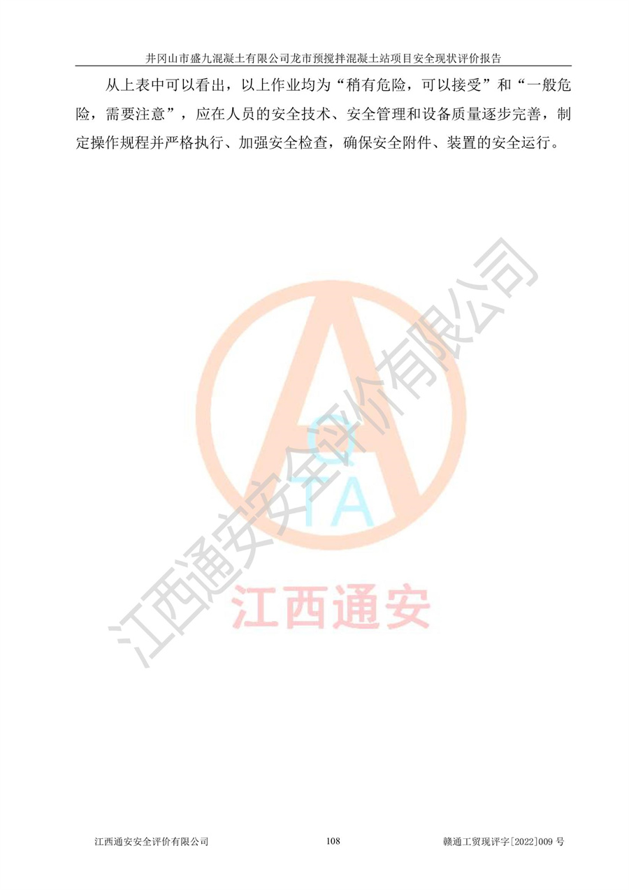 井岡山市盛九混凝土有限公司龍市預(yù)攪拌混凝土站項目安全現(xiàn)狀評價報告