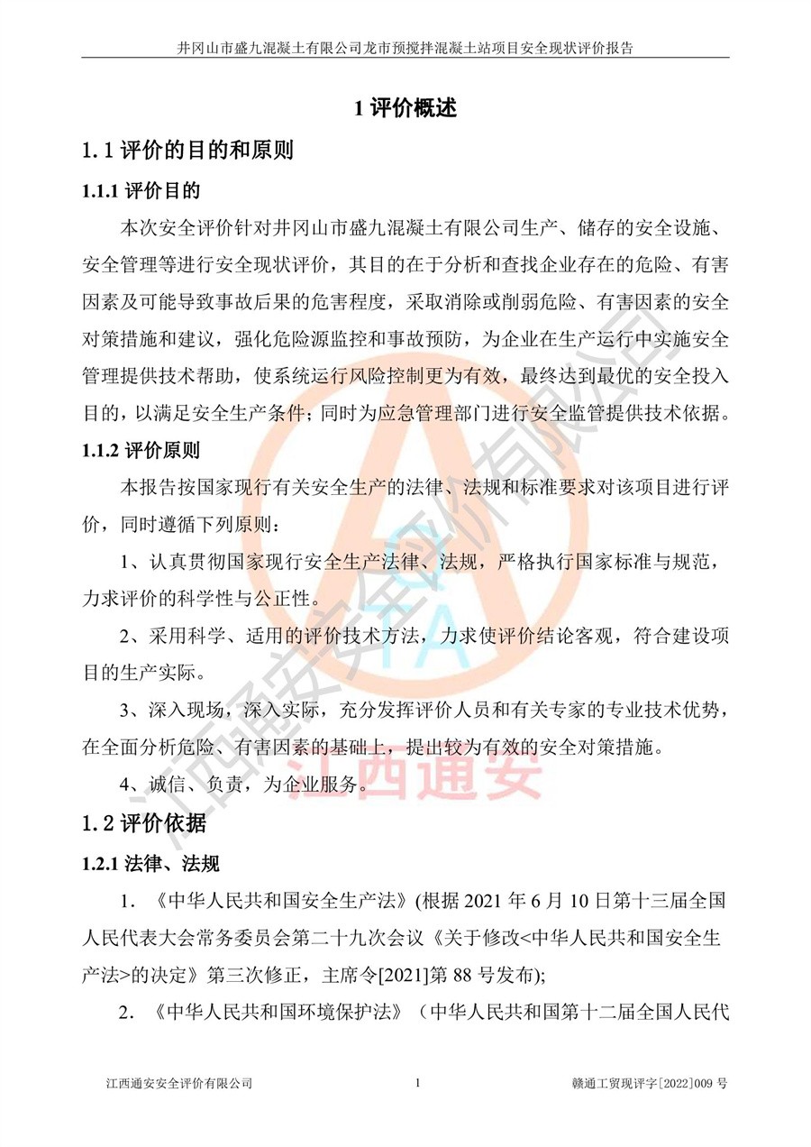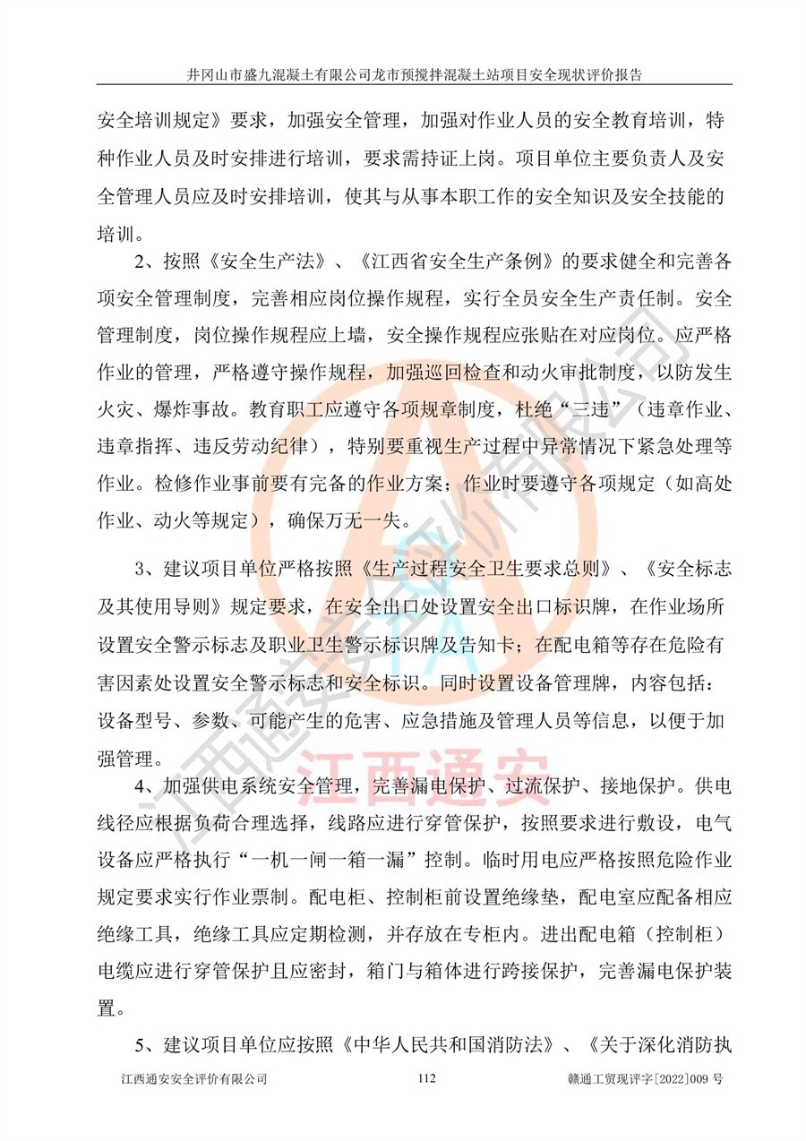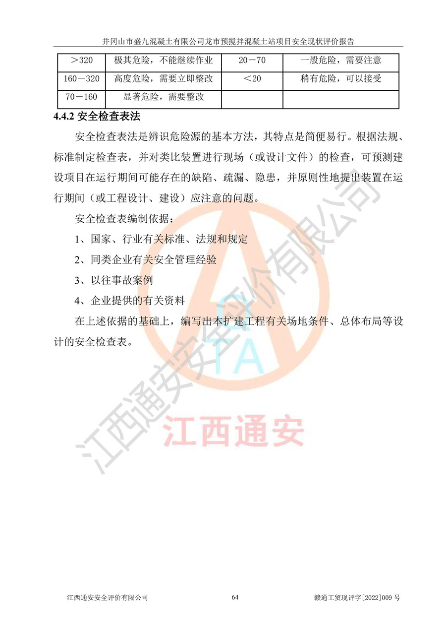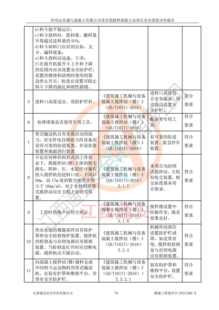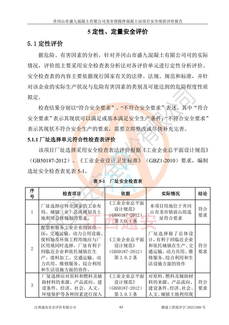 井岡山市盛九混凝土有限公司龍市預(yù)攪拌混凝土站項目安全現(xiàn)狀評價報告