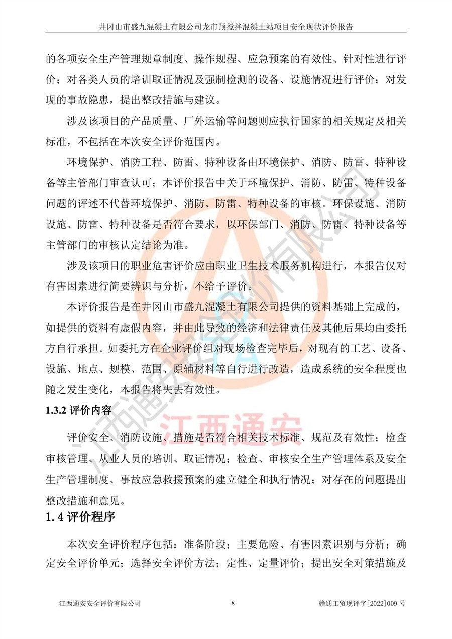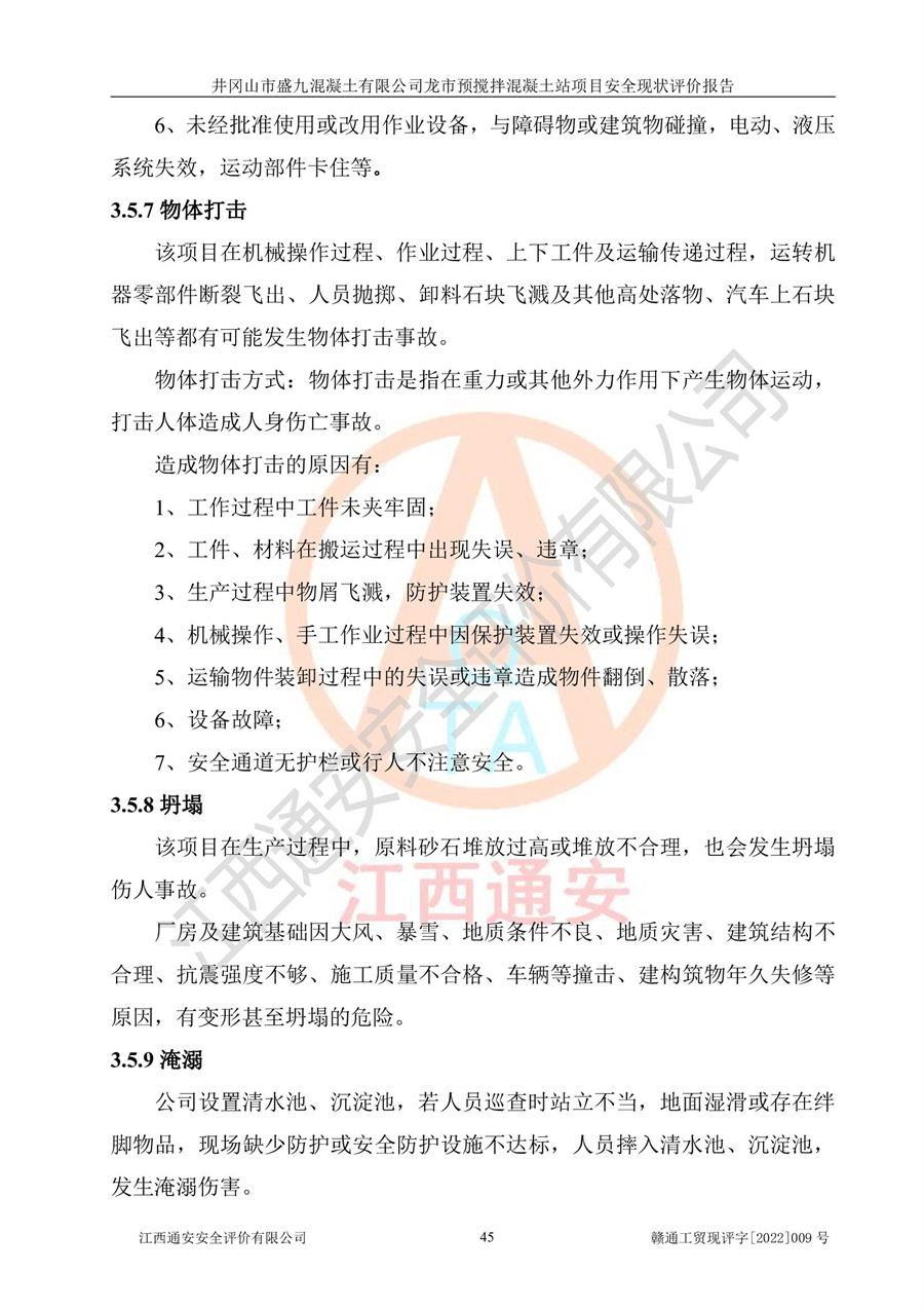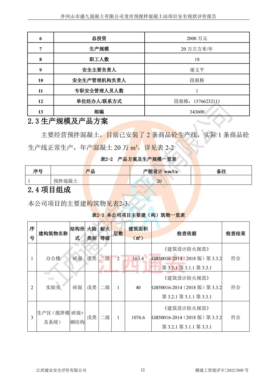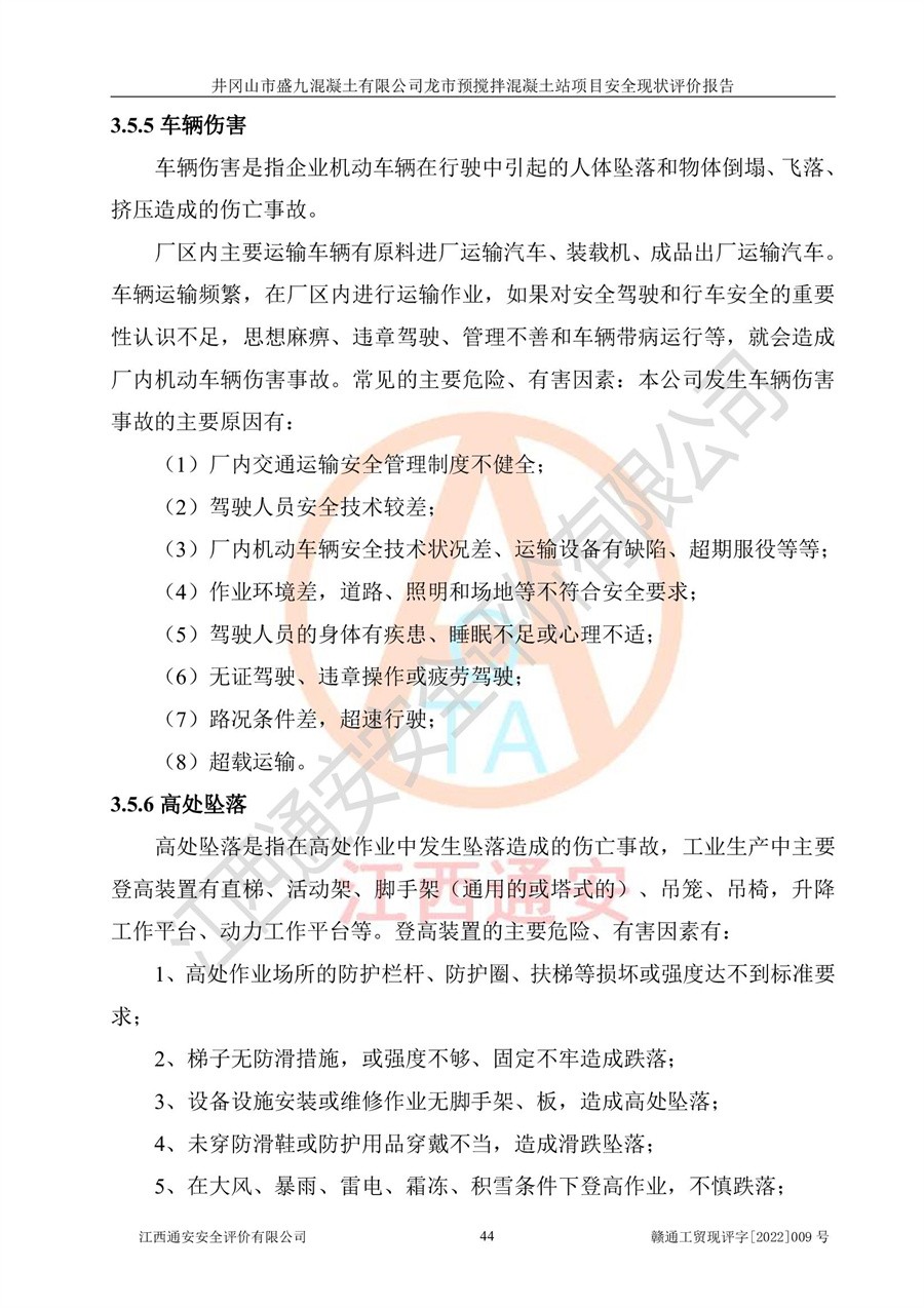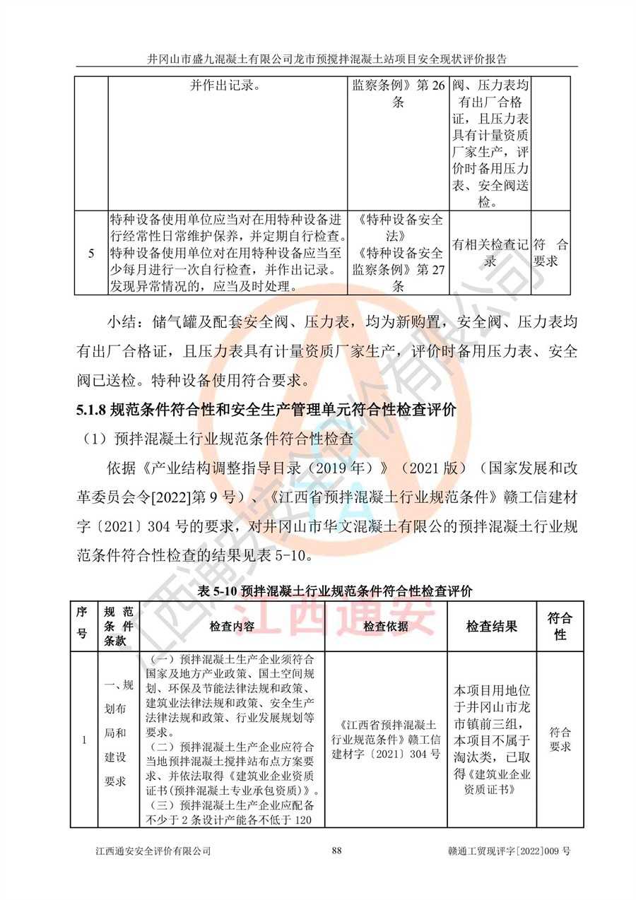 井岡山市盛九混凝土有限公司龍市預(yù)攪拌混凝土站項目安全現(xiàn)狀評價報告