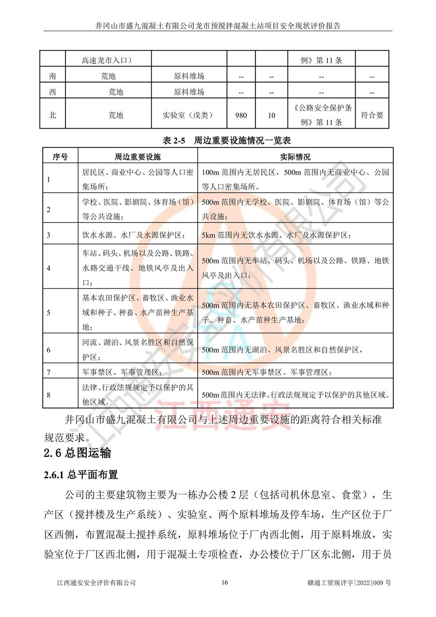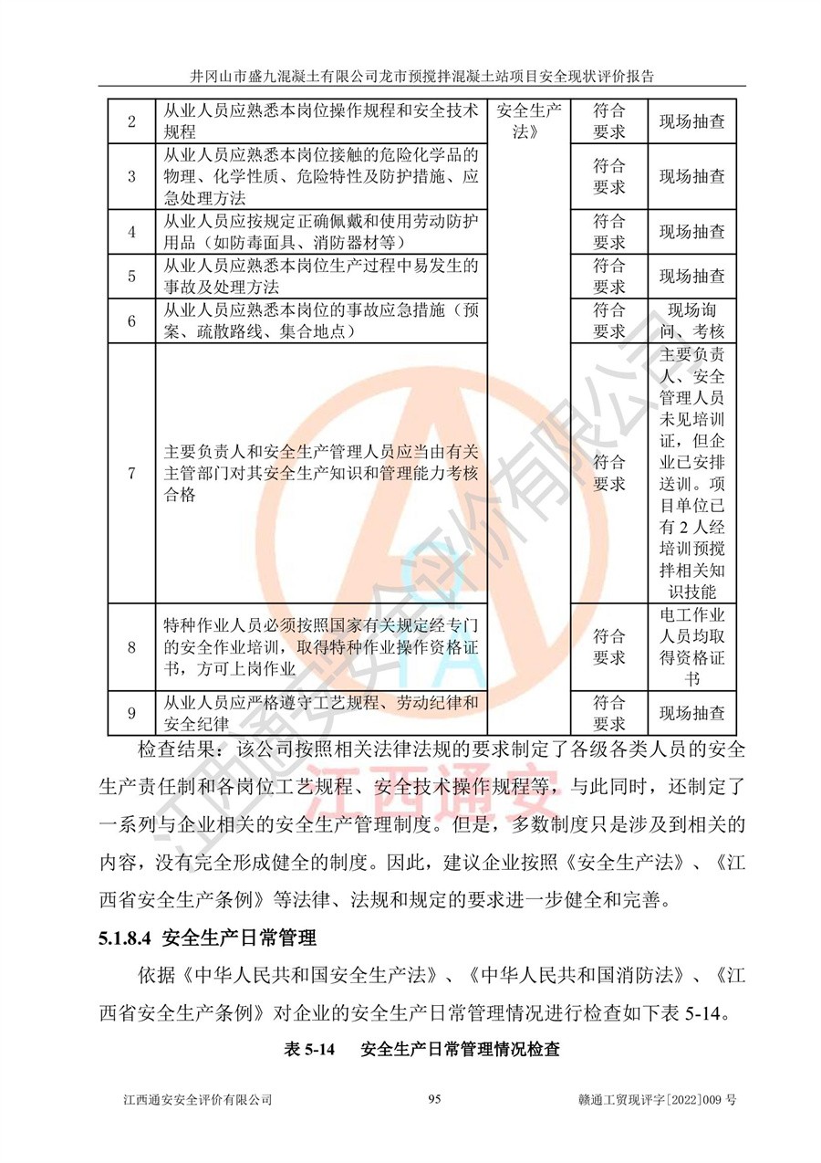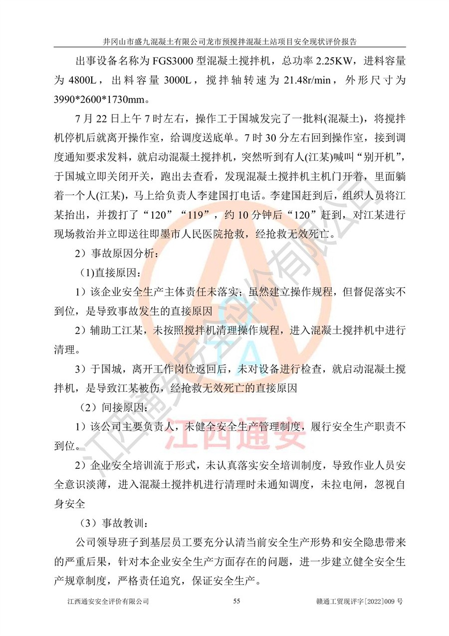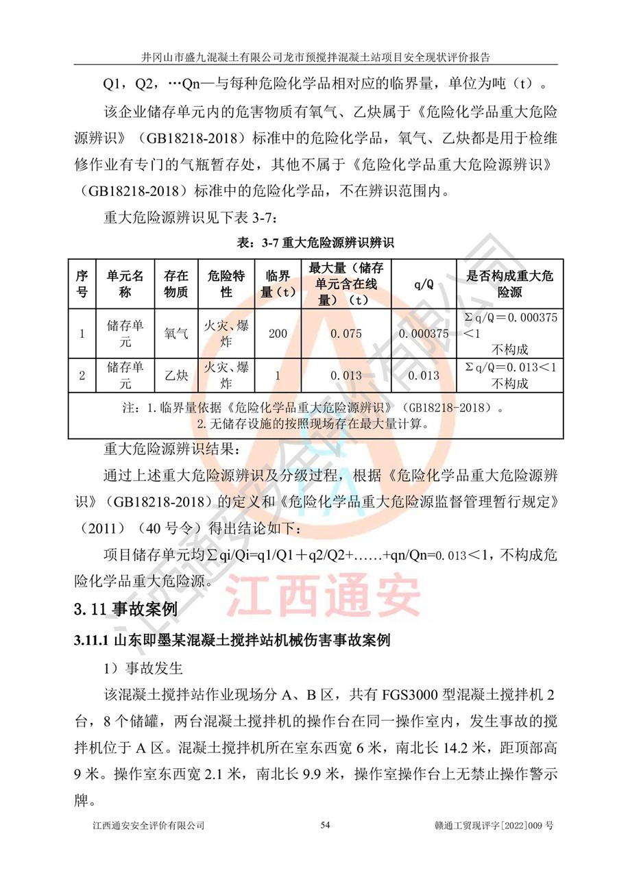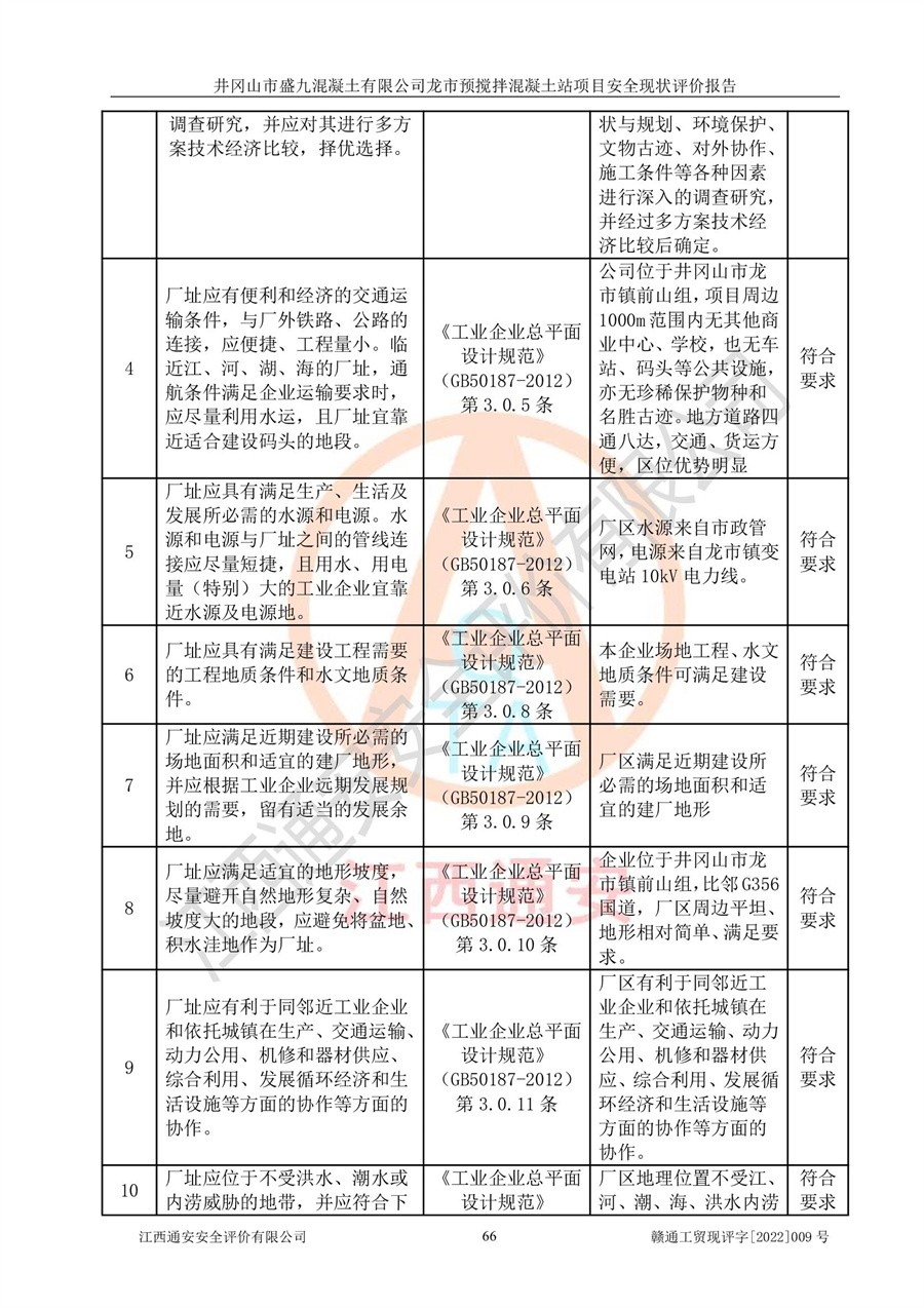 井岡山市盛九混凝土有限公司龍市預(yù)攪拌混凝土站項目安全現(xiàn)狀評價報告