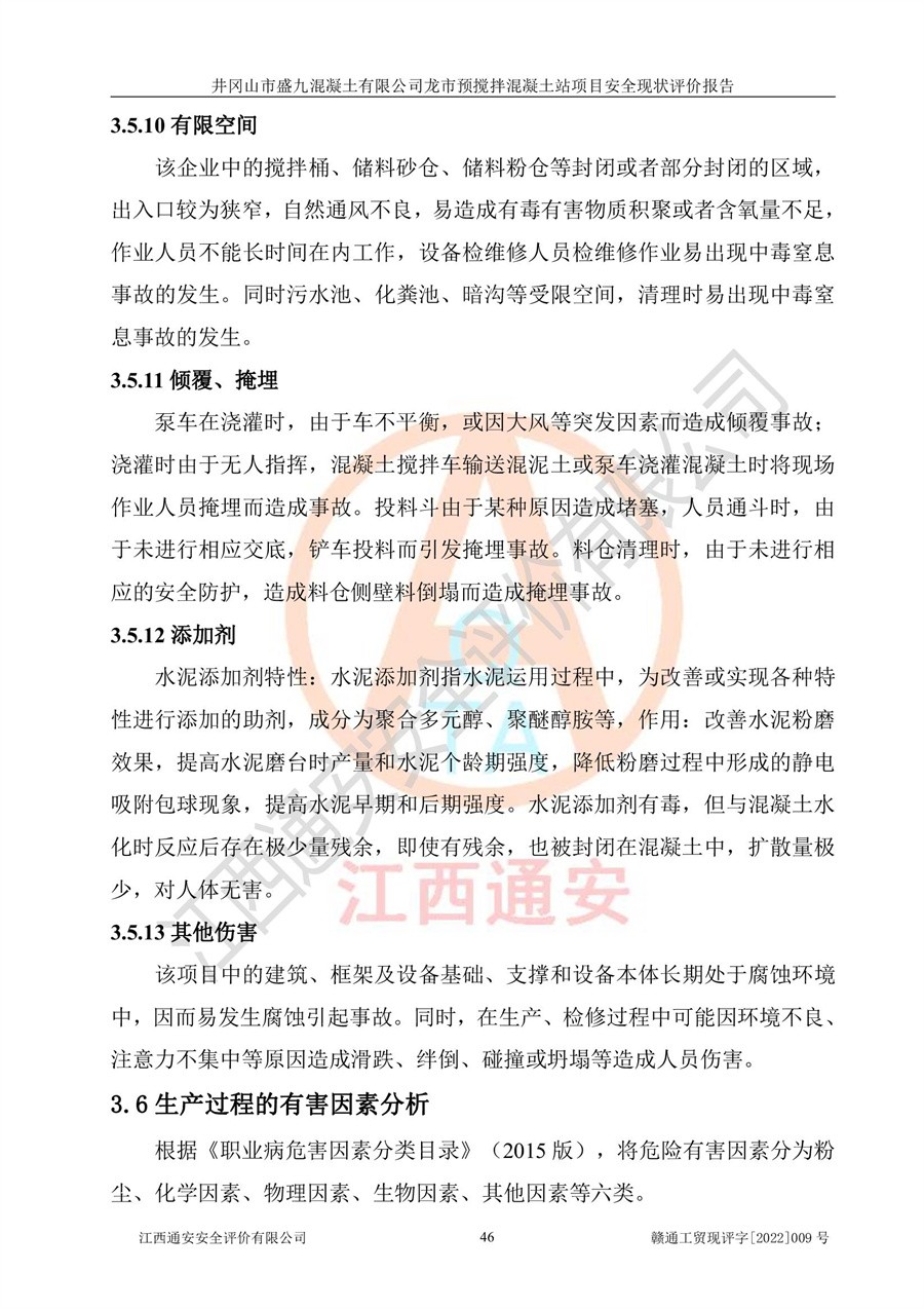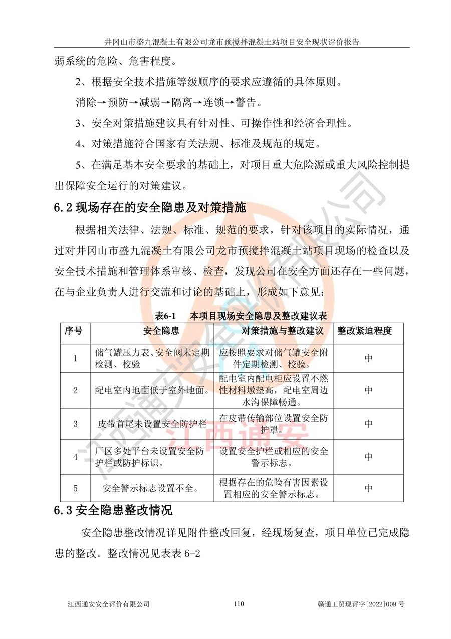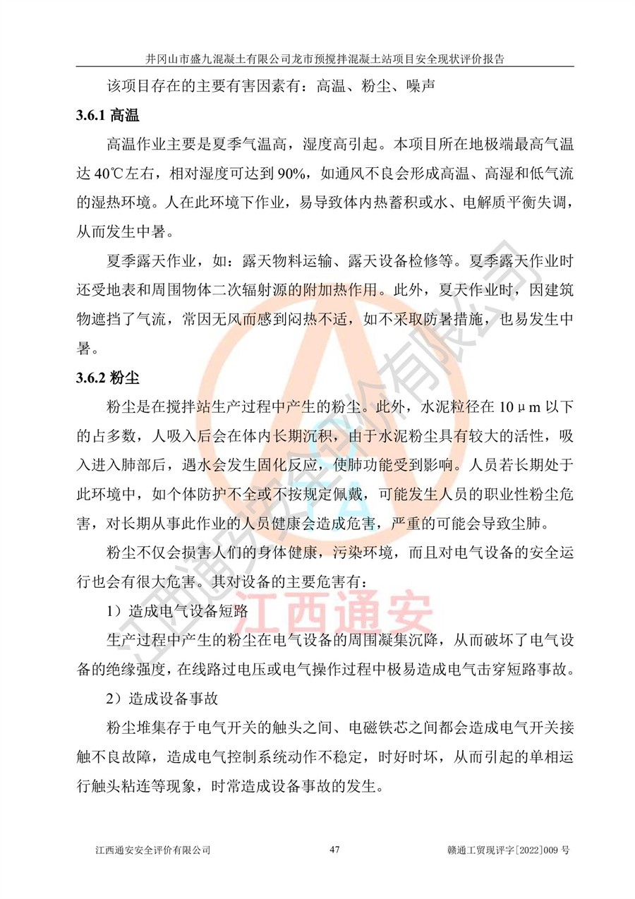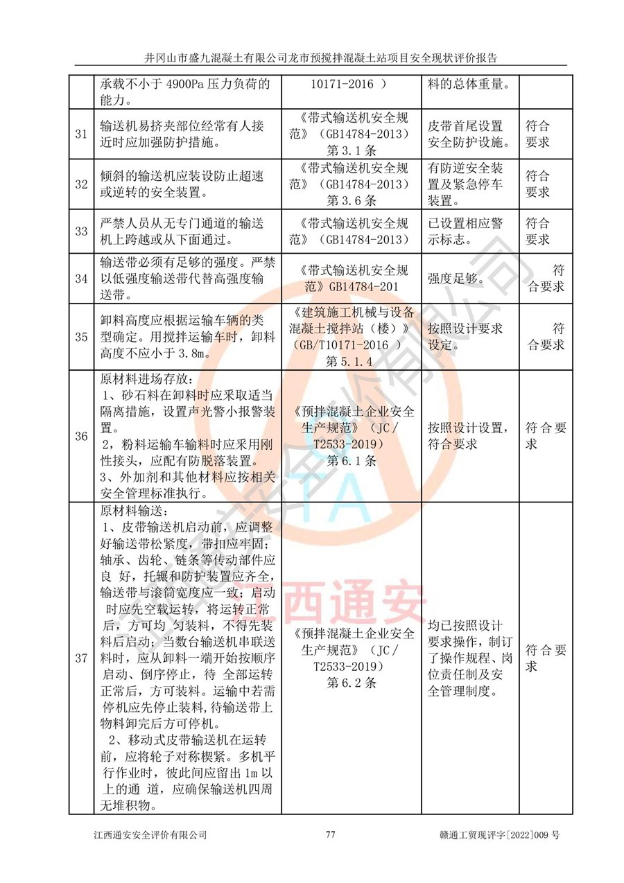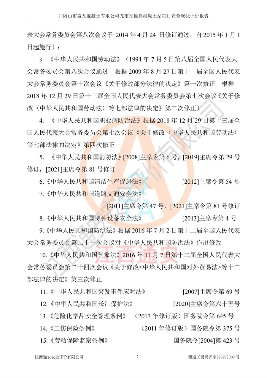 井岡山市盛九混凝土有限公司龍市預(yù)攪拌混凝土站項目安全現(xiàn)狀評價報告