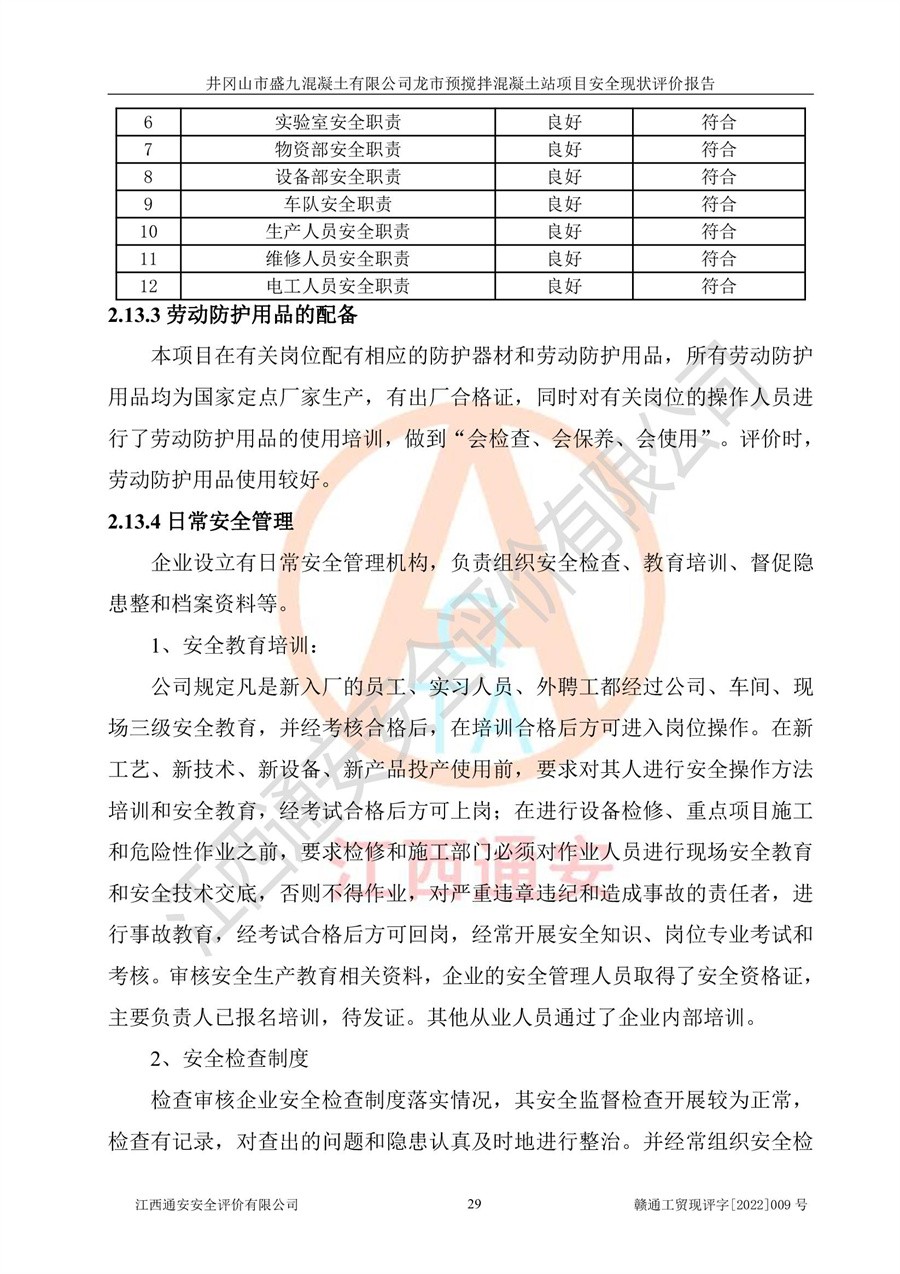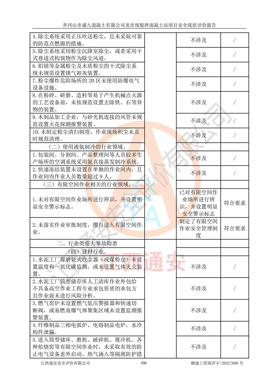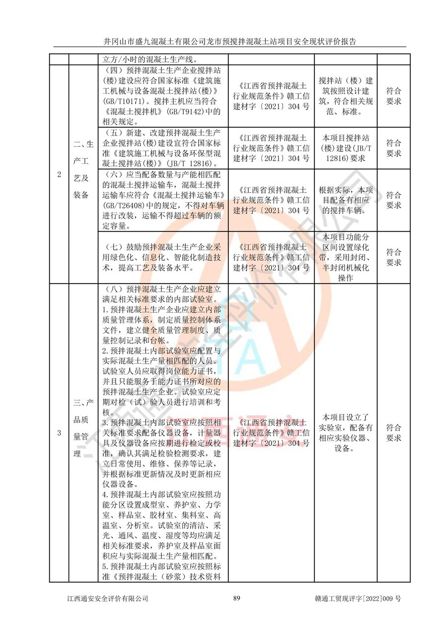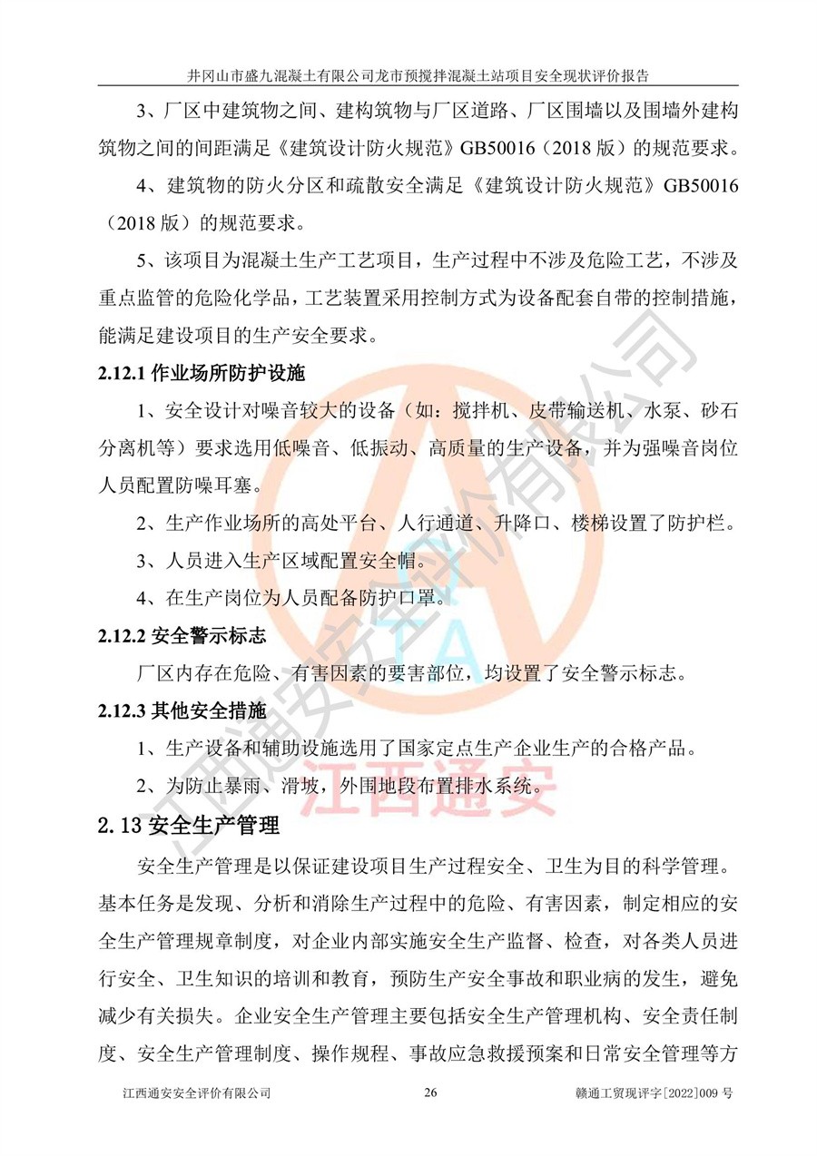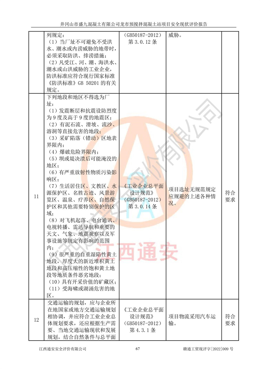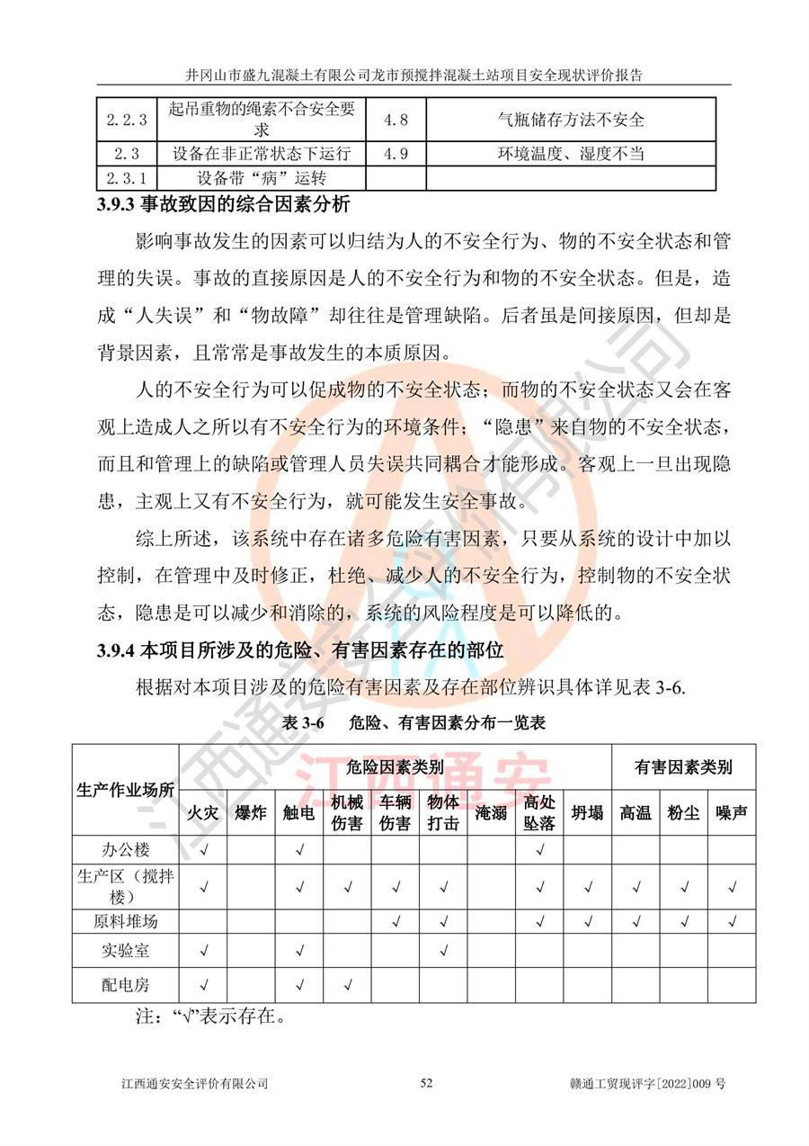井岡山市盛九混凝土有限公司龍市預(yù)攪拌混凝土站項目安全現(xiàn)狀評價報告
