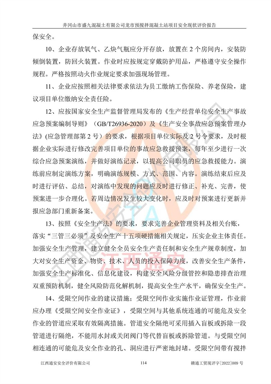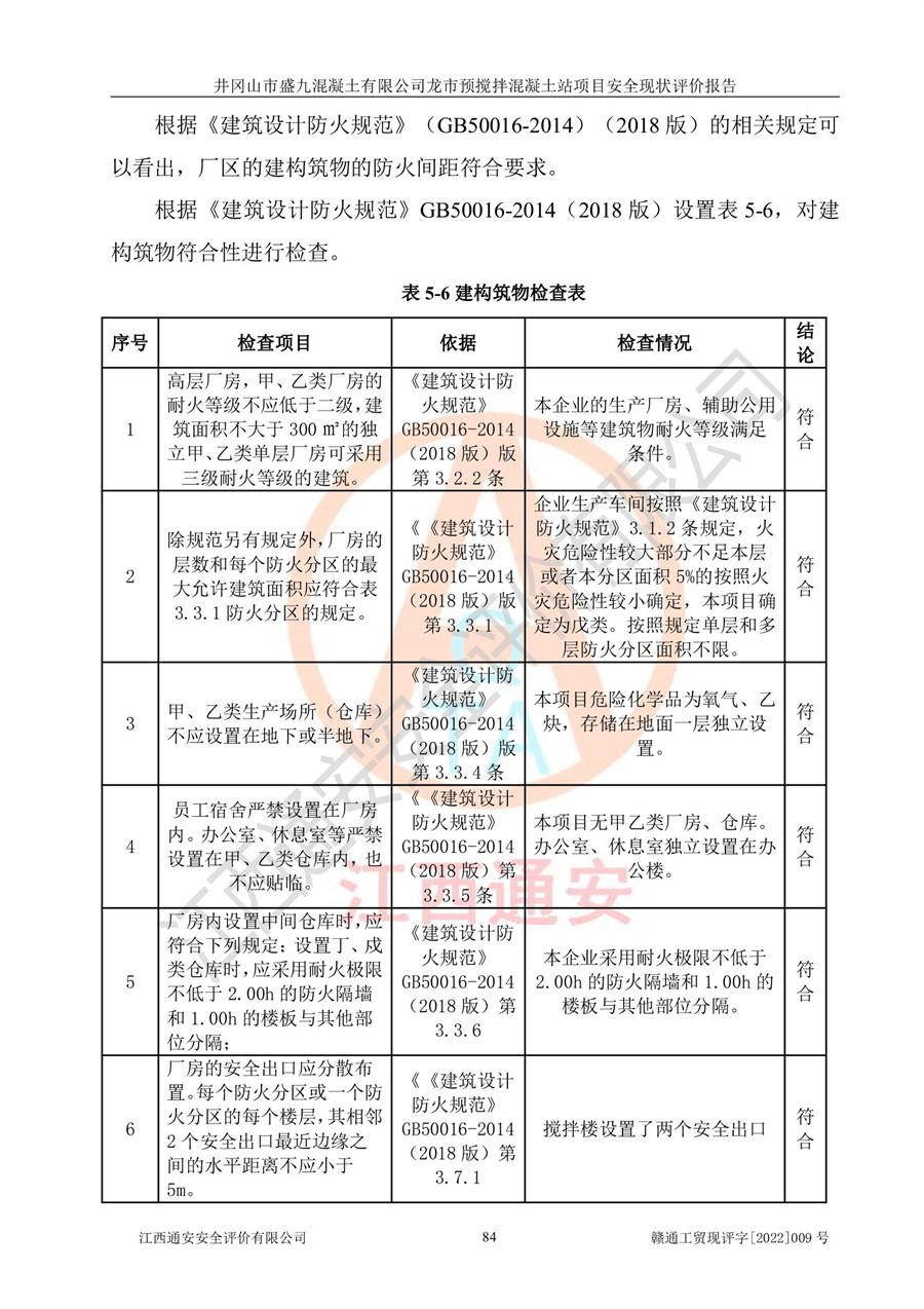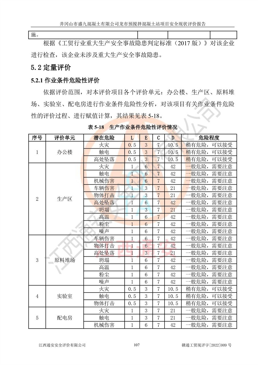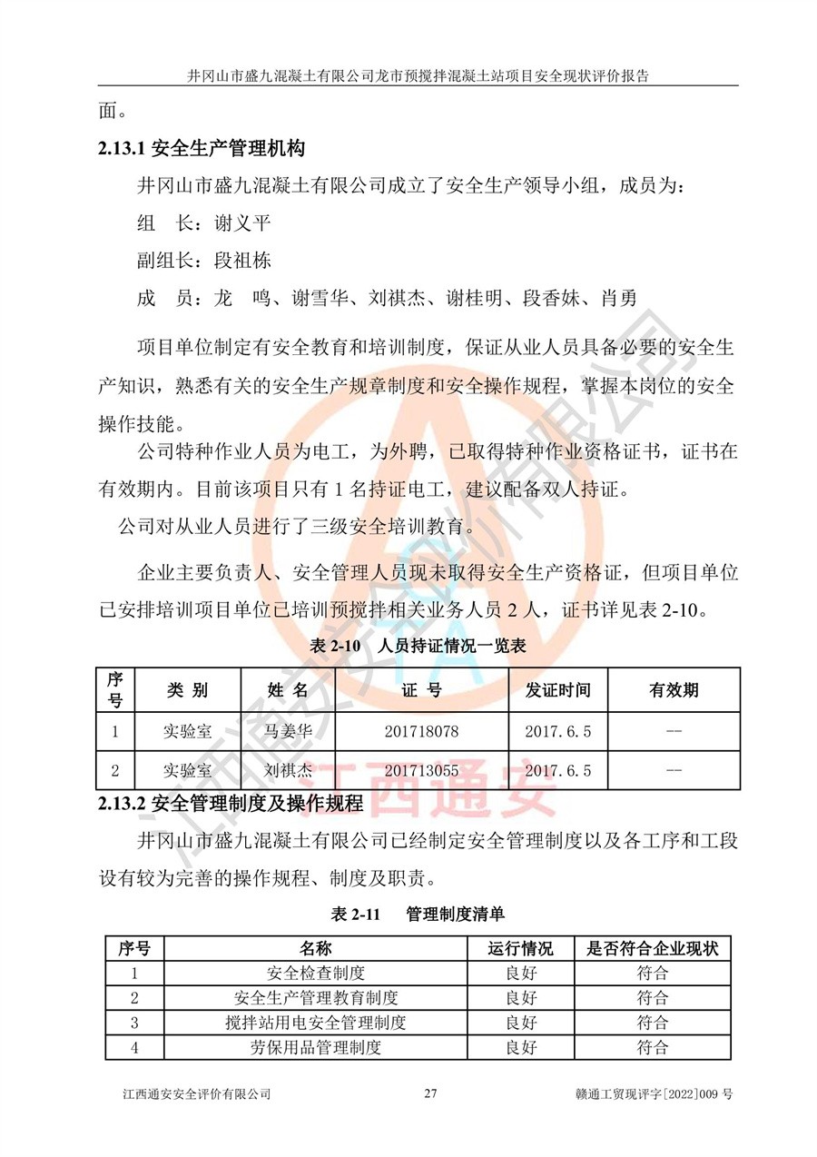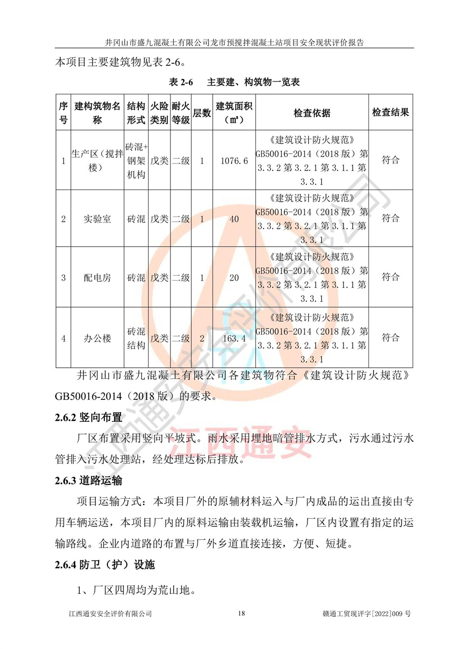 井岡山市盛九混凝土有限公司龍市預(yù)攪拌混凝土站項目安全現(xiàn)狀評價報告