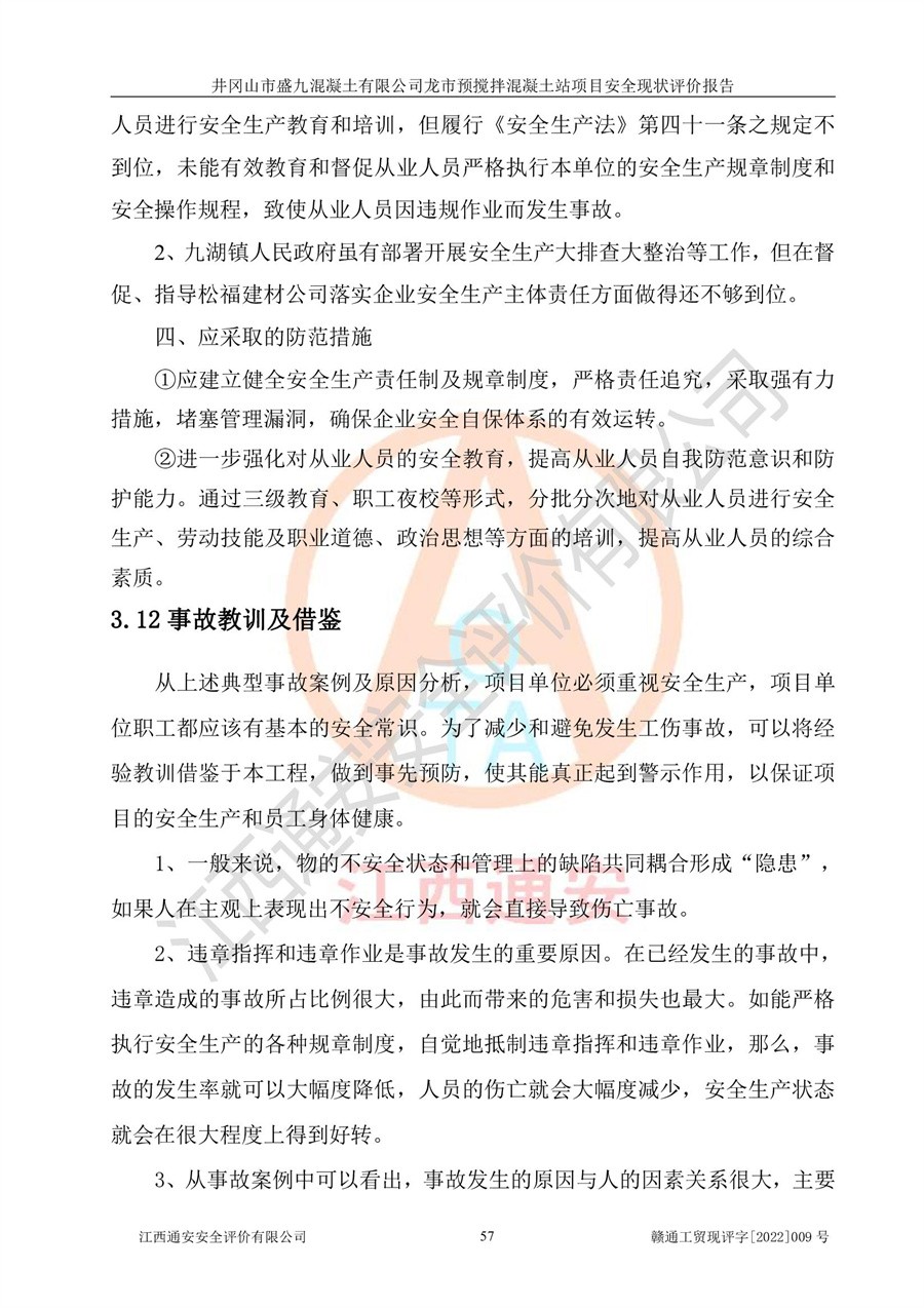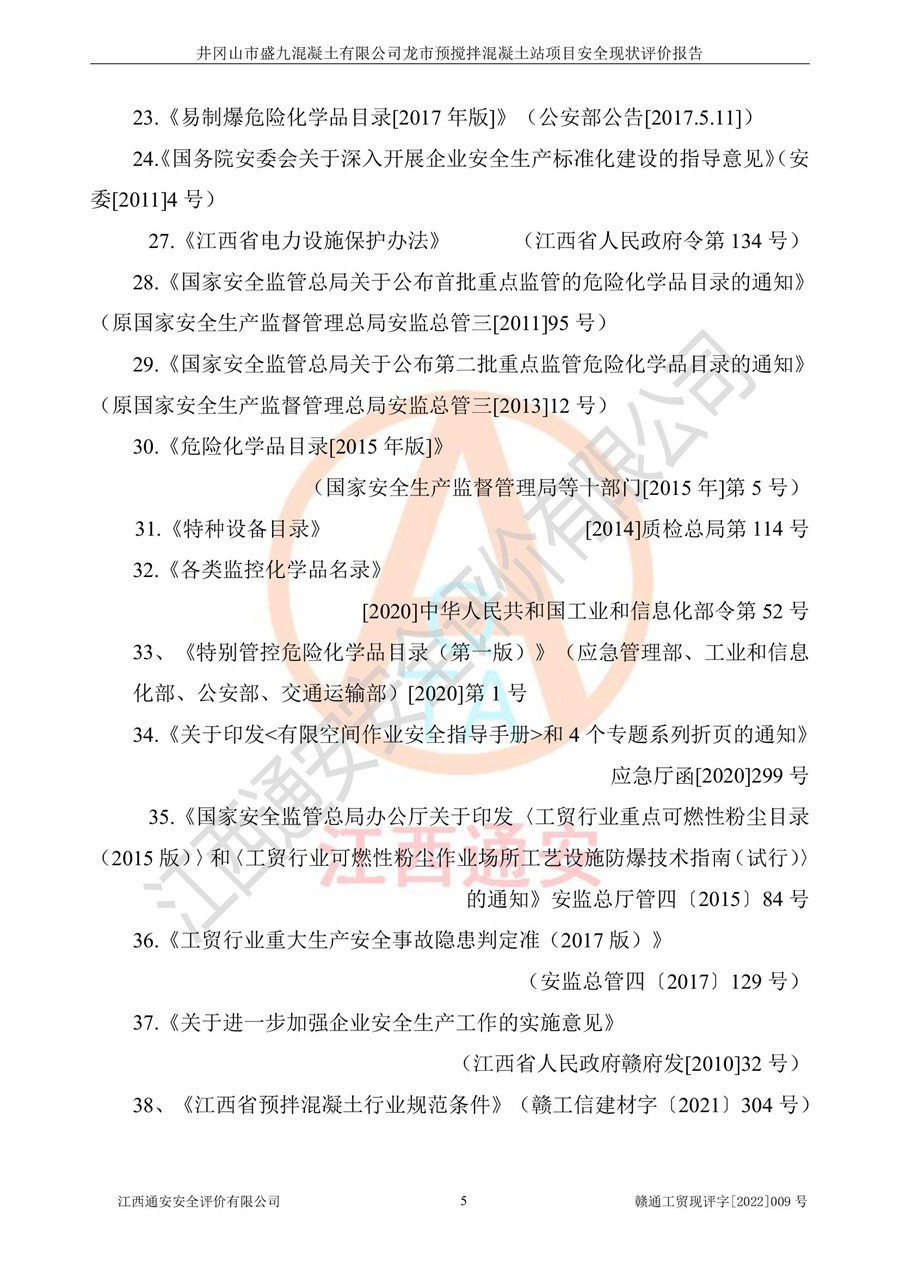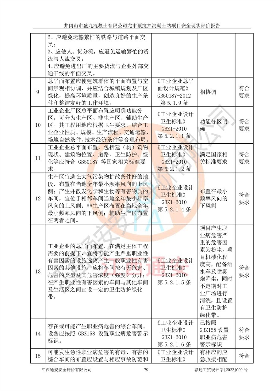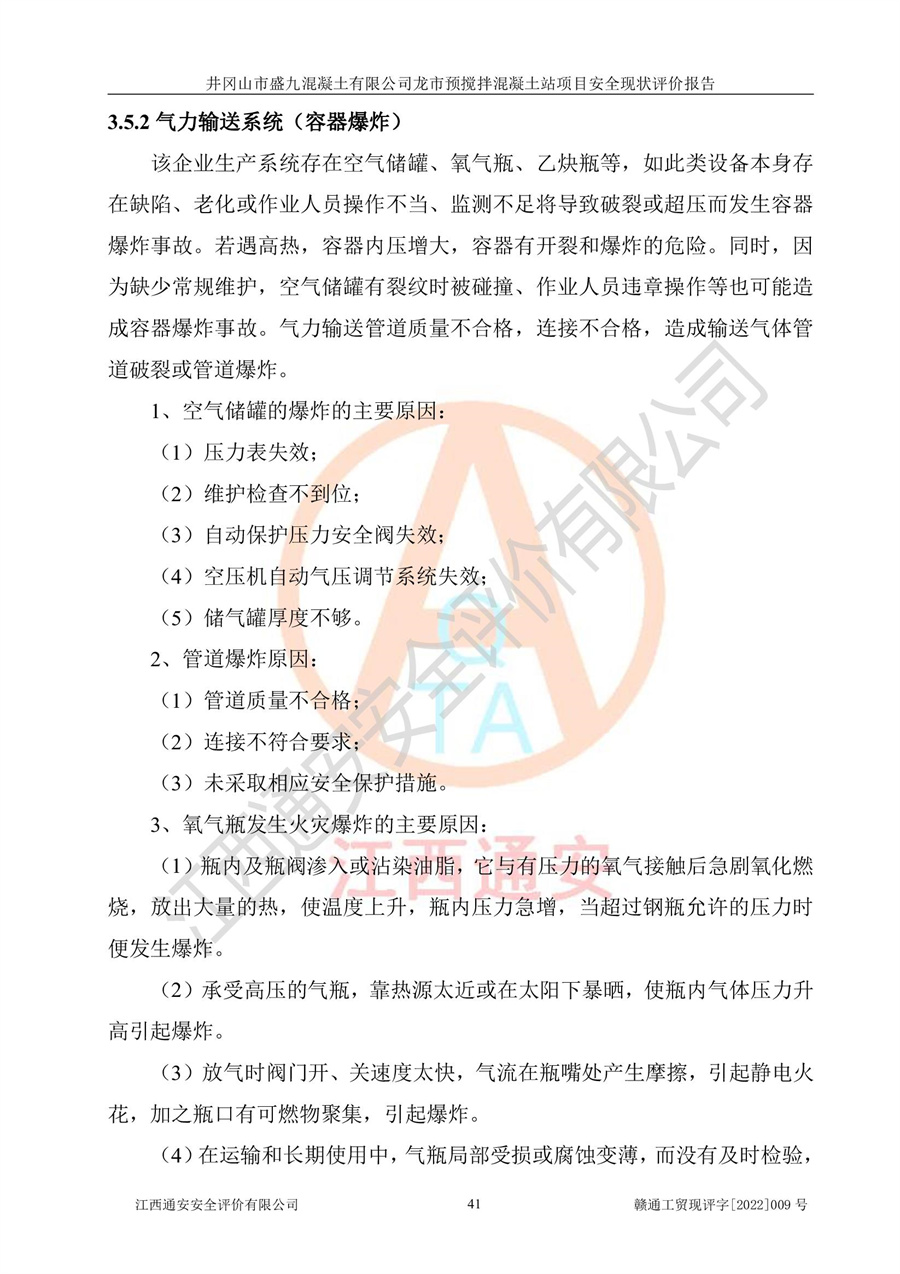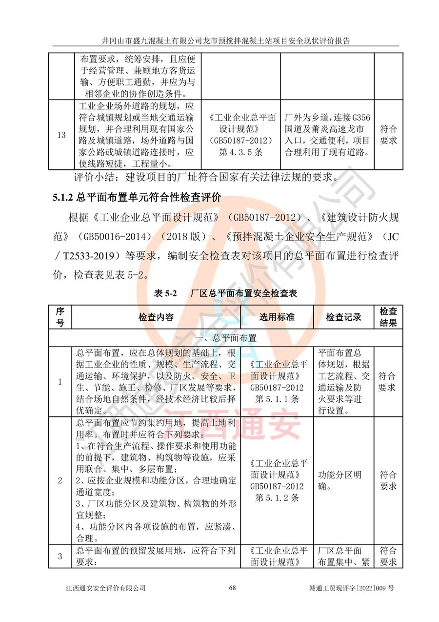 井岡山市盛九混凝土有限公司龍市預(yù)攪拌混凝土站項目安全現(xiàn)狀評價報告