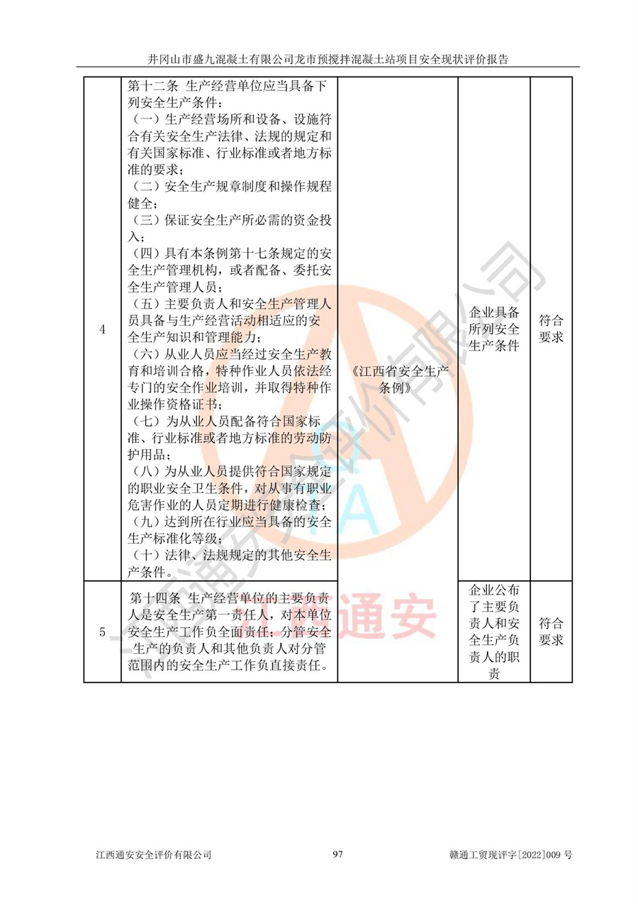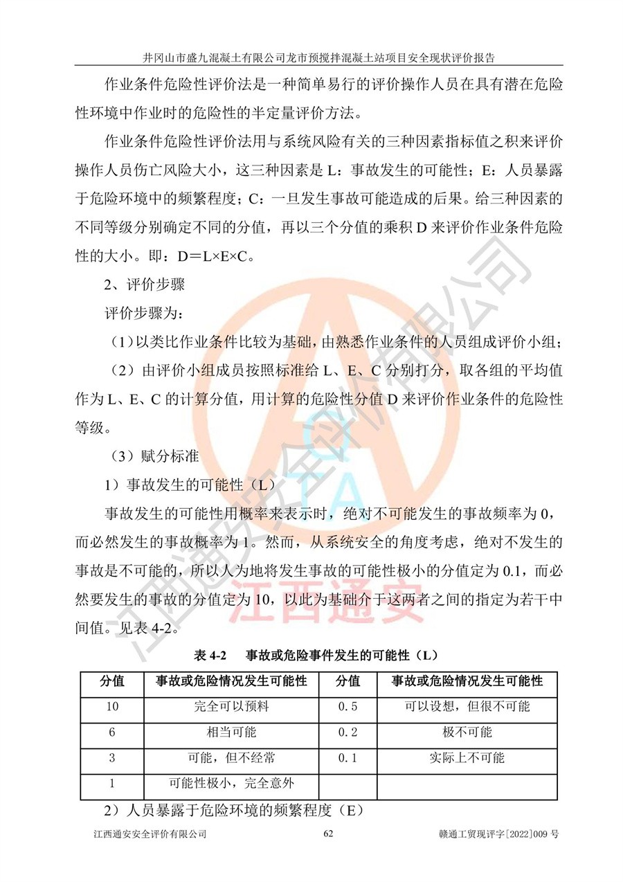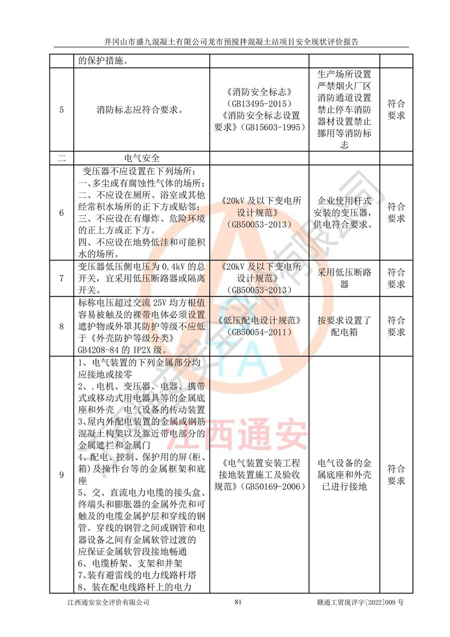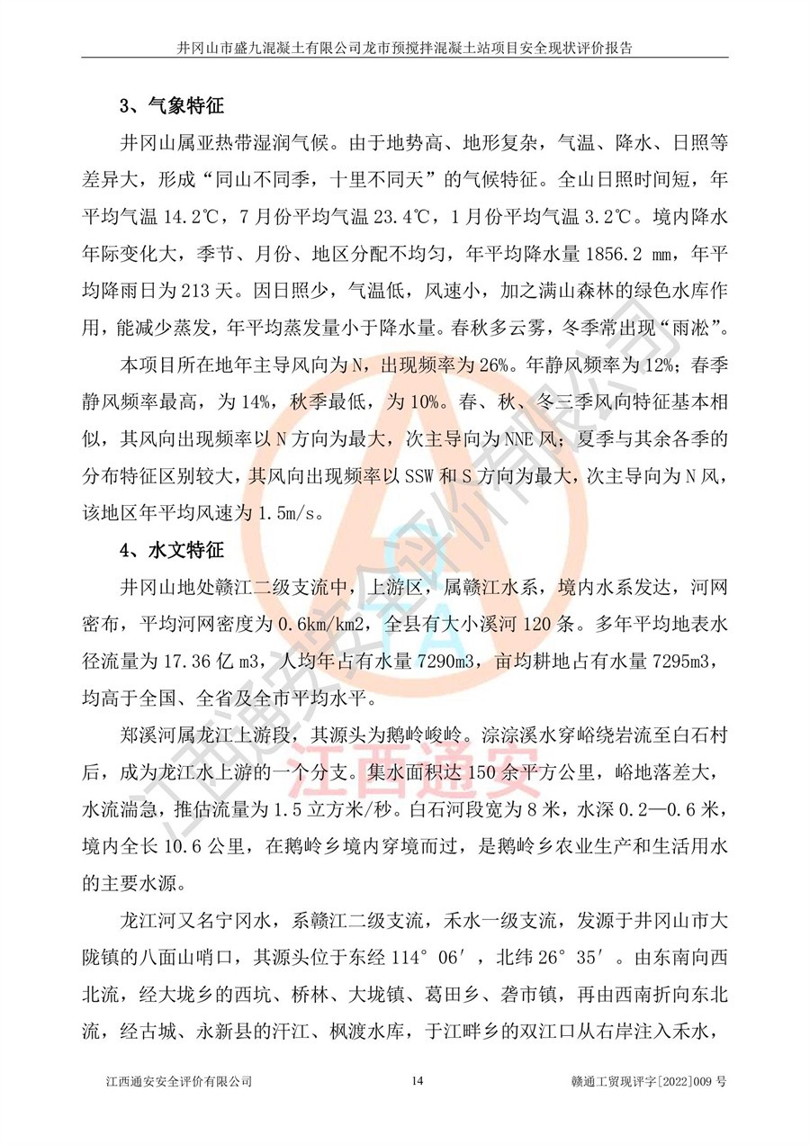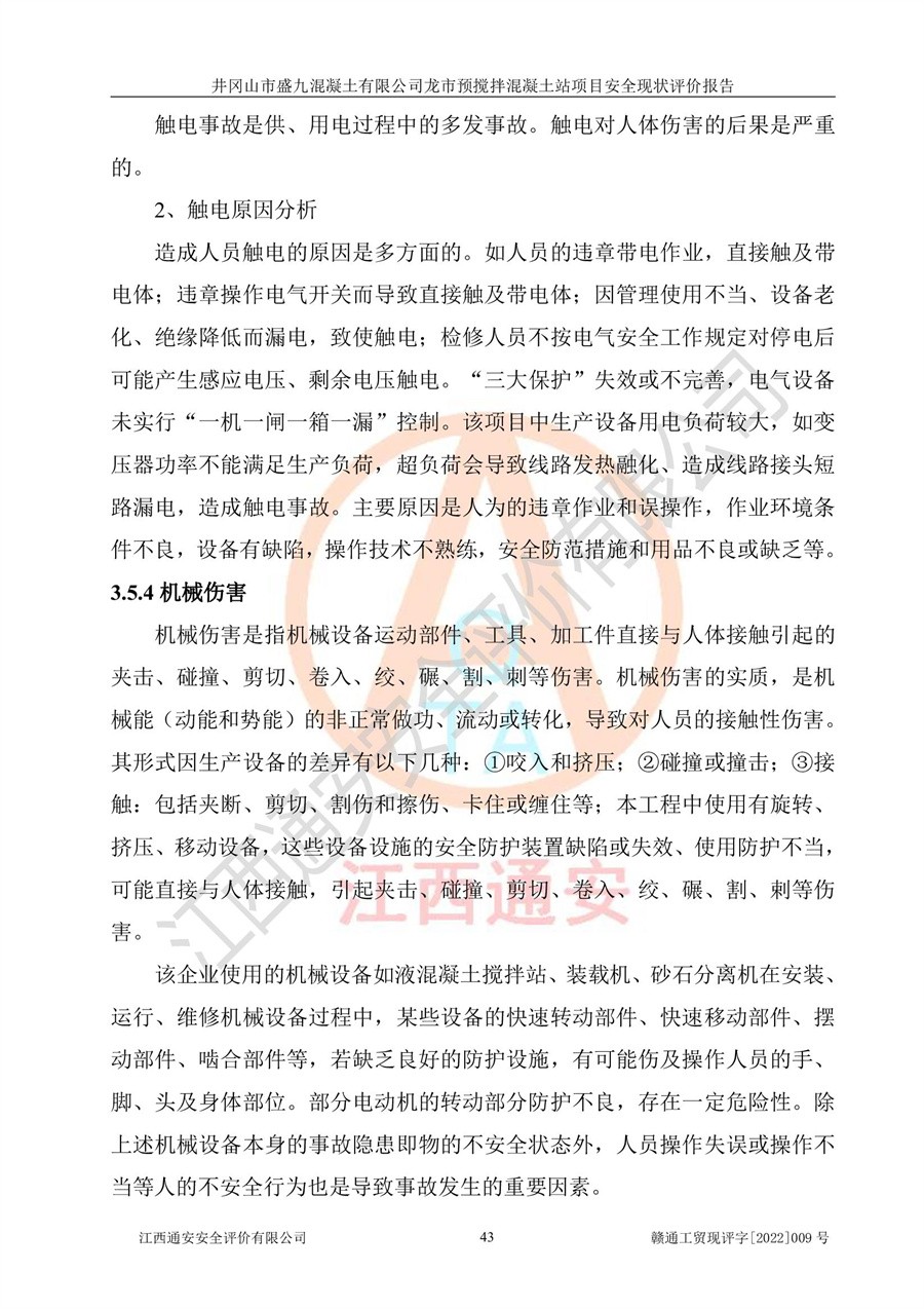 井岡山市盛九混凝土有限公司龍市預(yù)攪拌混凝土站項目安全現(xiàn)狀評價報告
