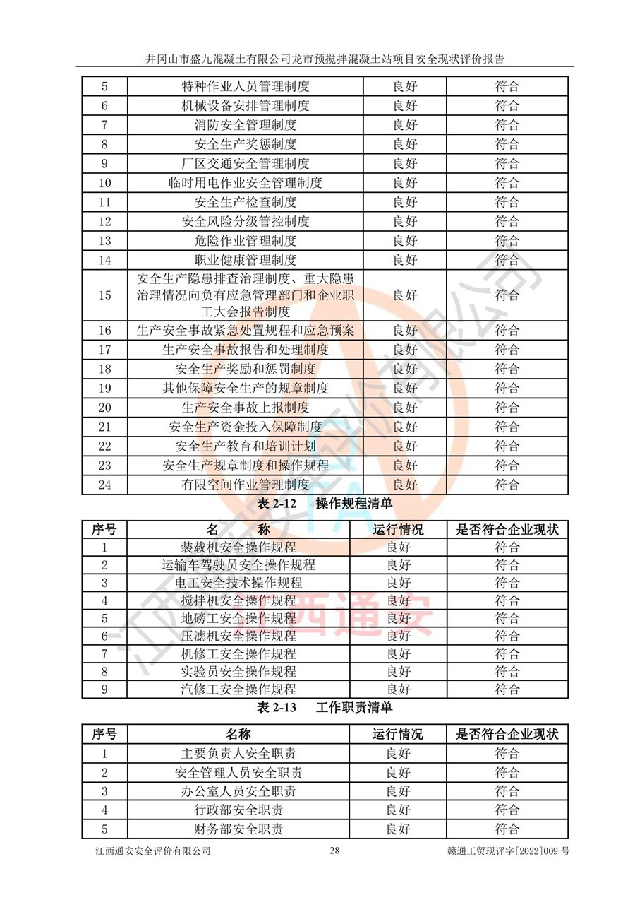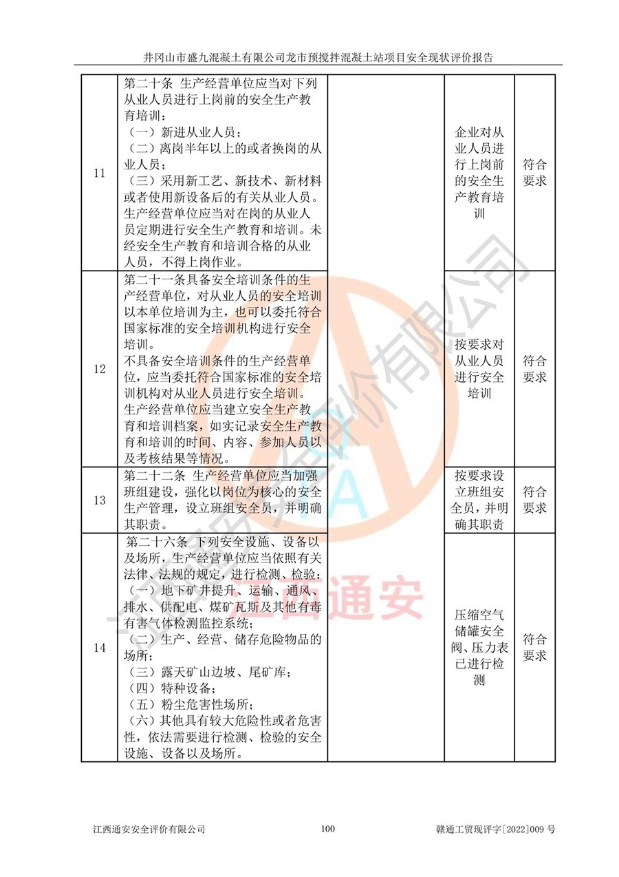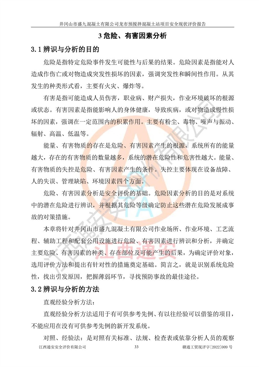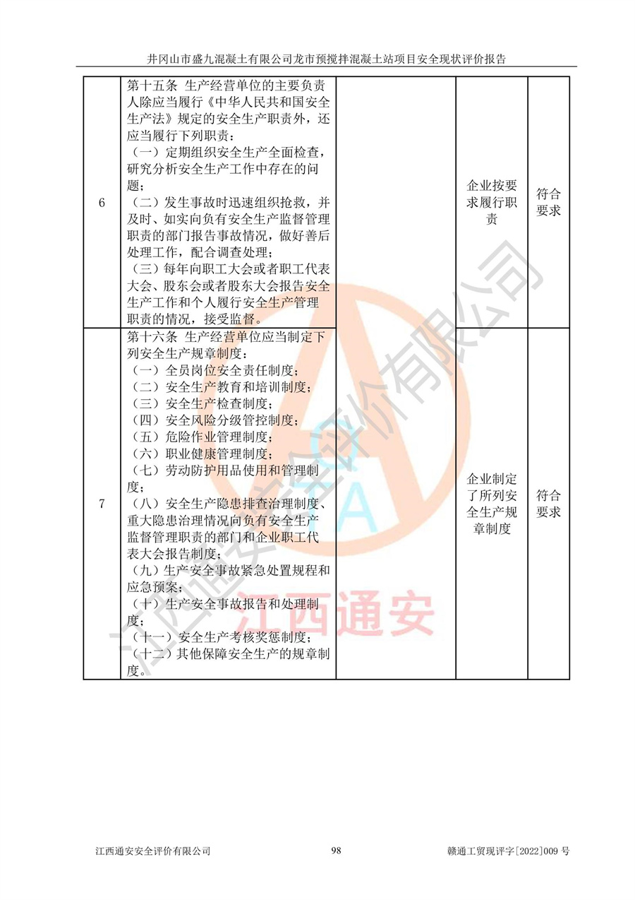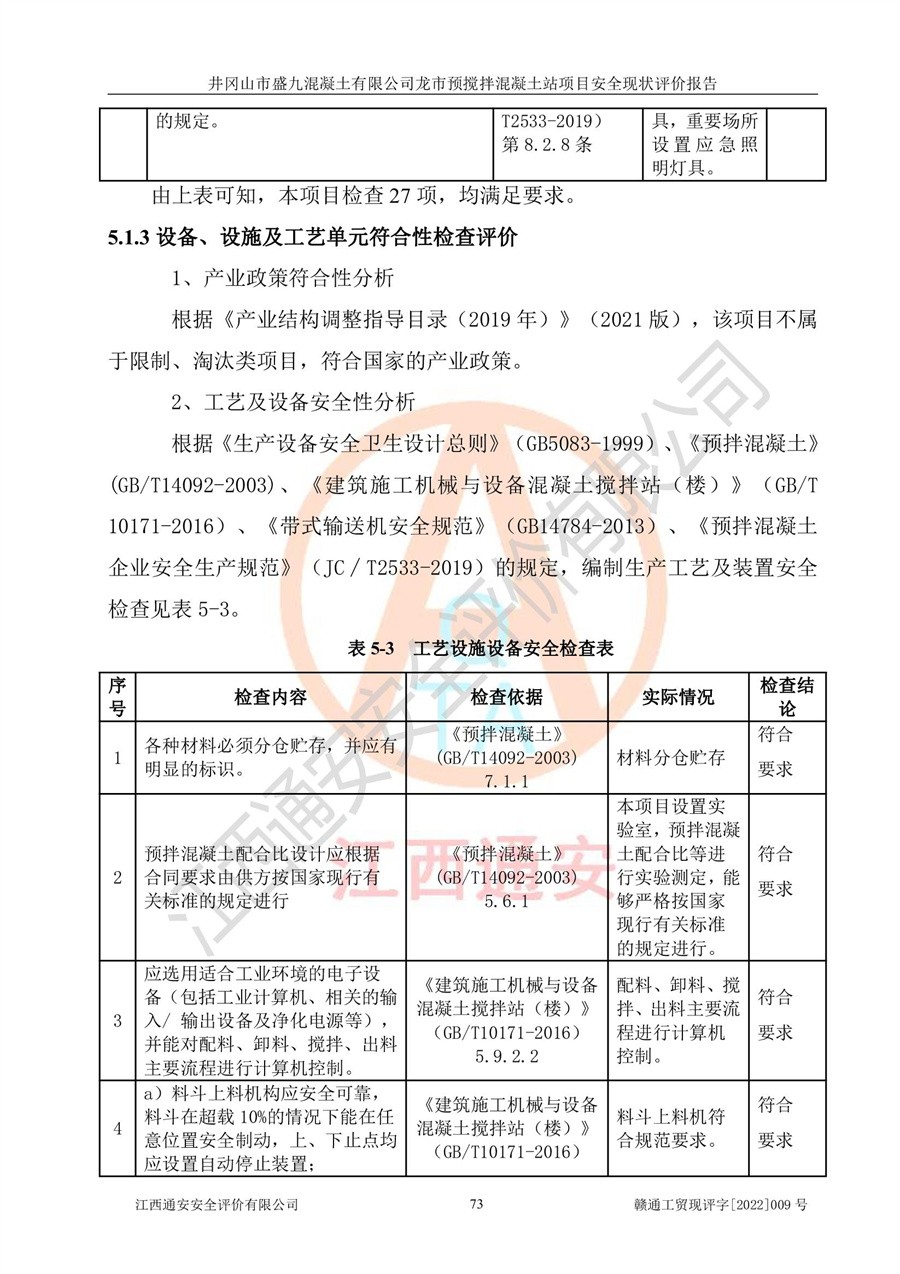 井岡山市盛九混凝土有限公司龍市預(yù)攪拌混凝土站項目安全現(xiàn)狀評價報告