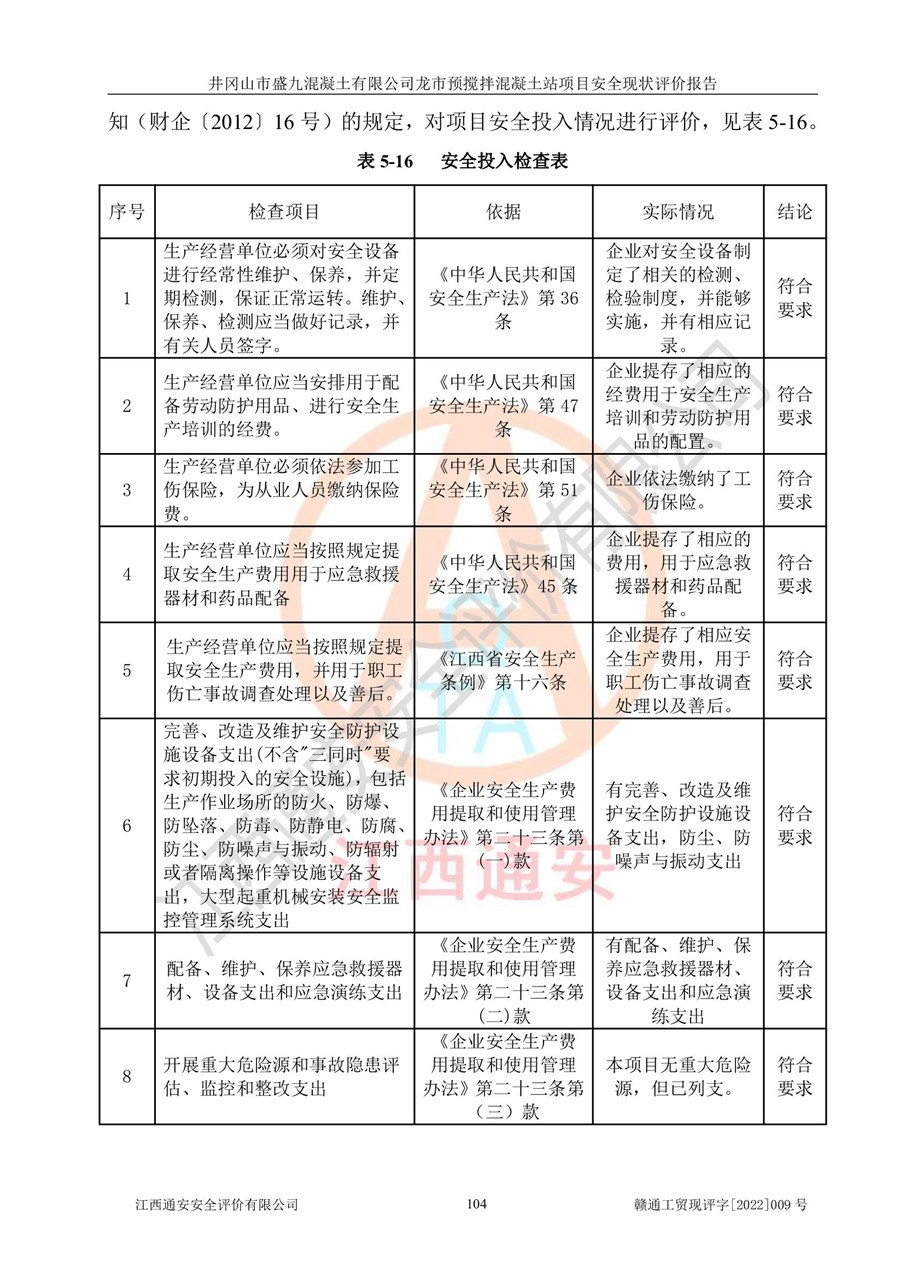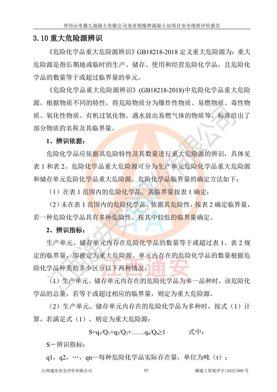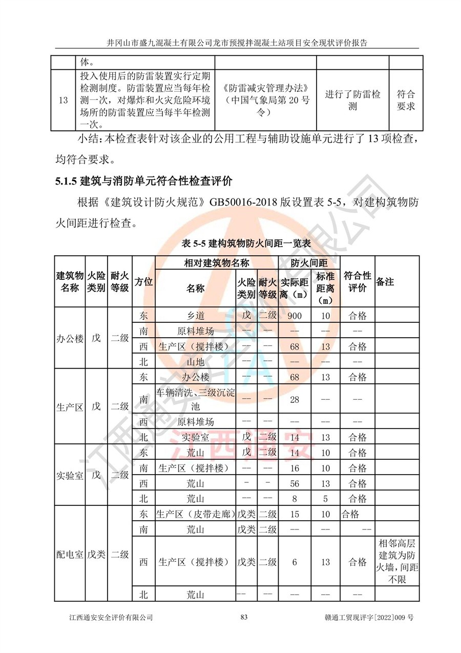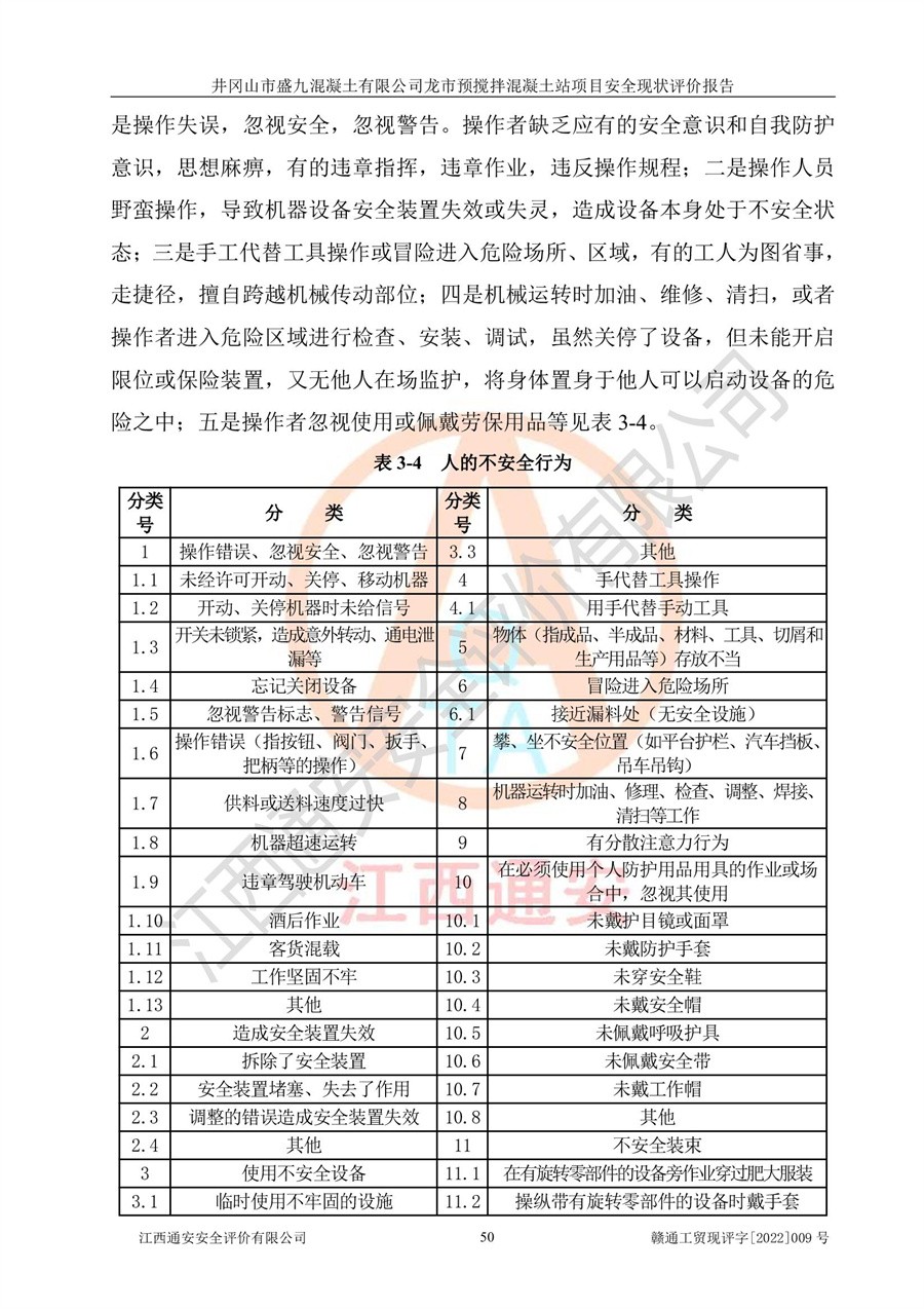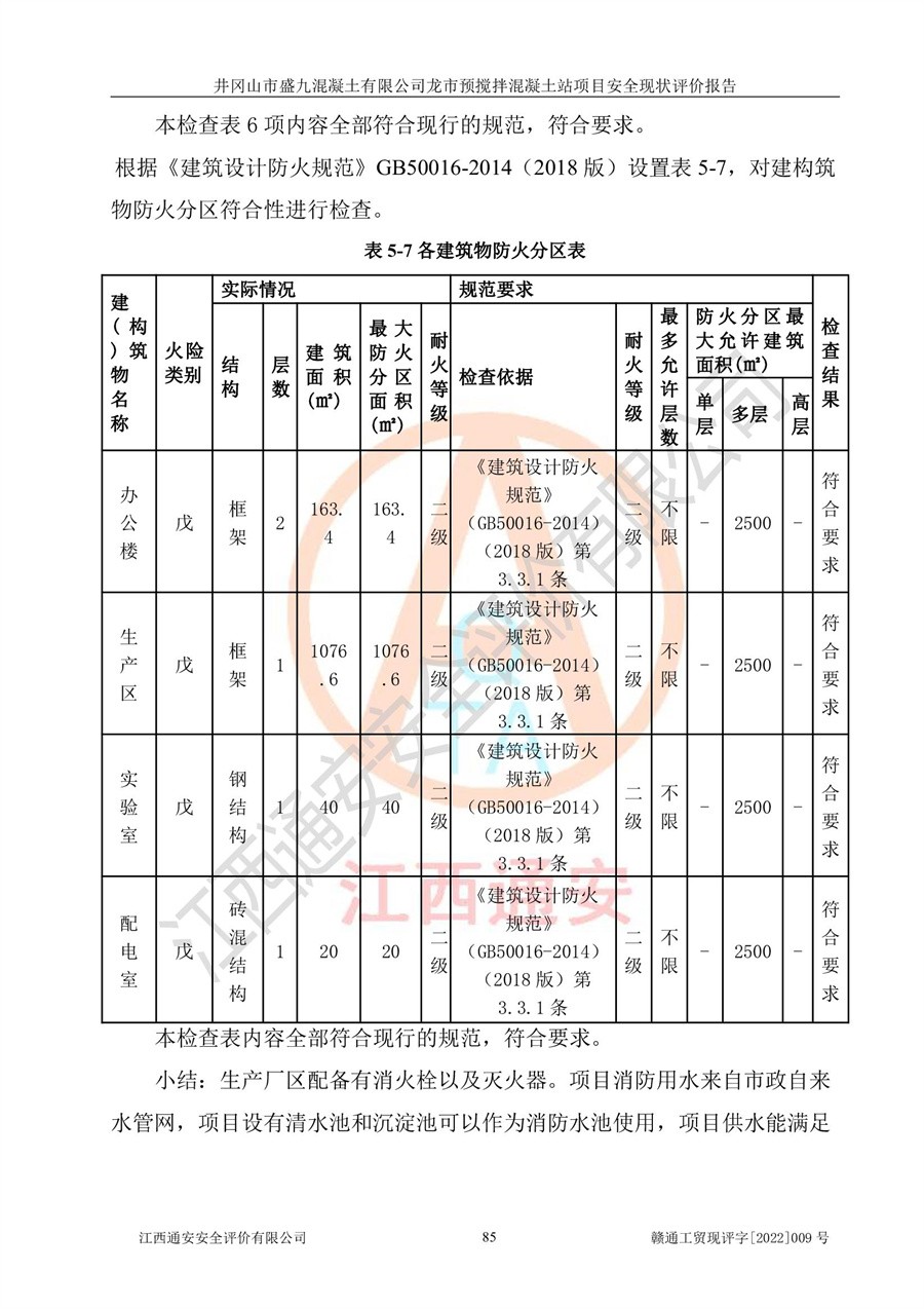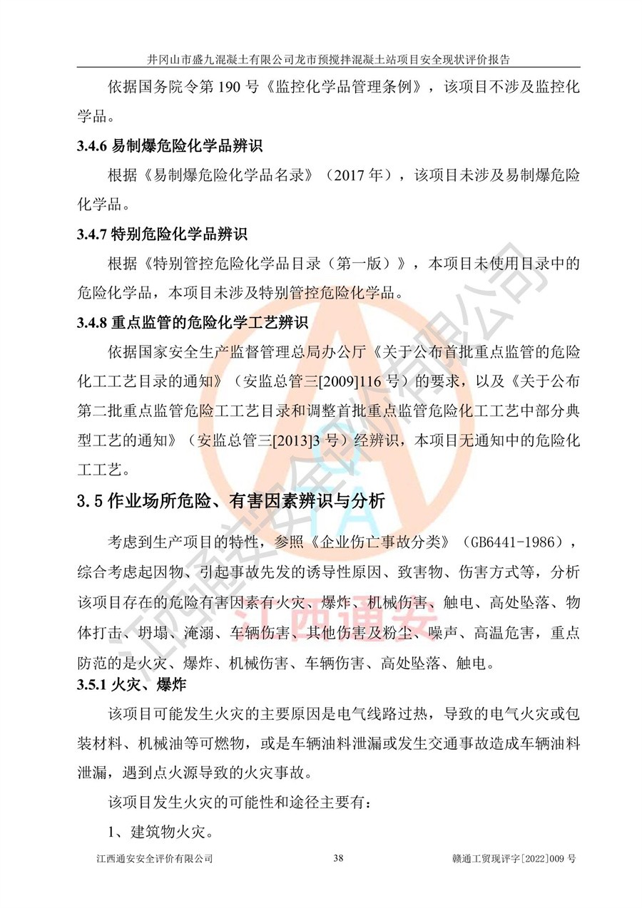 井岡山市盛九混凝土有限公司龍市預(yù)攪拌混凝土站項目安全現(xiàn)狀評價報告