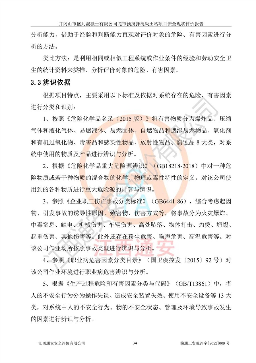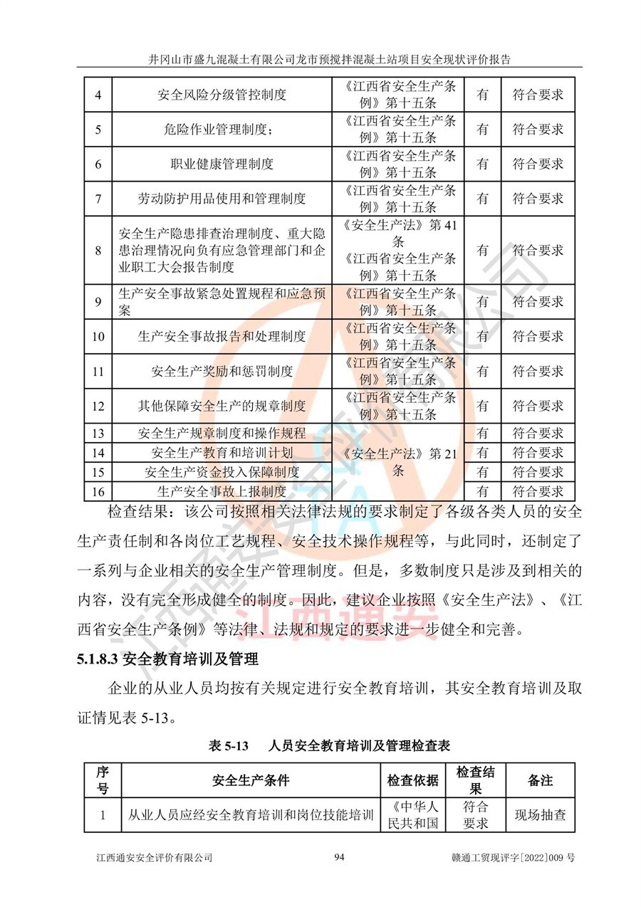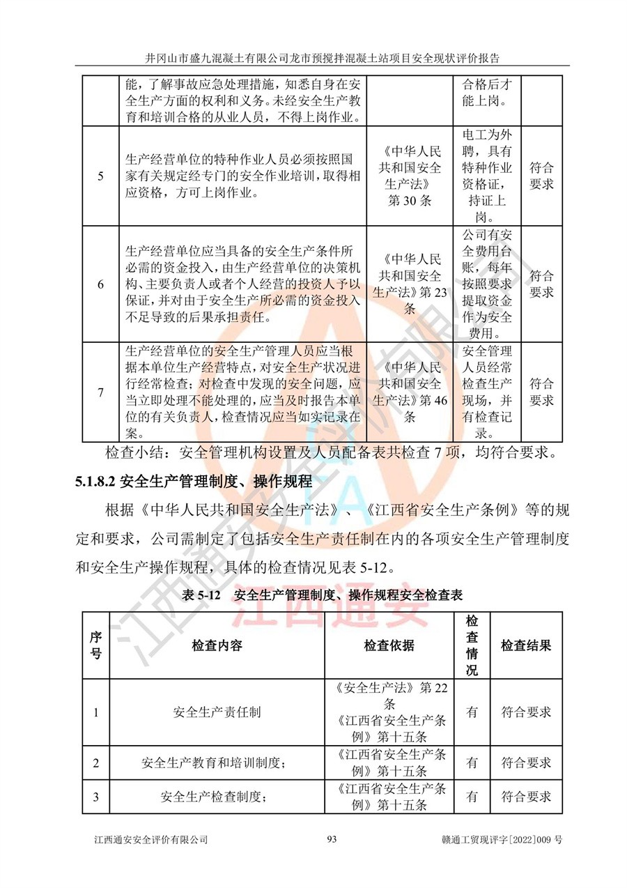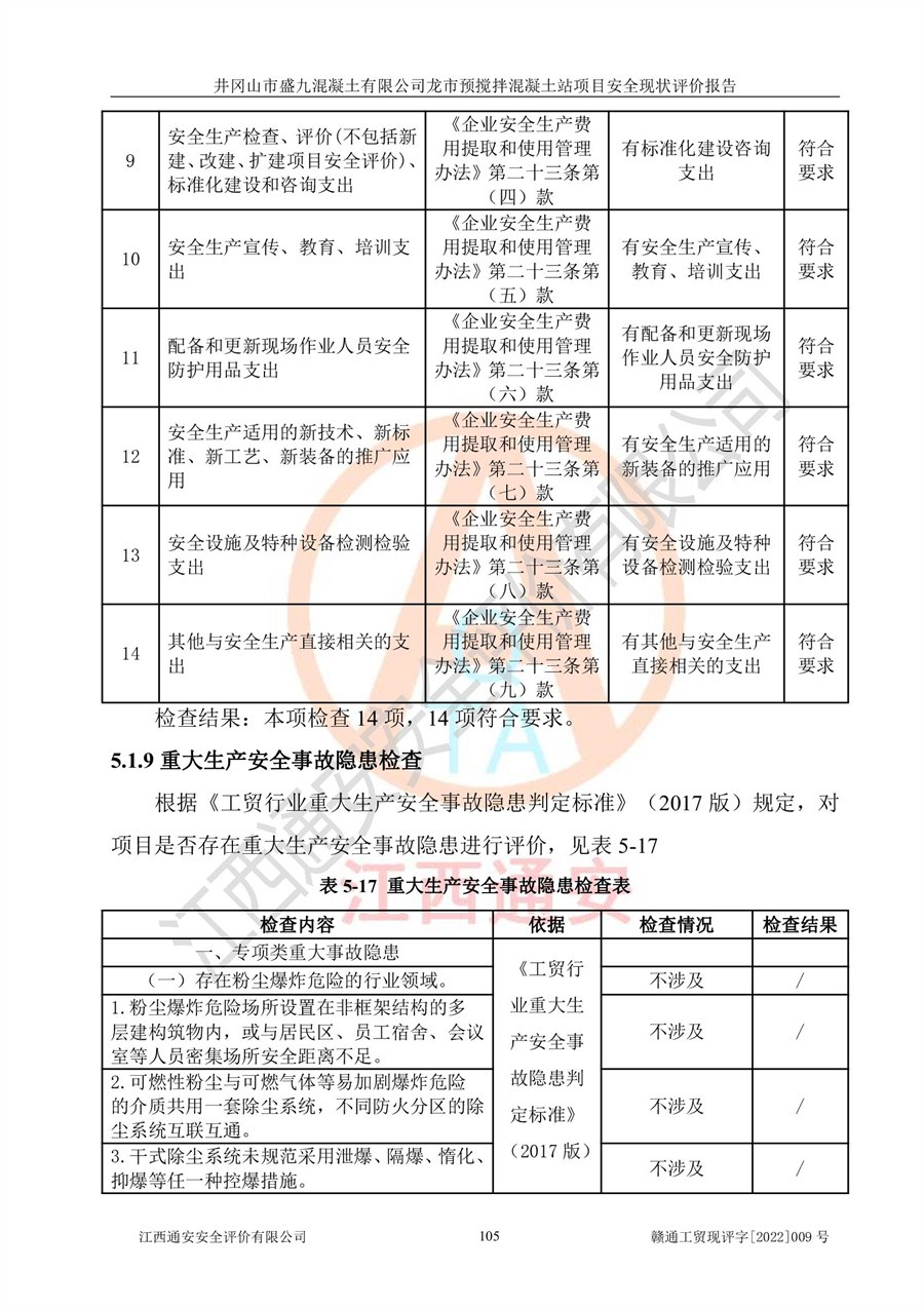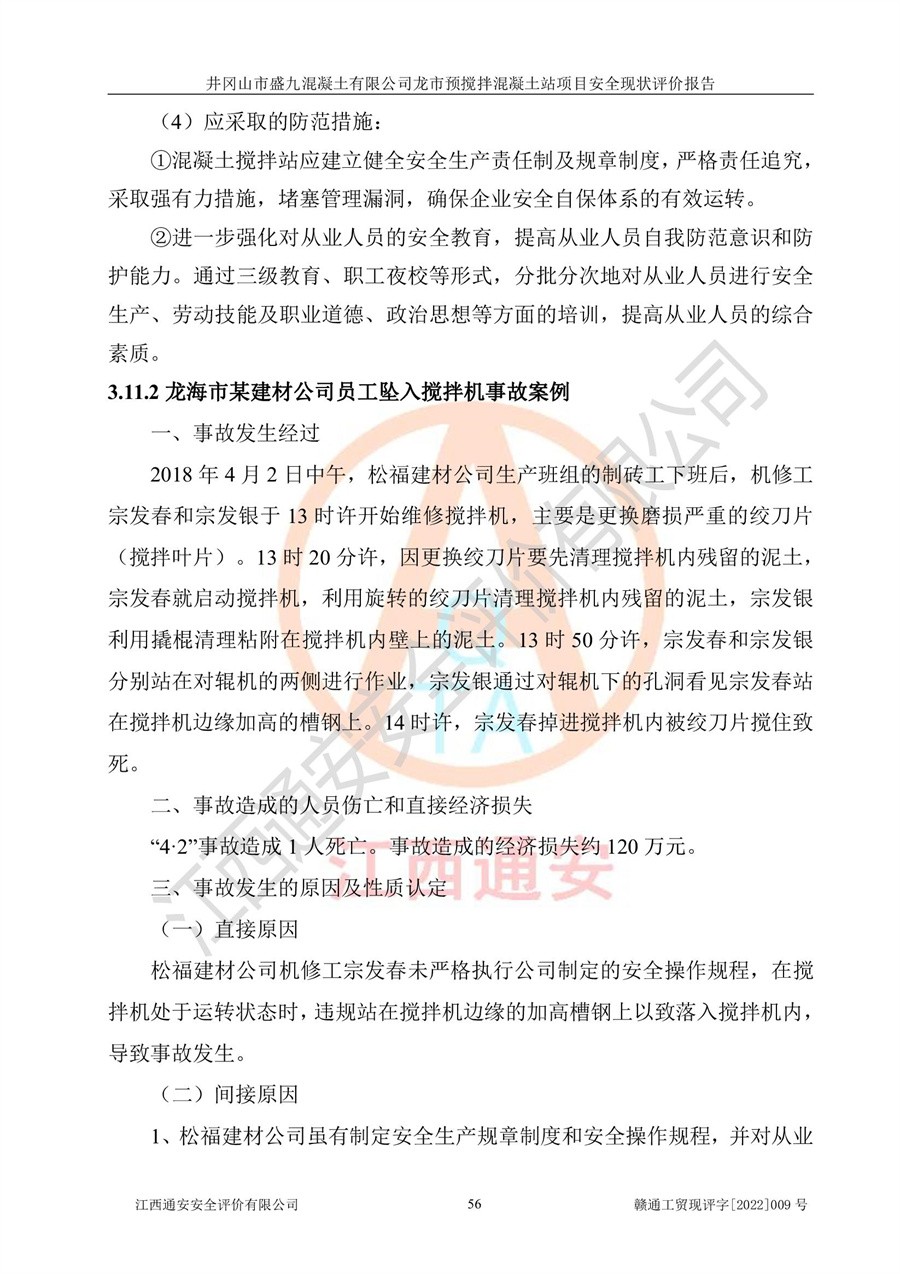 井岡山市盛九混凝土有限公司龍市預(yù)攪拌混凝土站項目安全現(xiàn)狀評價報告