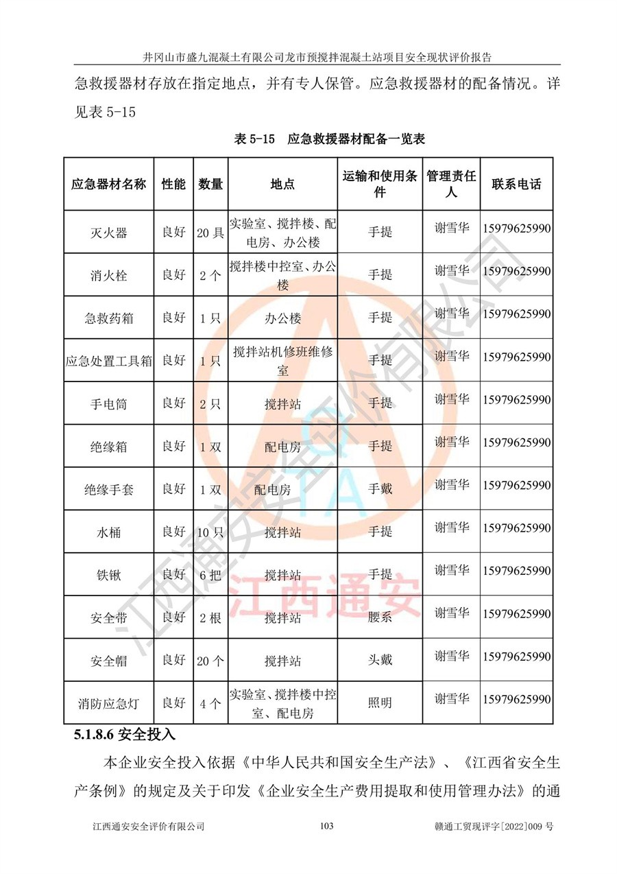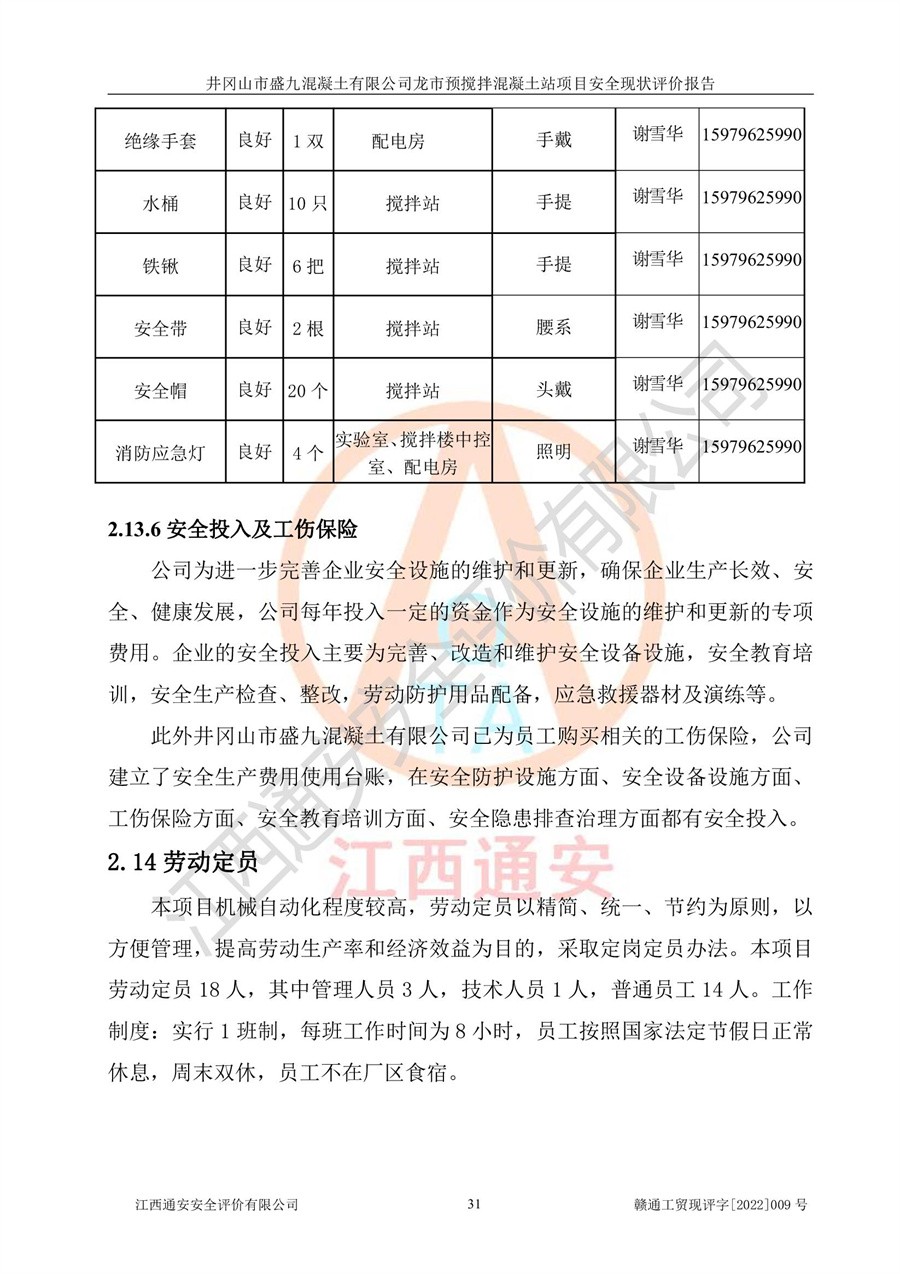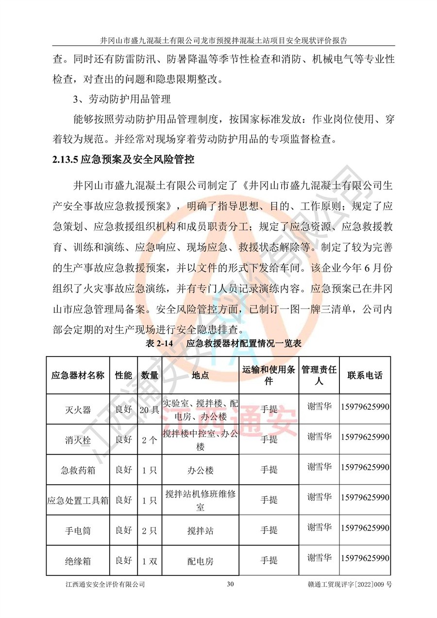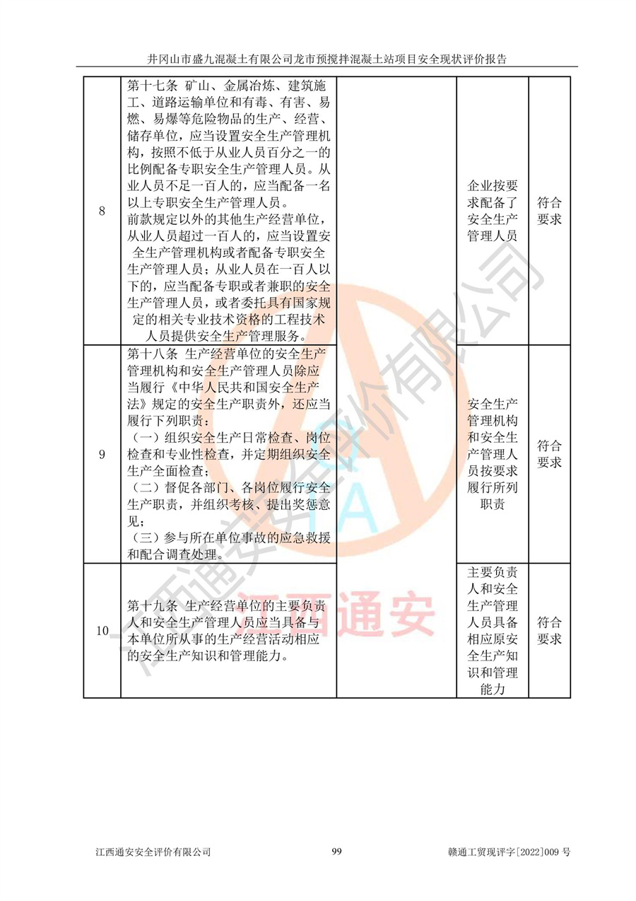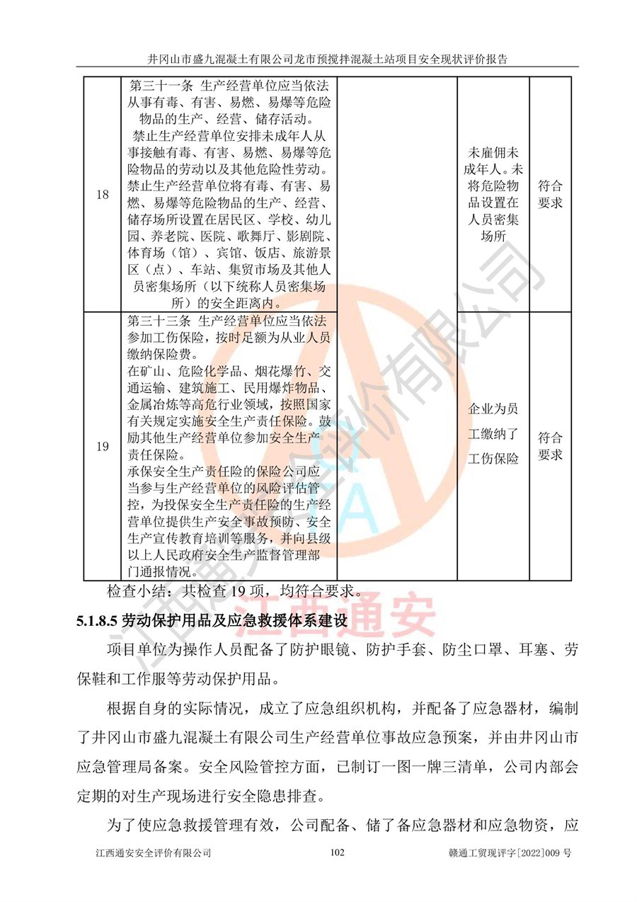 井岡山市盛九混凝土有限公司龍市預(yù)攪拌混凝土站項目安全現(xiàn)狀評價報告