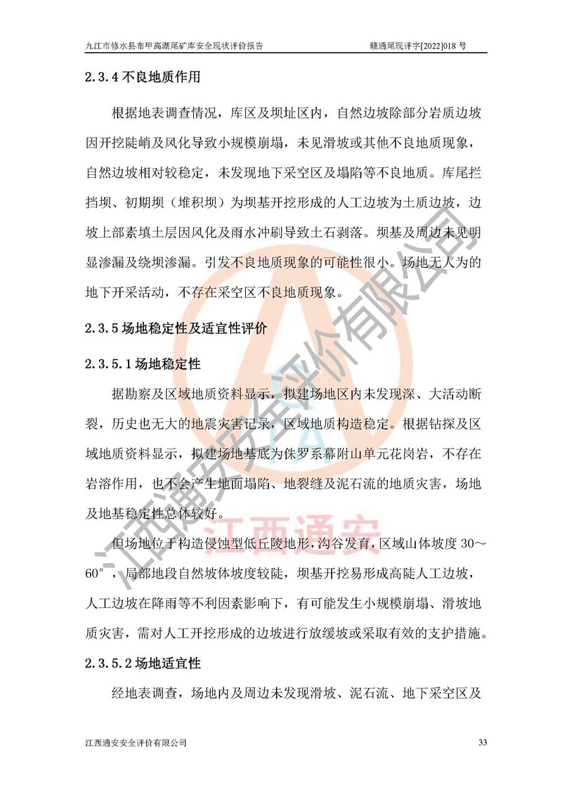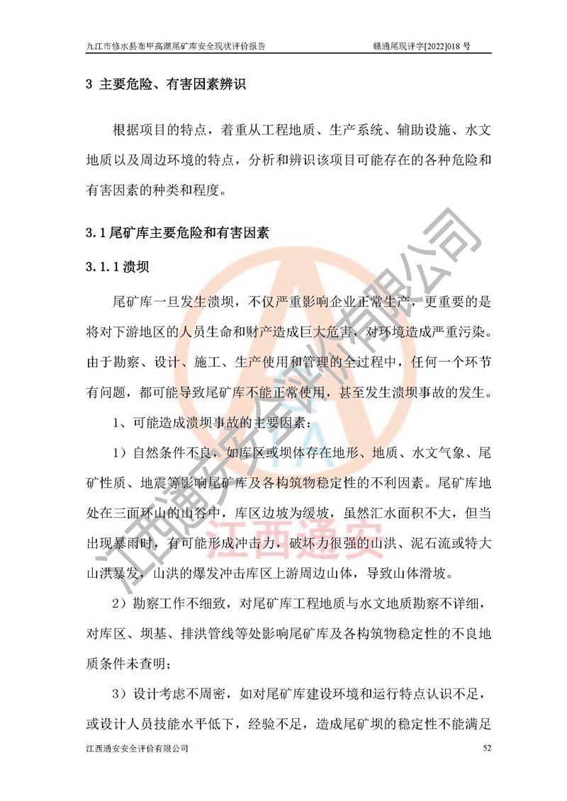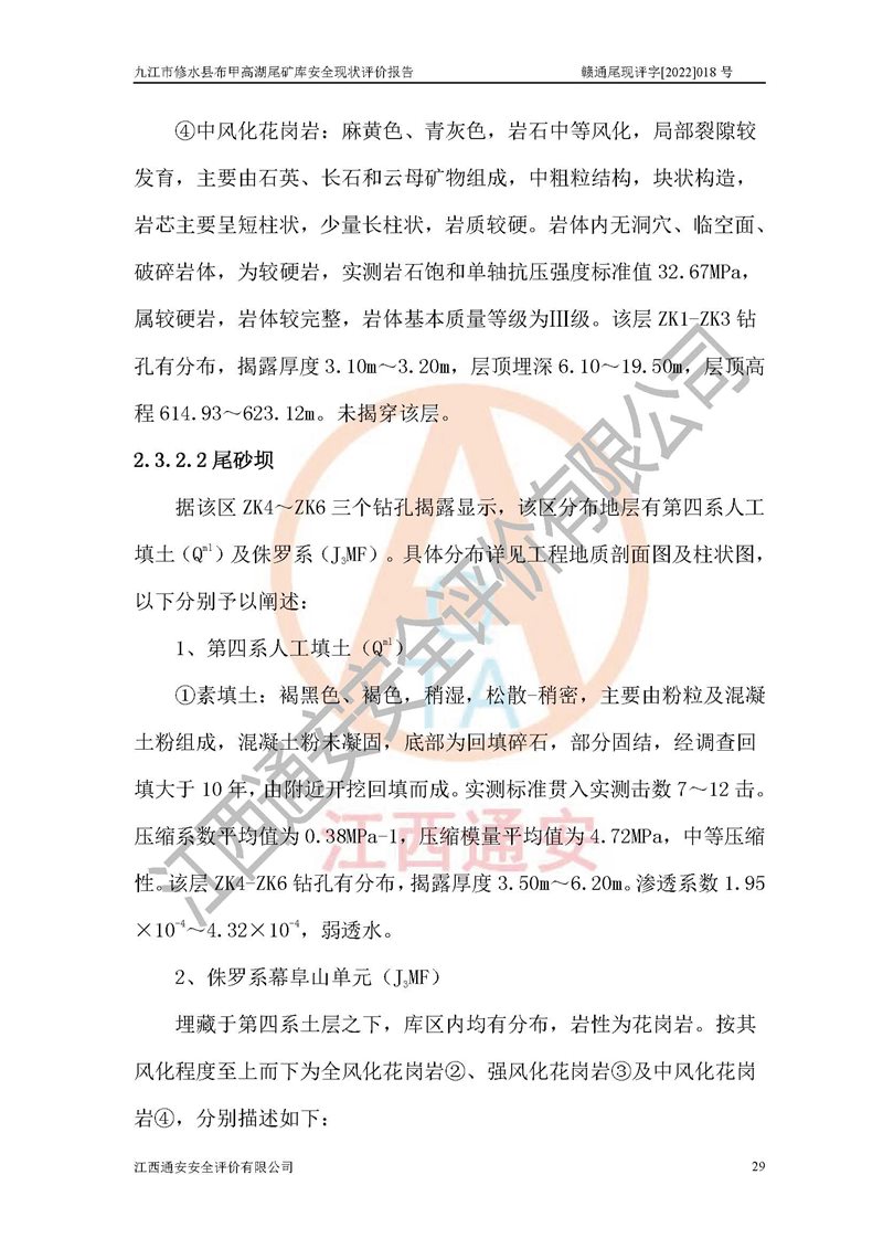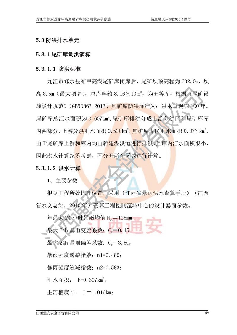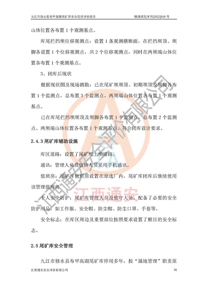 九江市修水縣布甲高湖尾礦庫(kù)位于修水縣布甲鄉(xiāng)布甲村高湖片區(qū),屬修河支流,地理位置為東經(jīng)114°24′27″,北緯29°18′23″,壩址以上控制流域面積0.607km2,整個(gè)流域范圍內(nèi)山清水秀,植被良好,人類活動(dòng)影響小,水土流失影響不明顯。 高湖尾礦庫(kù)始建于上世紀(jì)80年代,后在90年代及2004年左右擴(kuò)建。原為民采尾礦庫(kù),高湖選廠2004年擴(kuò)大了尾礦庫(kù)的范圍,原尾礦庫(kù)庫(kù)區(qū)面積1.6×104m2,擴(kuò)建后尾礦庫(kù)庫(kù)區(qū)面積4.3×104m2(未實(shí)施),未經(jīng)過(guò)正規(guī)設(shè)計(jì)、施工,尾礦壩建設(shè)不規(guī)范,2008年已停用。 2016~2017年雖然應(yīng)急搶險(xiǎn)防汛整治,增設(shè)了溢洪道,但建設(shè)的各項(xiàng)工作均極為不規(guī)范,未能驗(yàn)收。因此尾礦庫(kù)排洪、壩體安全觀測(cè)等設(shè)施均不健全,存在**的安全風(fēng)險(xiǎn)。 九江市修水縣布甲高湖尾礦庫(kù)從2008年停用至今,已15年。尾礦庫(kù)不再使用,為尾礦庫(kù)周邊安全與環(huán)境的長(zhǎng)治久安,根據(jù)相關(guān)規(guī)定尾礦庫(kù)進(jìn)行了閉庫(kù)。 修水縣布甲高湖尾礦庫(kù)無(wú)管理單位,按“屬地管理”職責(zé)原則,修水縣布甲鄉(xiāng)人民**負(fù)責(zé)高湖尾礦庫(kù)閉庫(kù)后的管理工作。 2021年10月福建省龍巖工程勘察院提交了《九江市修水縣布甲高湖尾礦庫(kù)項(xiàng)目工程(水文)地質(zhì)勘察報(bào)告》,2022年3月金建工程設(shè)計(jì)有限公司提交了《九江市修水縣布甲高湖尾礦庫(kù)閉庫(kù)工程初步設(shè)計(jì)》。 該尾礦庫(kù)閉庫(kù)工程由浙江安禹建筑有限公司進(jìn)行(水利水電施工總承包貳級(jí)資質(zhì))施工,江西同濟(jì)建設(shè)項(xiàng)目管理股份有限公司進(jìn)行監(jiān)理(工程監(jiān)理綜合資質(zhì)),該閉庫(kù)工程于2022年4月28日開(kāi)工,2022年6月10日竣工。 |