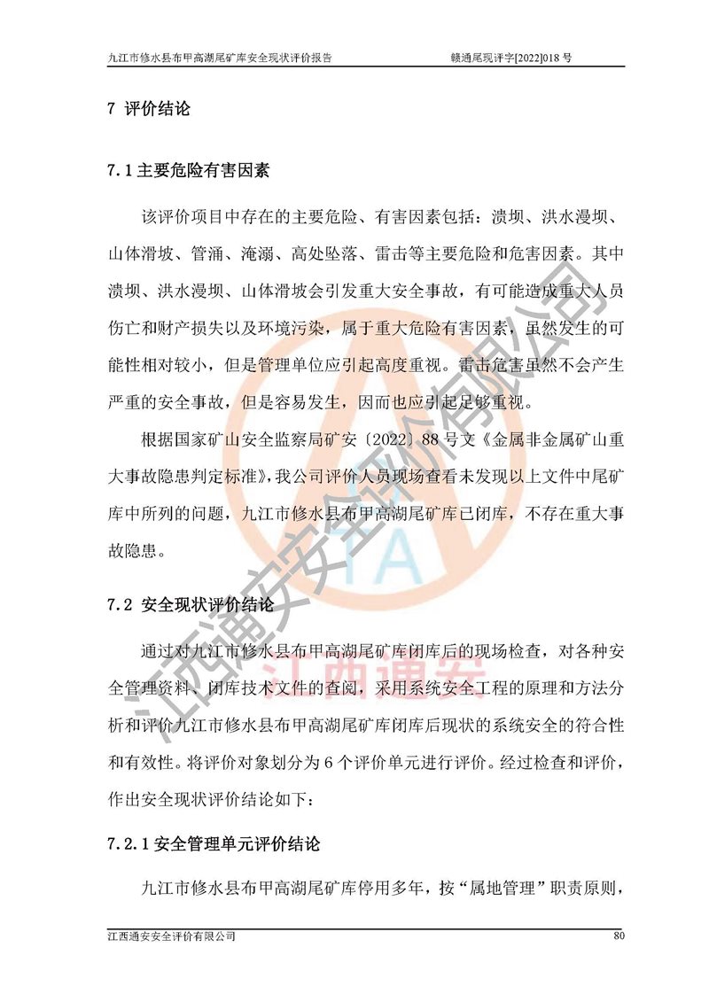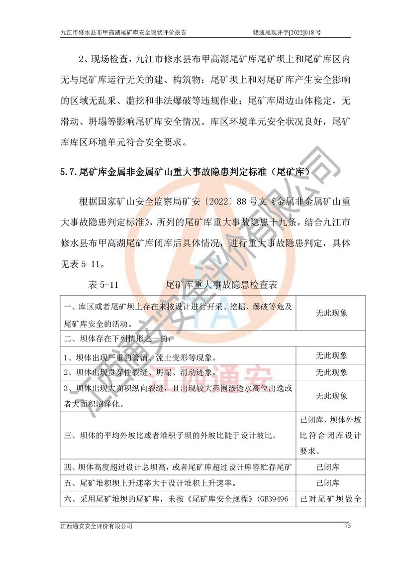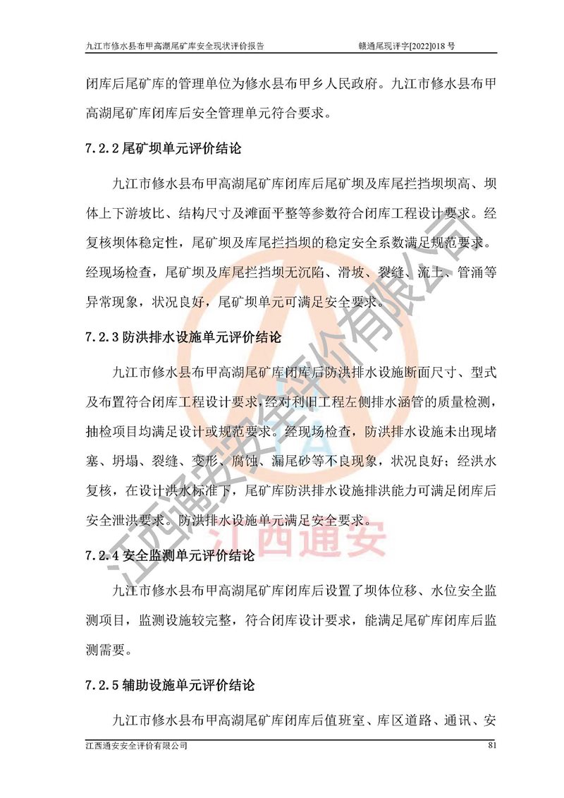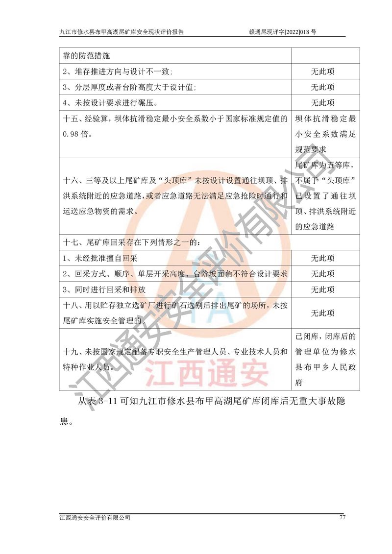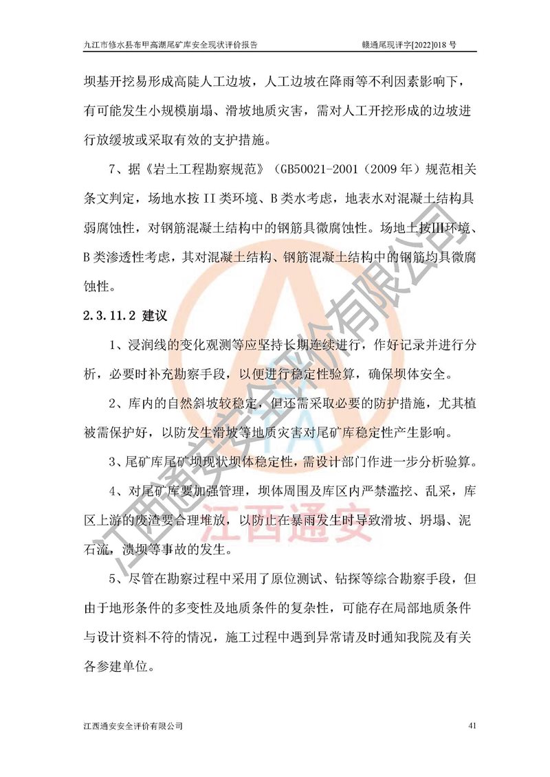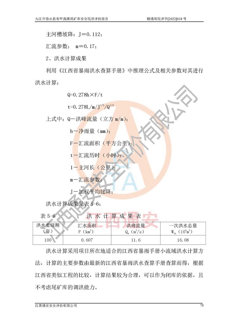 九江市修水縣布甲高湖尾礦庫(kù)位于修水縣布甲鄉(xiāng)布甲村高湖片區(qū),屬修河支流,地理位置為東經(jīng)114°24′27″,北緯29°18′23″,壩址以上控制流域面積0.607km2,整個(gè)流域范圍內(nèi)山清水秀,植被良好,人類活動(dòng)影響小,水土流失影響不明顯。 高湖尾礦庫(kù)始建于上世紀(jì)80年代,后在90年代及2004年左右擴(kuò)建。原為民采尾礦庫(kù),高湖選廠2004年擴(kuò)大了尾礦庫(kù)的范圍,原尾礦庫(kù)庫(kù)區(qū)面積1.6×104m2,擴(kuò)建后尾礦庫(kù)庫(kù)區(qū)面積4.3×104m2(未實(shí)施),未經(jīng)過(guò)正規(guī)設(shè)計(jì)、施工,尾礦壩建設(shè)不規(guī)范,2008年已停用。 2016~2017年雖然應(yīng)急搶險(xiǎn)防汛整治,增設(shè)了溢洪道,但建設(shè)的各項(xiàng)工作均極為不規(guī)范,未能驗(yàn)收。因此尾礦庫(kù)排洪、壩體安全觀測(cè)等設(shè)施均不健全,存在**的安全風(fēng)險(xiǎn)。 九江市修水縣布甲高湖尾礦庫(kù)從2008年停用至今,已15年。尾礦庫(kù)不再使用,為尾礦庫(kù)周邊安全與環(huán)境的長(zhǎng)治久安,根據(jù)相關(guān)規(guī)定尾礦庫(kù)進(jìn)行了閉庫(kù)。 修水縣布甲高湖尾礦庫(kù)無(wú)管理單位,按“屬地管理”職責(zé)原則,修水縣布甲鄉(xiāng)人民**負(fù)責(zé)高湖尾礦庫(kù)閉庫(kù)后的管理工作。 2021年10月福建省龍巖工程勘察院提交了《九江市修水縣布甲高湖尾礦庫(kù)項(xiàng)目工程(水文)地質(zhì)勘察報(bào)告》,2022年3月金建工程設(shè)計(jì)有限公司提交了《九江市修水縣布甲高湖尾礦庫(kù)閉庫(kù)工程初步設(shè)計(jì)》。 該尾礦庫(kù)閉庫(kù)工程由浙江安禹建筑有限公司進(jìn)行(水利水電施工總承包貳級(jí)資質(zhì))施工,江西同濟(jì)建設(shè)項(xiàng)目管理股份有限公司進(jìn)行監(jiān)理(工程監(jiān)理綜合資質(zhì)),該閉庫(kù)工程于2022年4月28日開(kāi)工,2022年6月10日竣工。 |