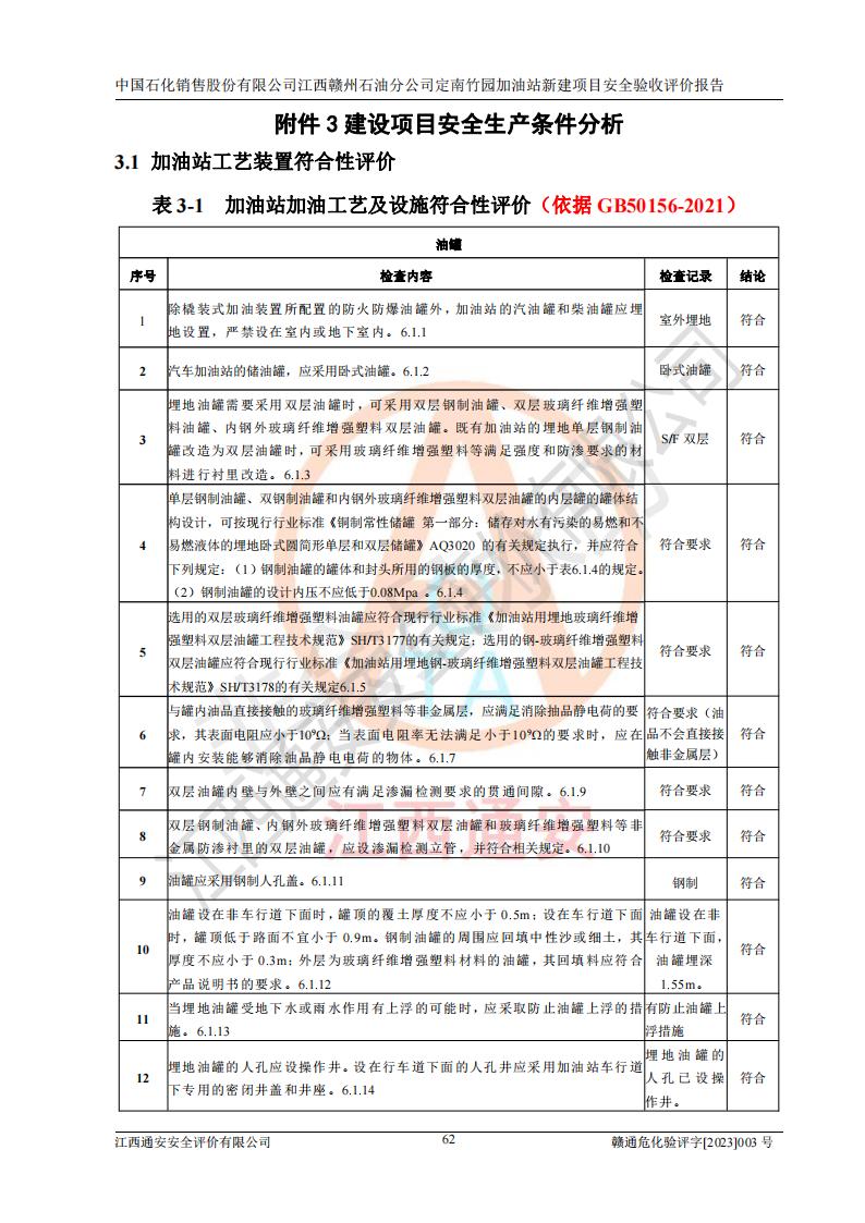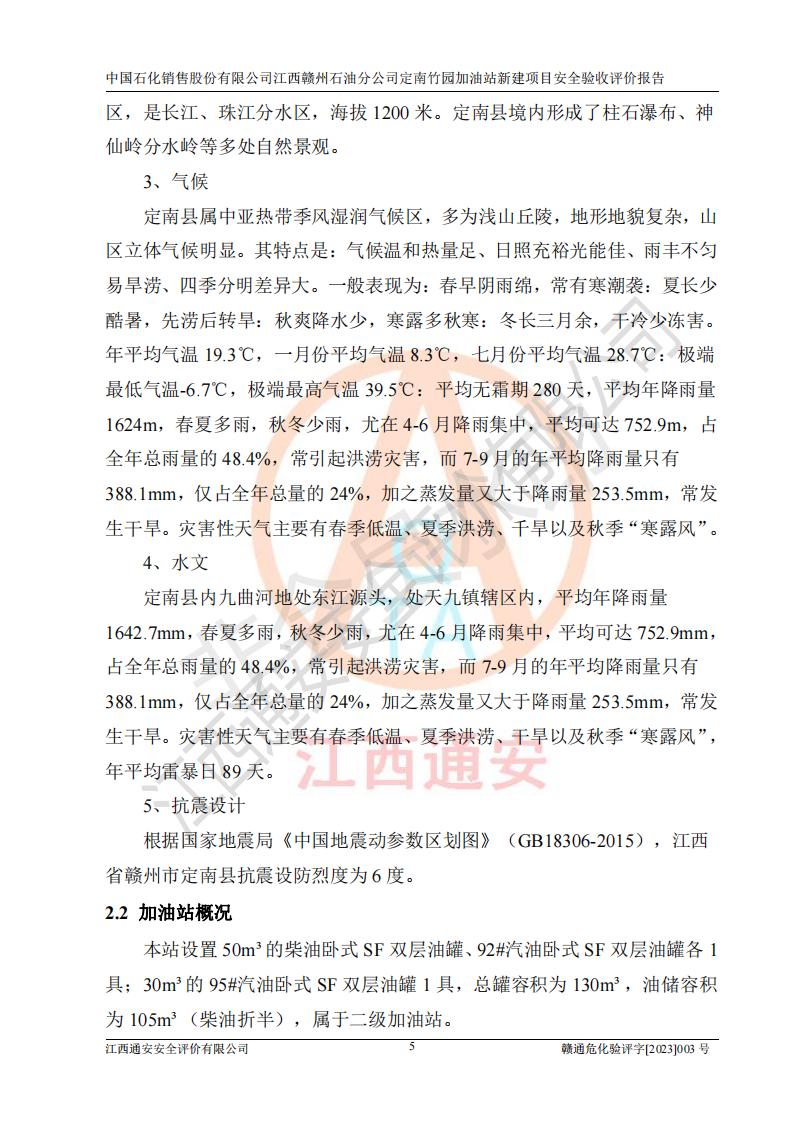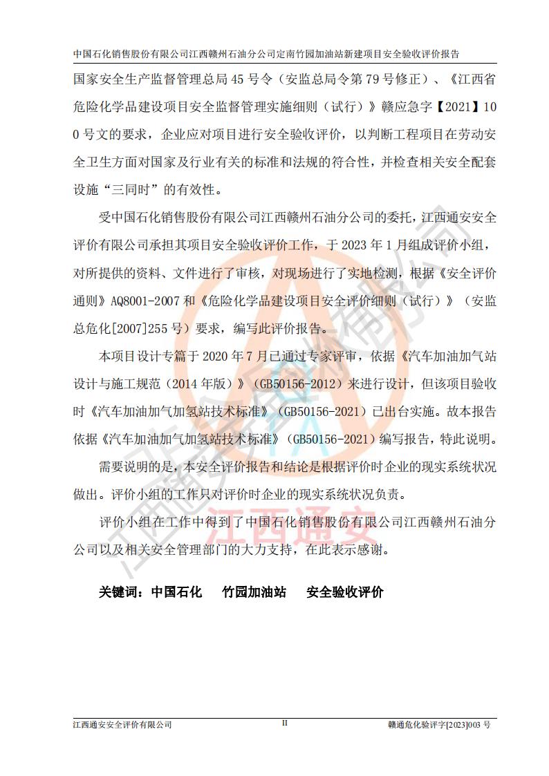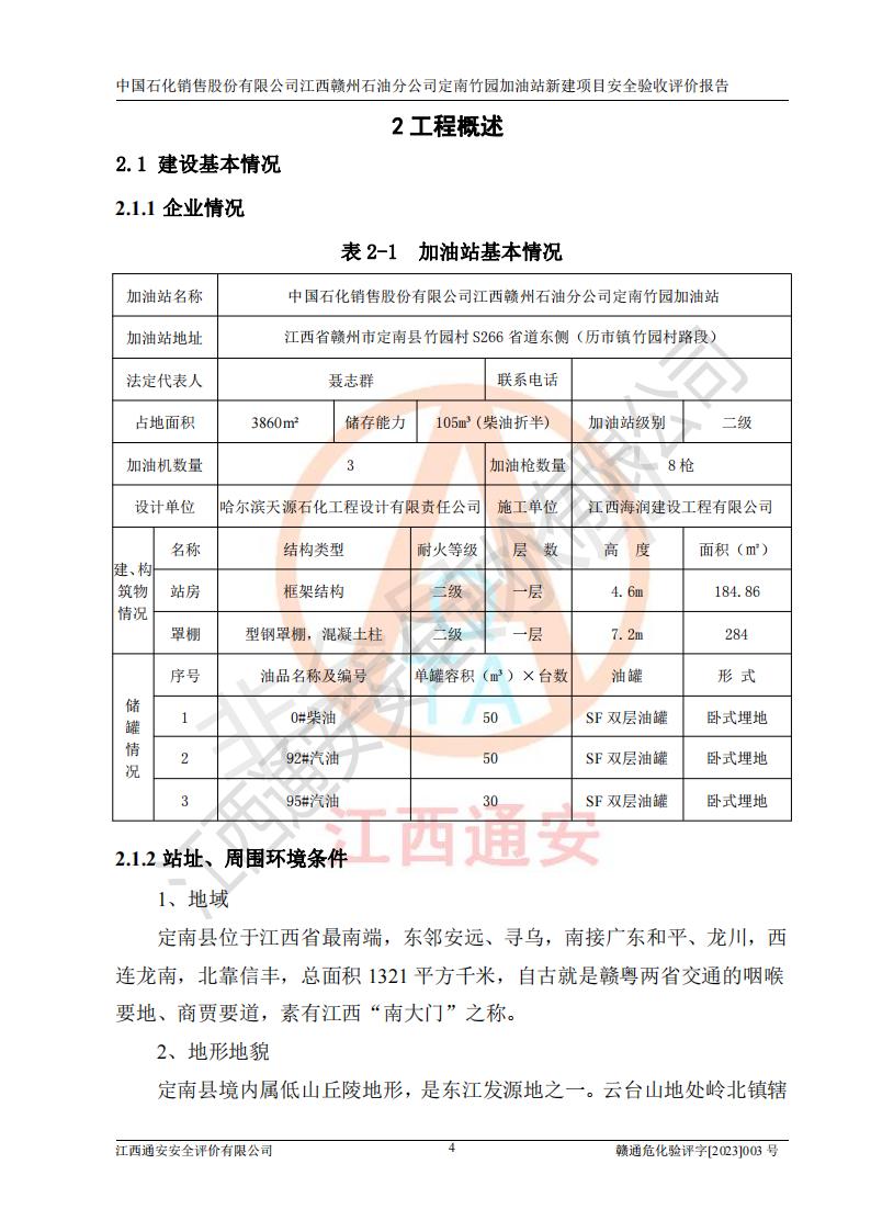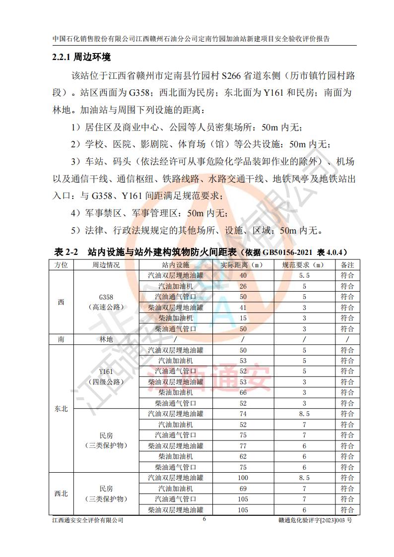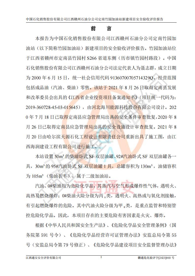 項目名稱 | 中國石化銷售股份有限公司江西贛州石油分公司定南竹園加油站新建項目安全驗收評價報告 | ||||