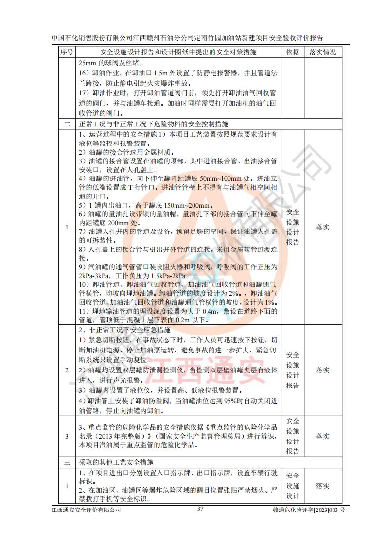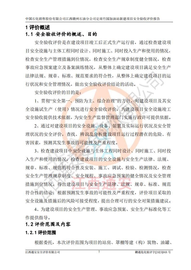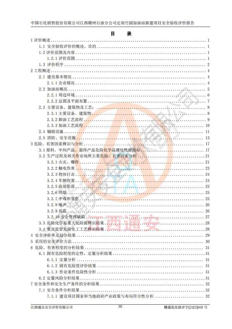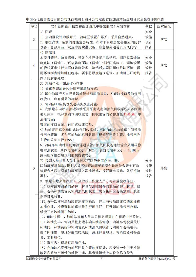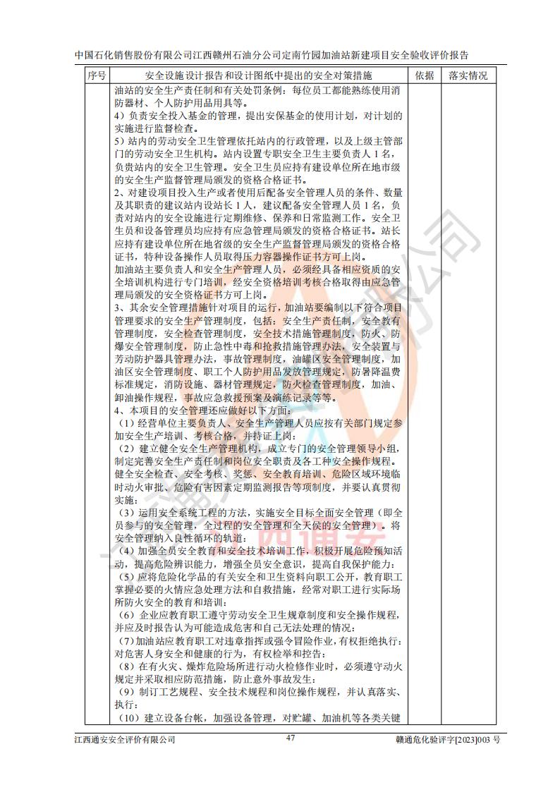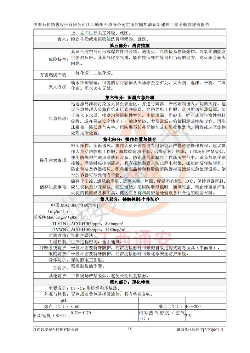 項目名稱 | 中國石化銷售股份有限公司江西贛州石油分公司定南竹園加油站新建項目安全驗收評價報告 | ||||