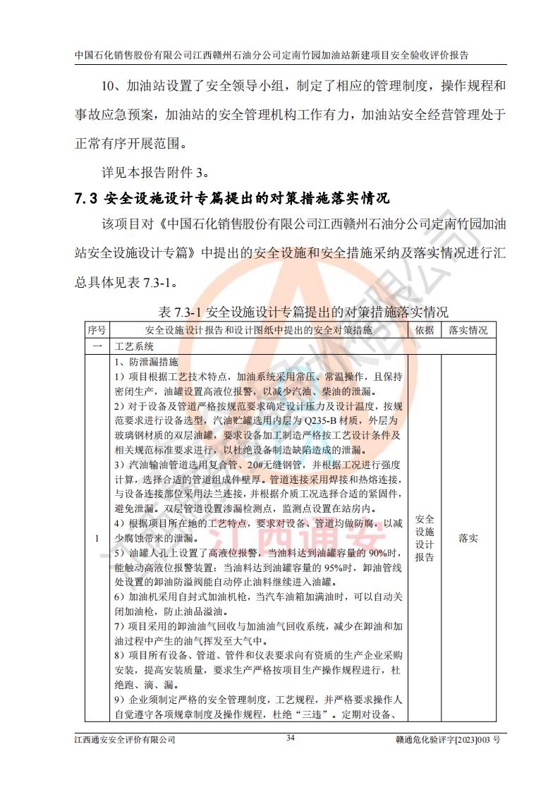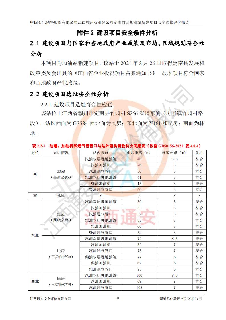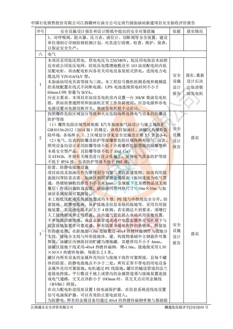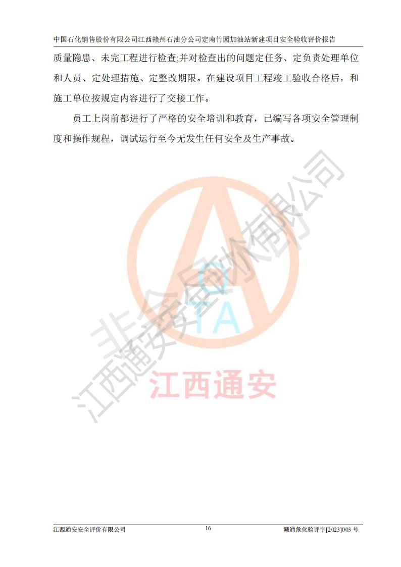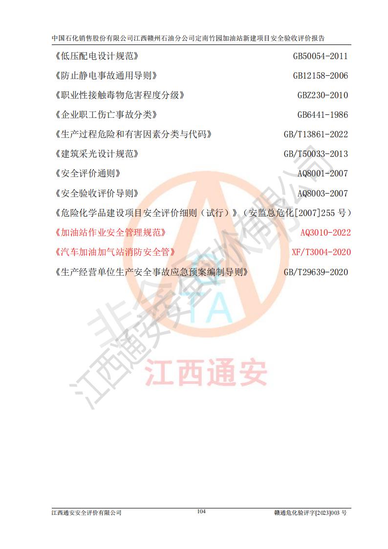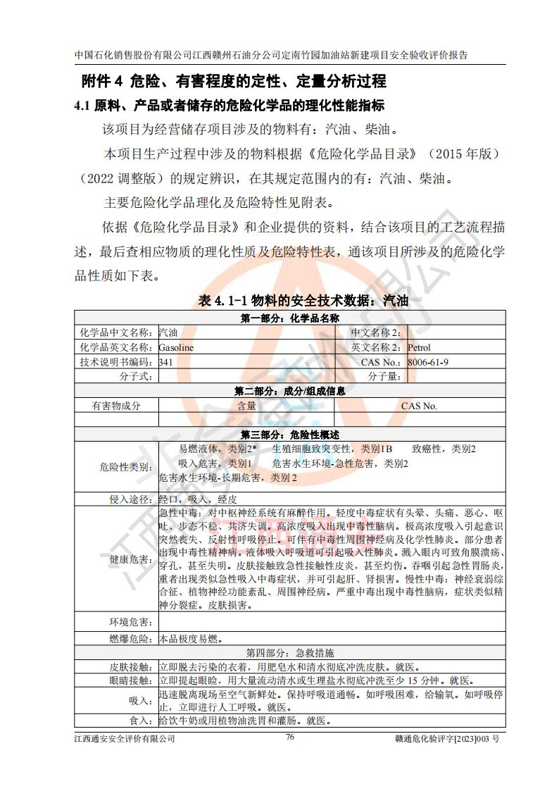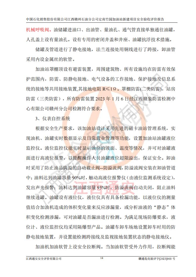 項目名稱 | 中國石化銷售股份有限公司江西贛州石油分公司定南竹園加油站新建項目安全驗收評價報告 | ||||