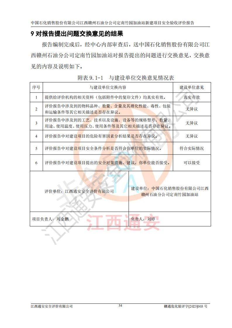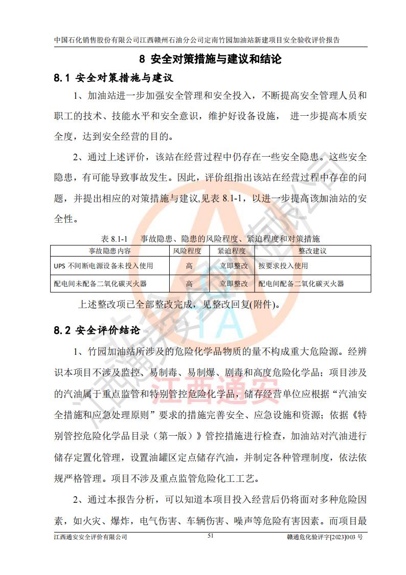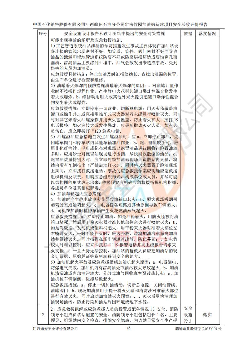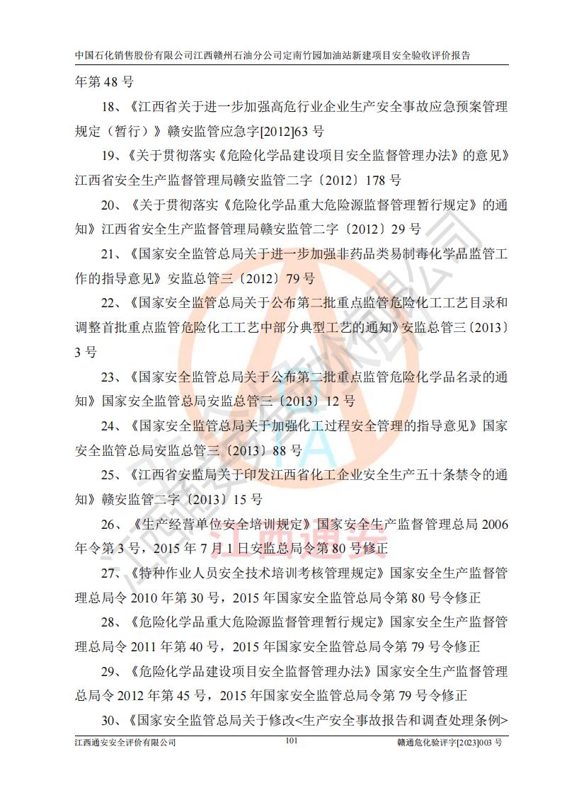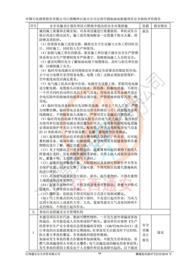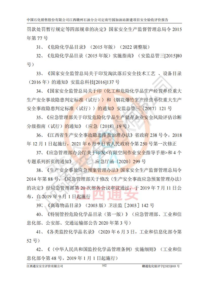 項目名稱 | 中國石化銷售股份有限公司江西贛州石油分公司定南竹園加油站新建項目安全驗收評價報告 | ||||