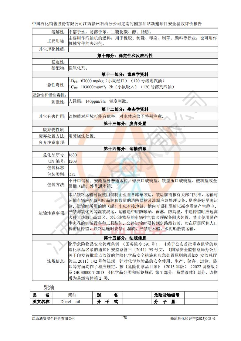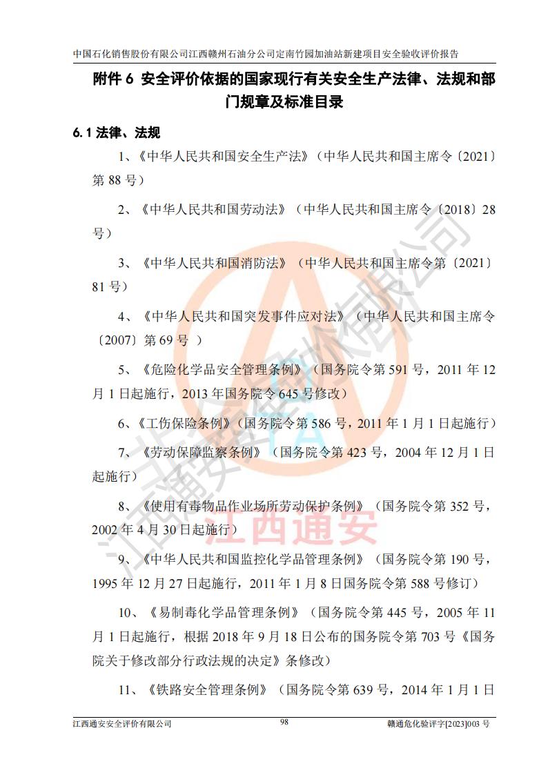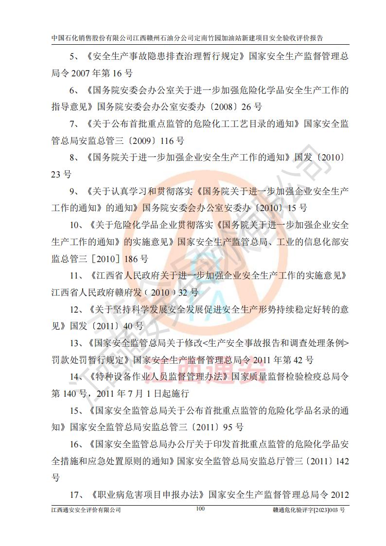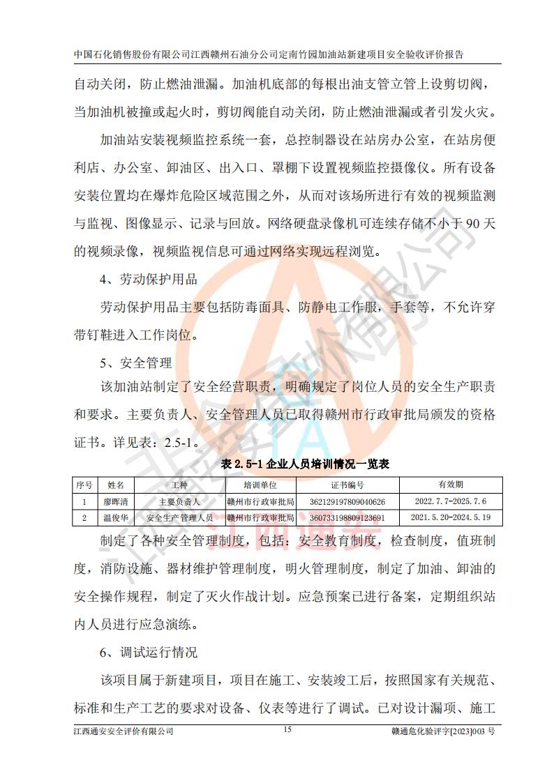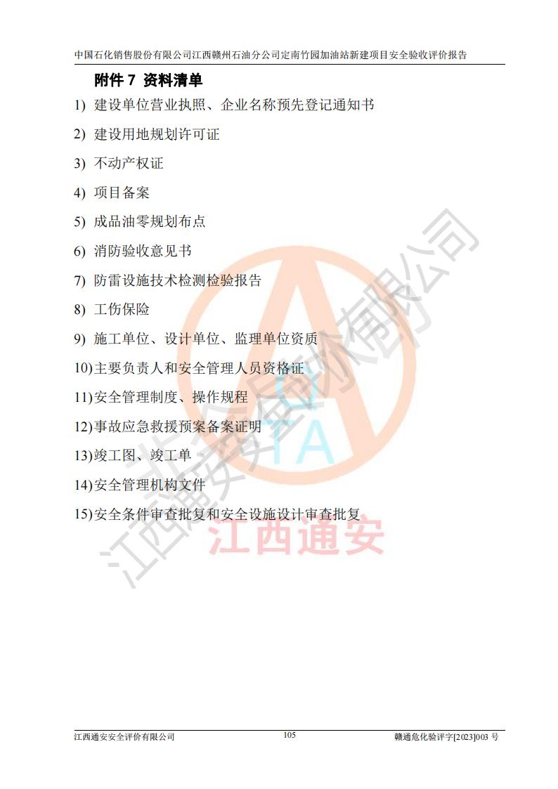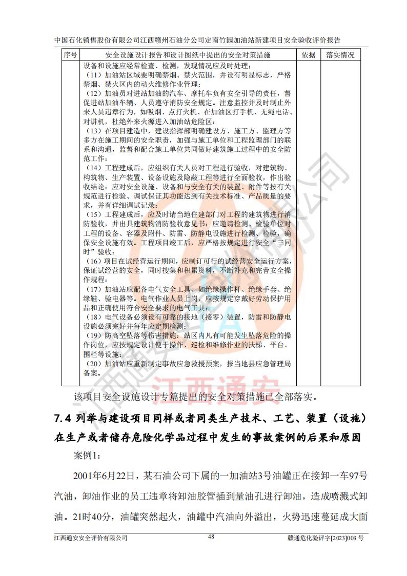 項目名稱 | 中國石化銷售股份有限公司江西贛州石油分公司定南竹園加油站新建項目安全驗收評價報告 | ||||