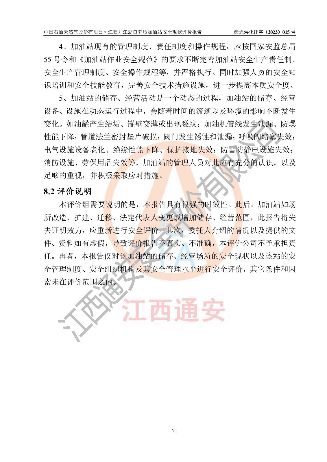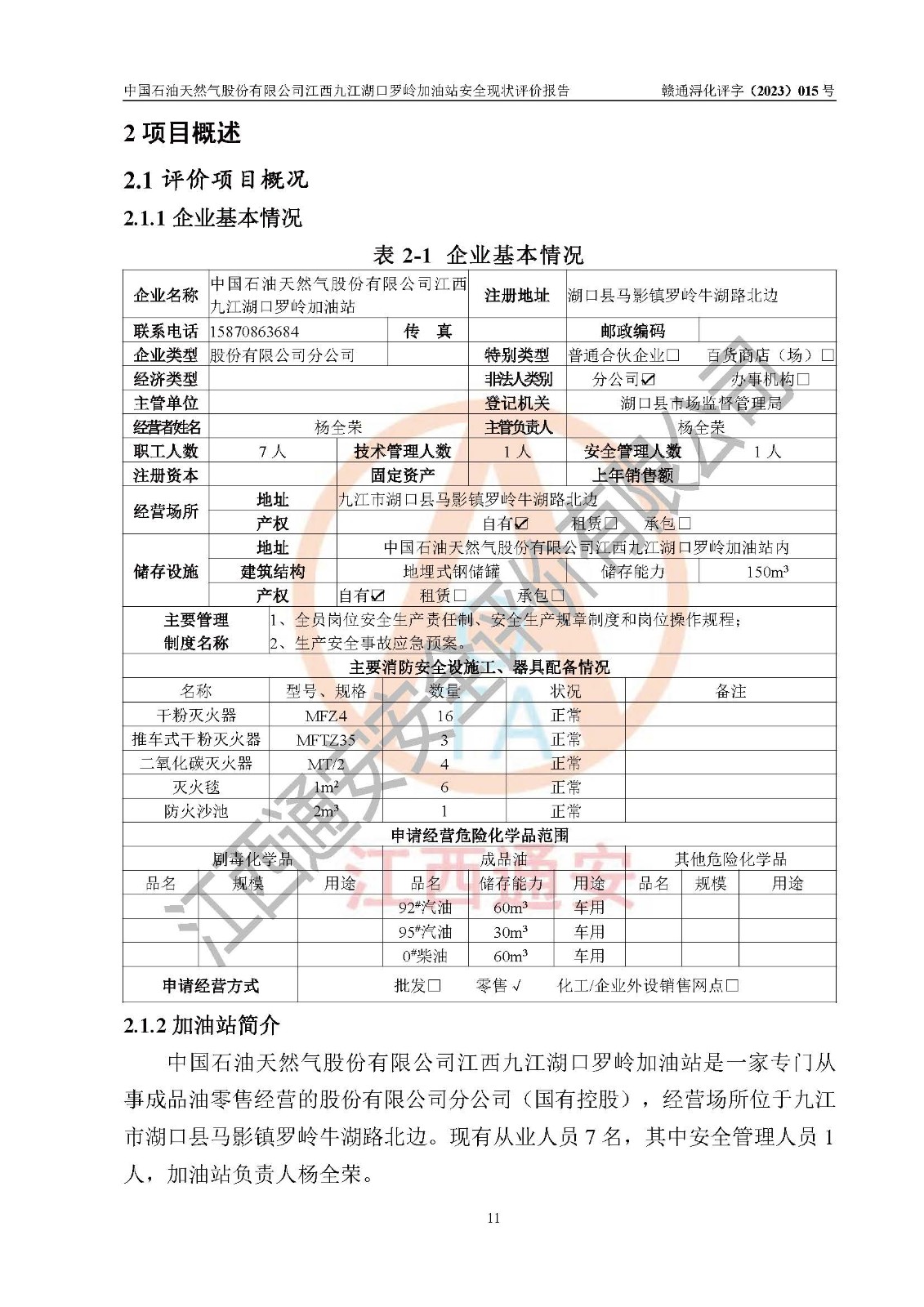 評(píng)價(jià)報(bào)告名稱 | 中國(guó)石油天然氣股份有限公司江西九江湖口羅嶺加油站安全現(xiàn)狀評(píng)價(jià)報(bào)告 | |||