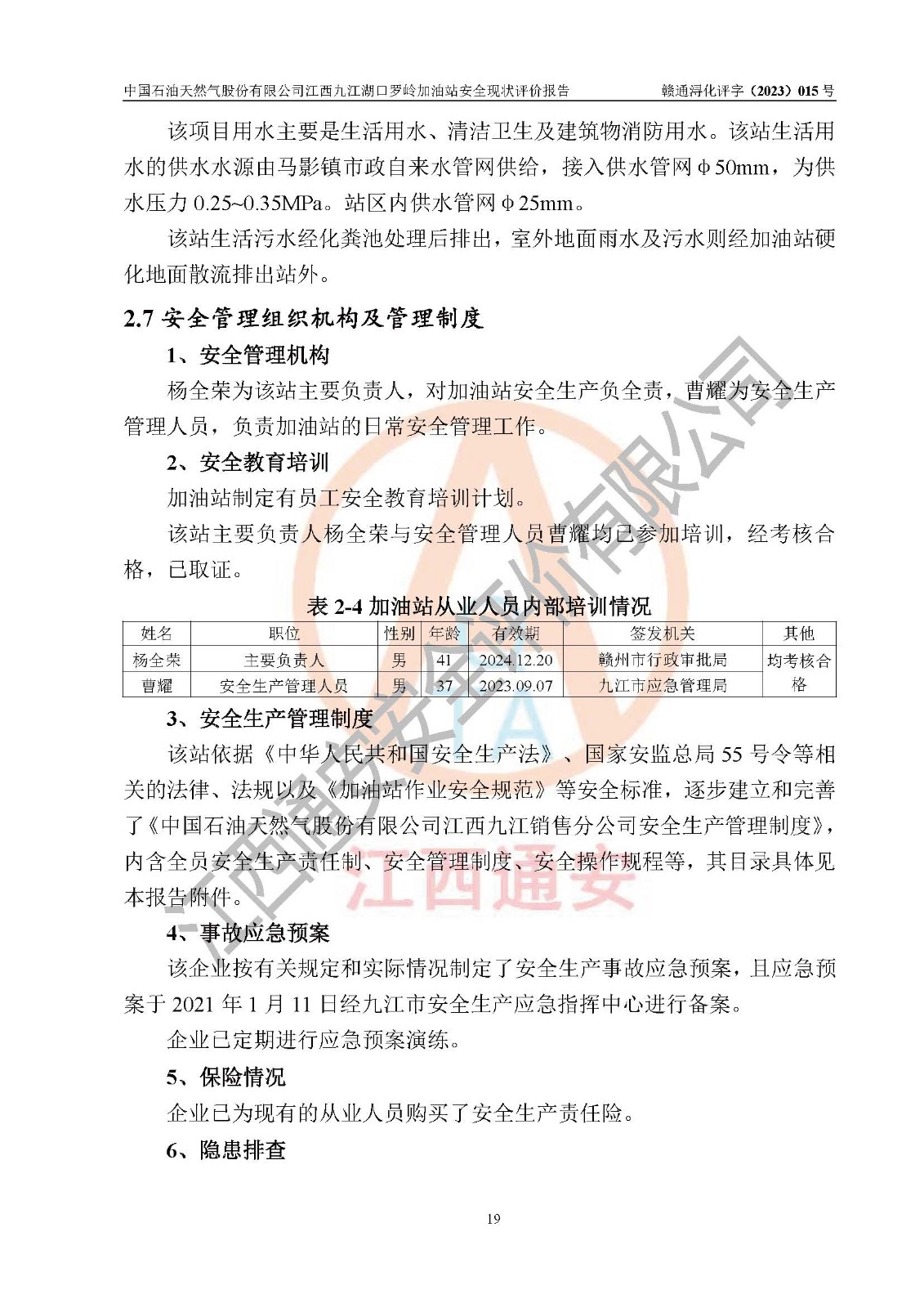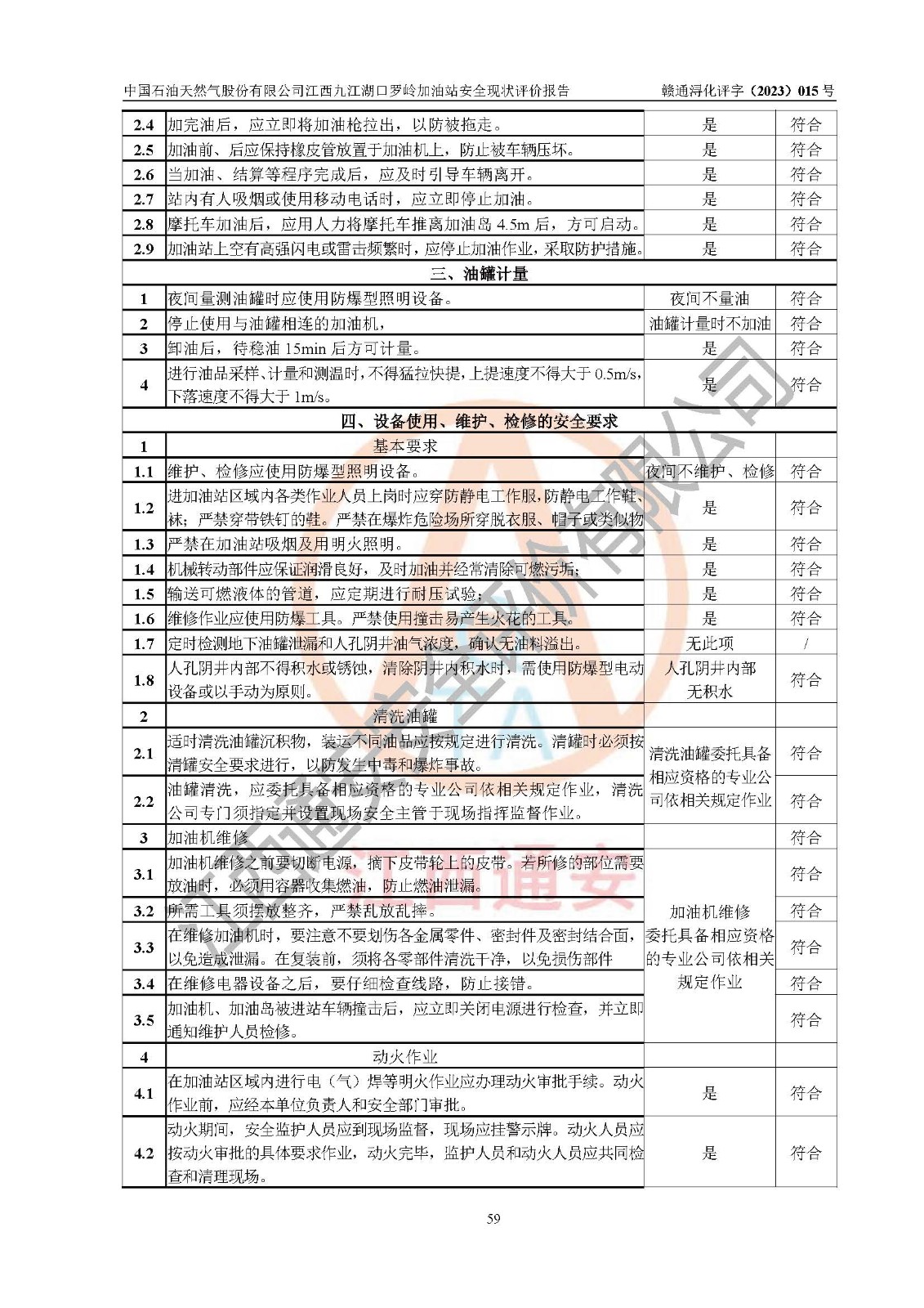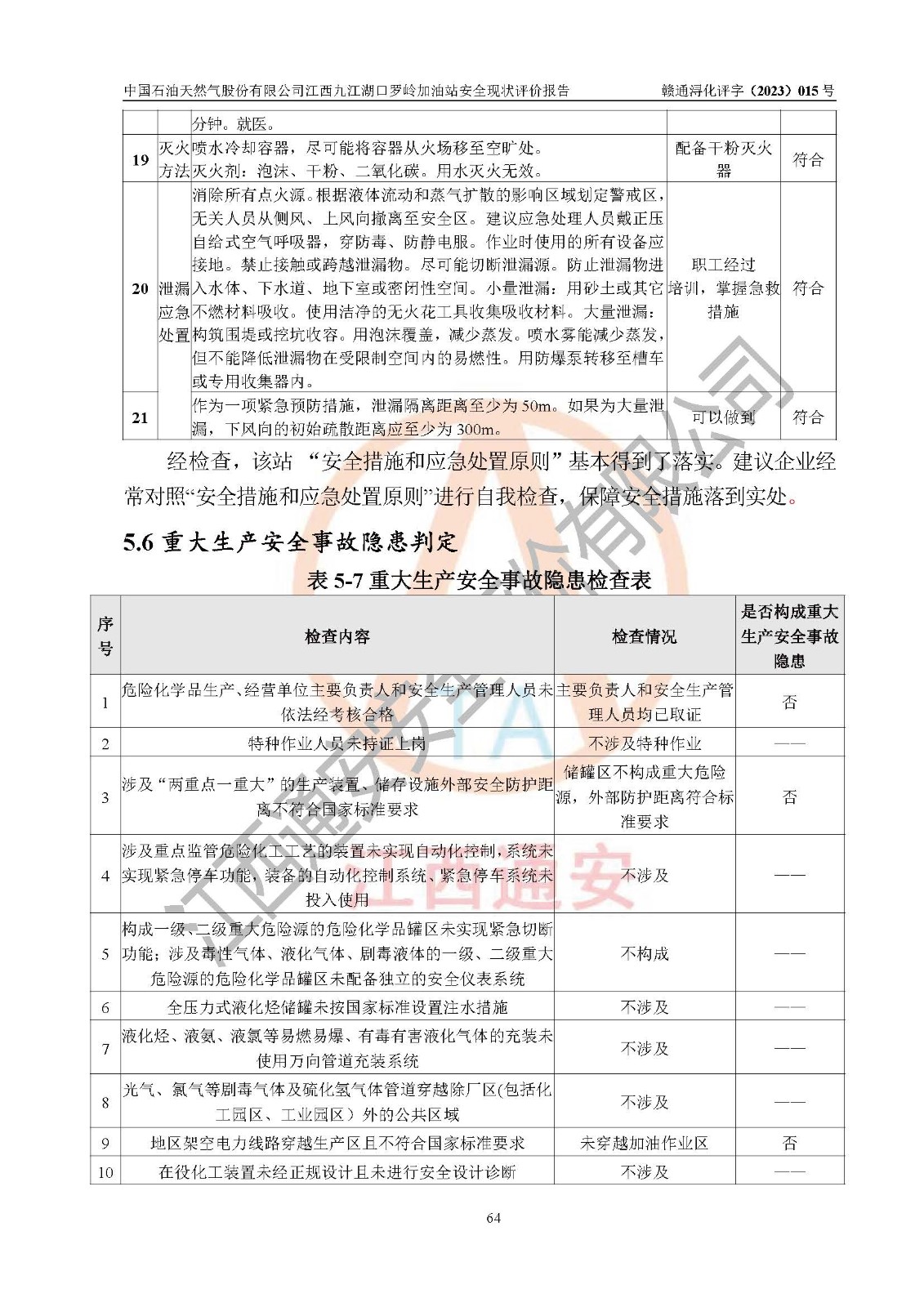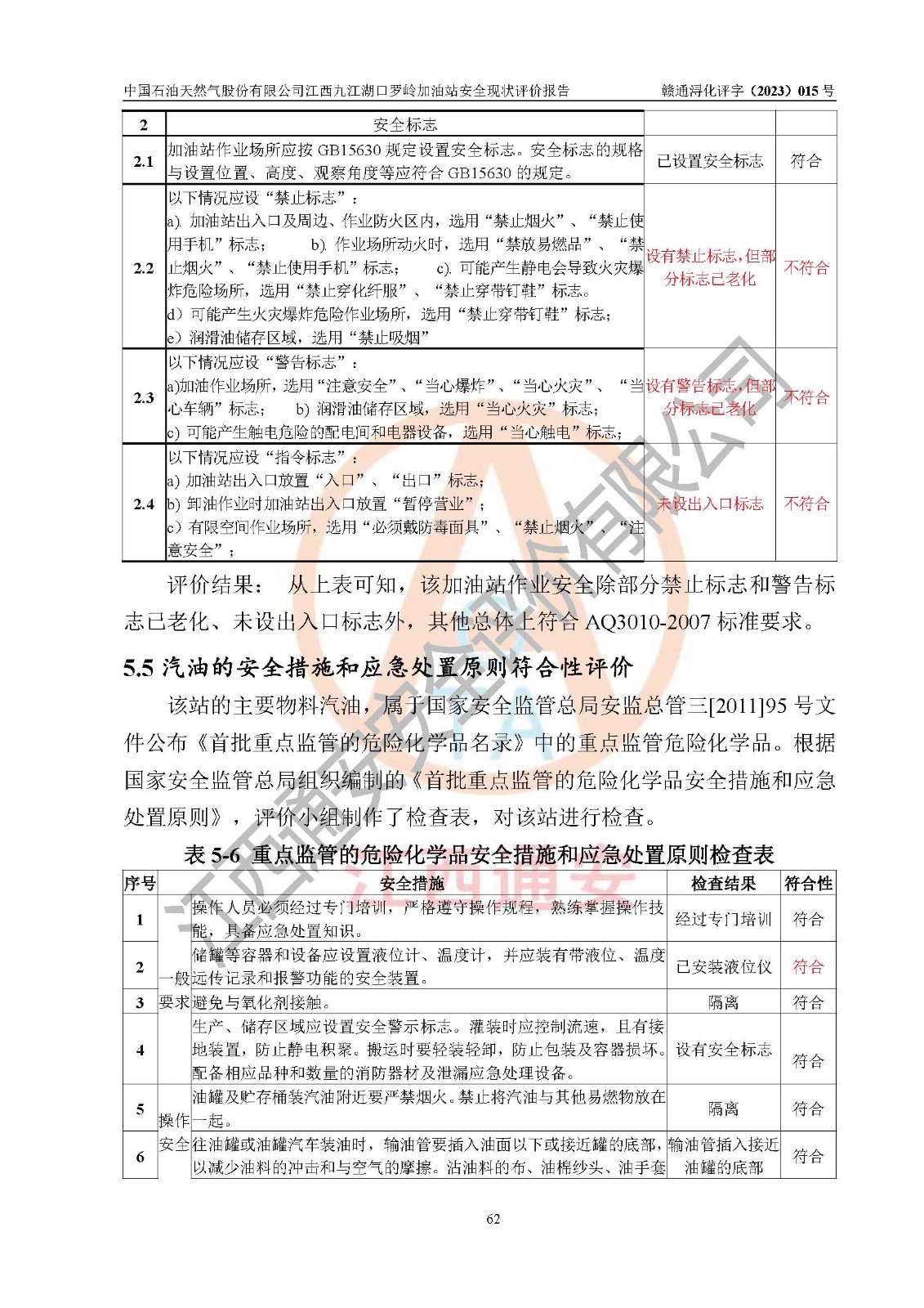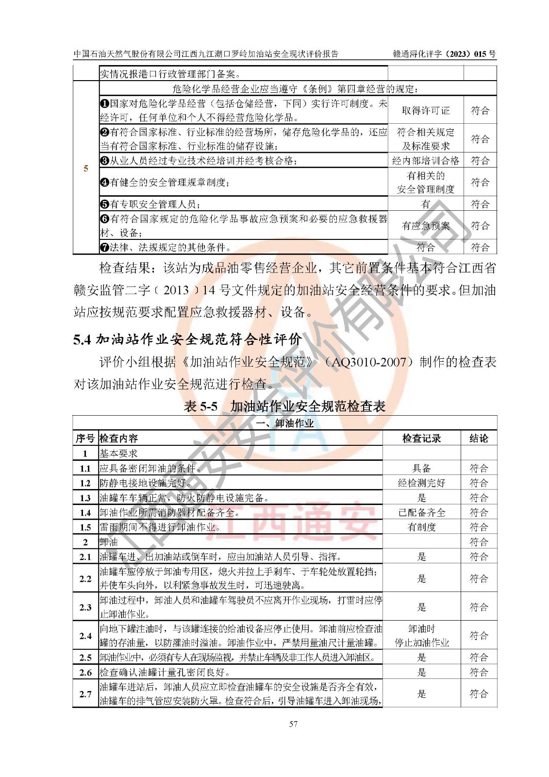 評(píng)價(jià)結(jié)論 | 中國(guó)石油天然氣股份有限公司江西九江湖口羅嶺加油站涉及的安全條件、安全經(jīng)營(yíng)條件、安全生產(chǎn)管理符合《危險(xiǎn)化學(xué)品經(jīng)營(yíng)許可證管理辦法》、《汽車加油加氣加氫站技術(shù)標(biāo)準(zhǔn)》等**有關(guān)法規(guī)、標(biāo)準(zhǔn)、規(guī)范要求,能滿足危險(xiǎn)化學(xué)品經(jīng)營(yíng)安全條件。 | |||