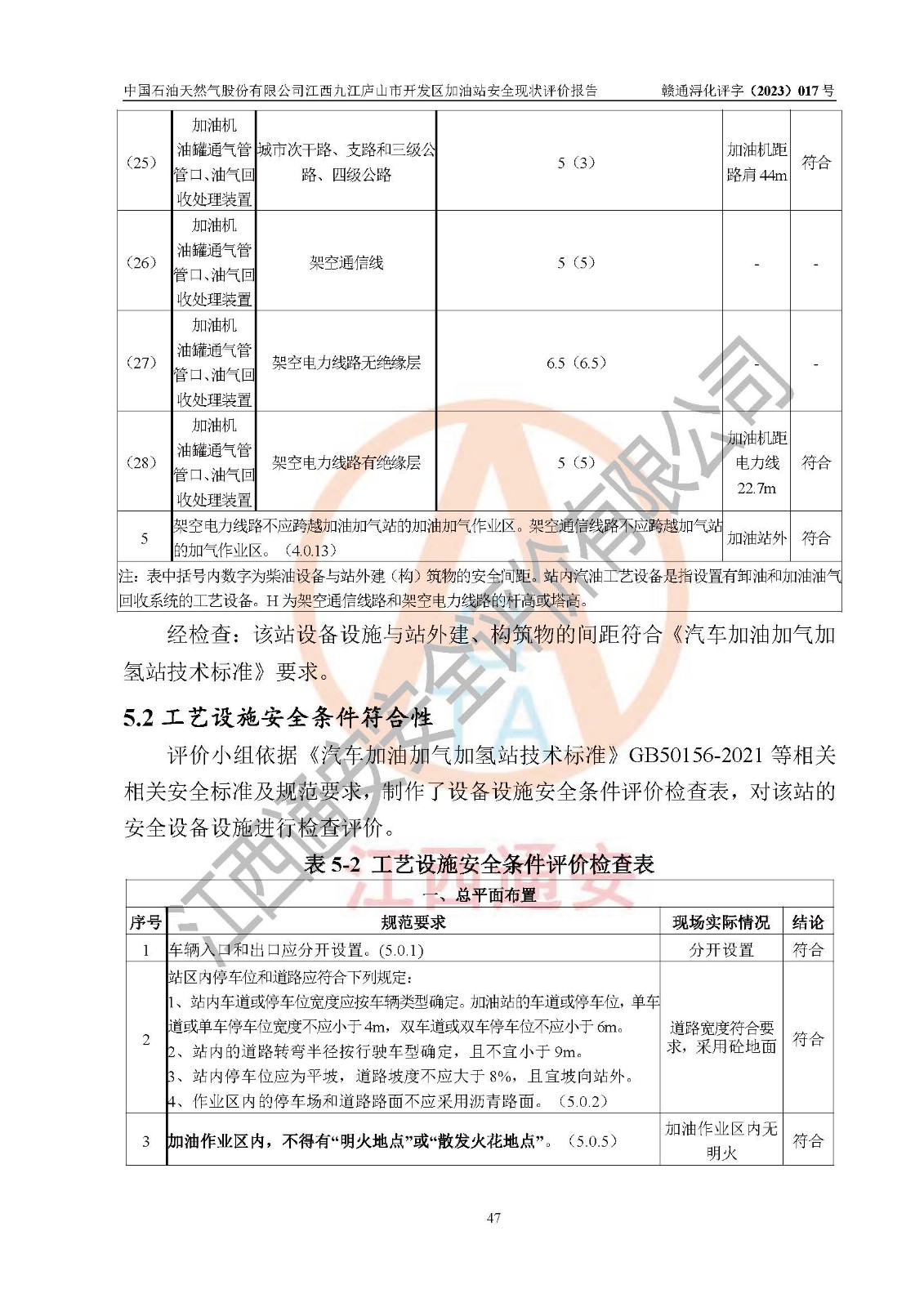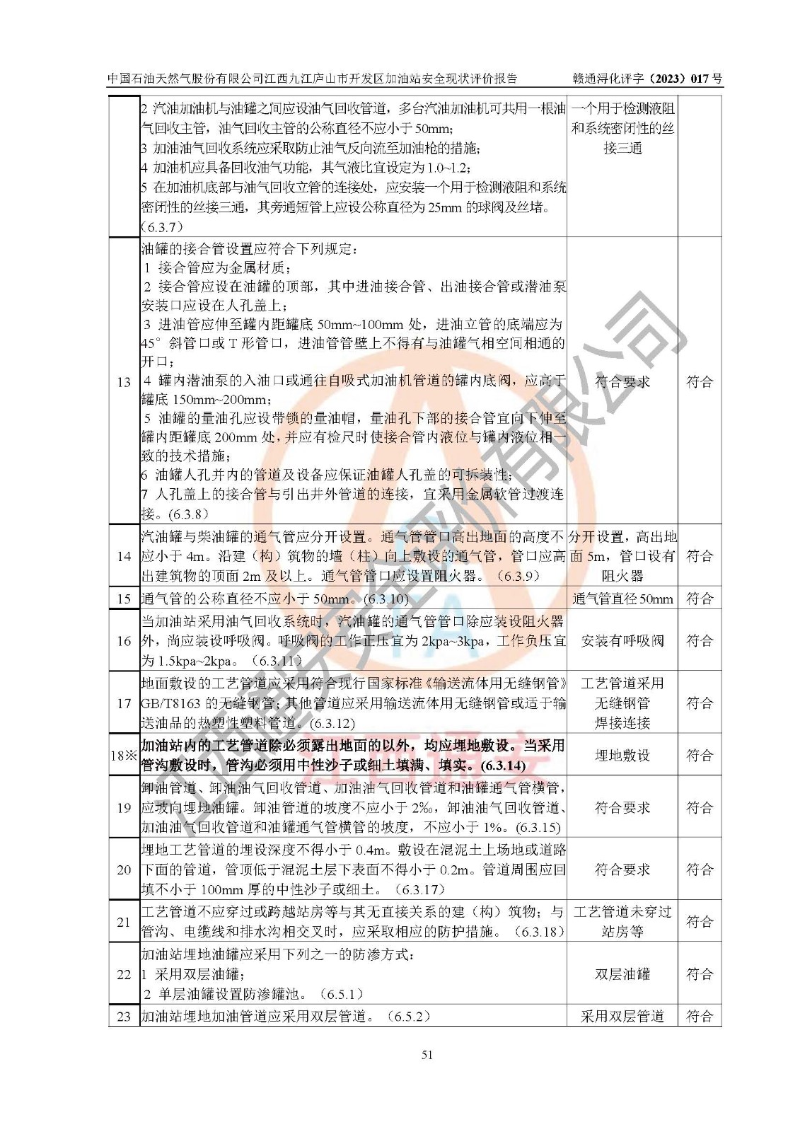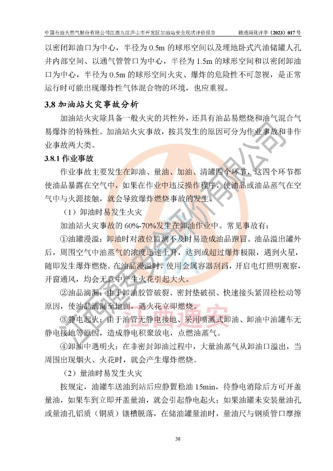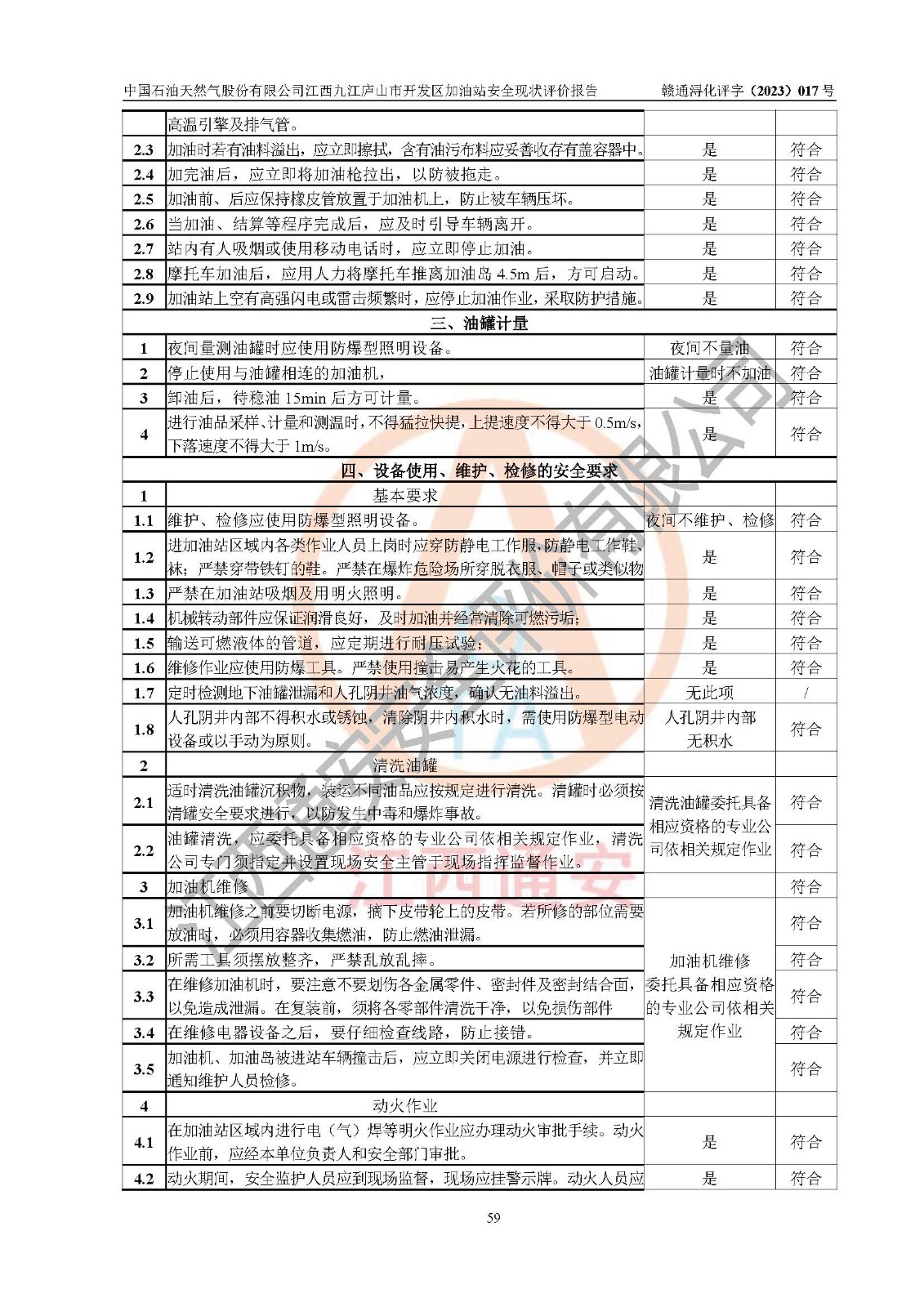 評(píng)價(jià)結(jié)論 | 中國石油天然氣股份有限公司江西九江廬山市開發(fā)區(qū)加油站涉及的安全條件、安全經(jīng)營條件、安全生產(chǎn)管理符合《危險(xiǎn)化學(xué)品經(jīng)營許可證管理辦法》、《汽車加油加氣加氫站技術(shù)標(biāo)準(zhǔn)》等**有關(guān)法規(guī)、標(biāo)準(zhǔn)、規(guī)范要求,能滿足危險(xiǎn)化學(xué)品經(jīng)營安全條件。 | |||