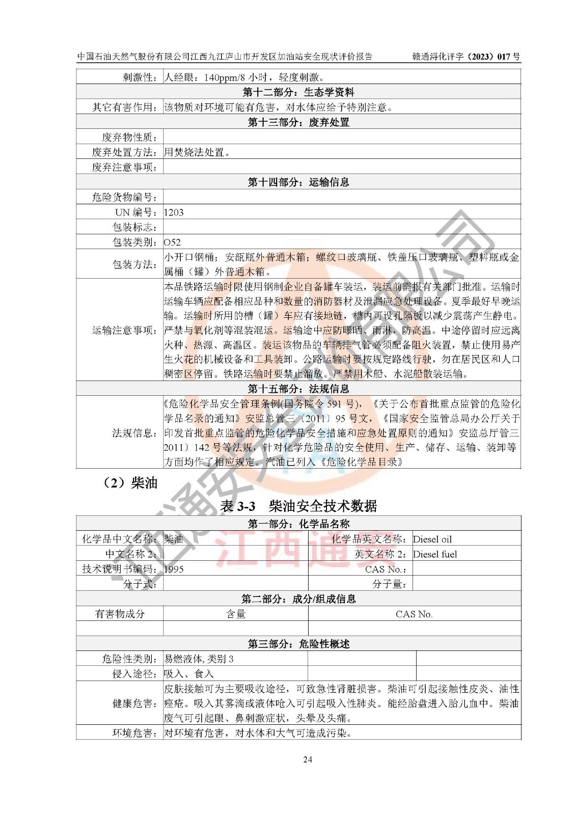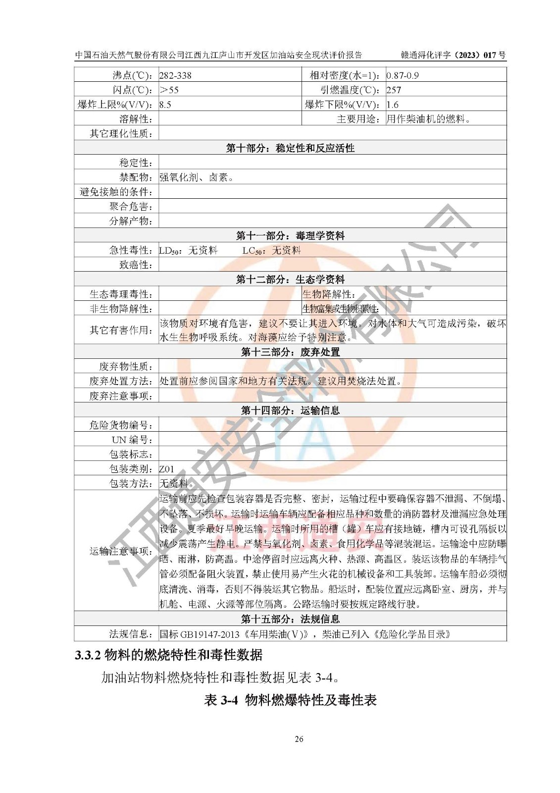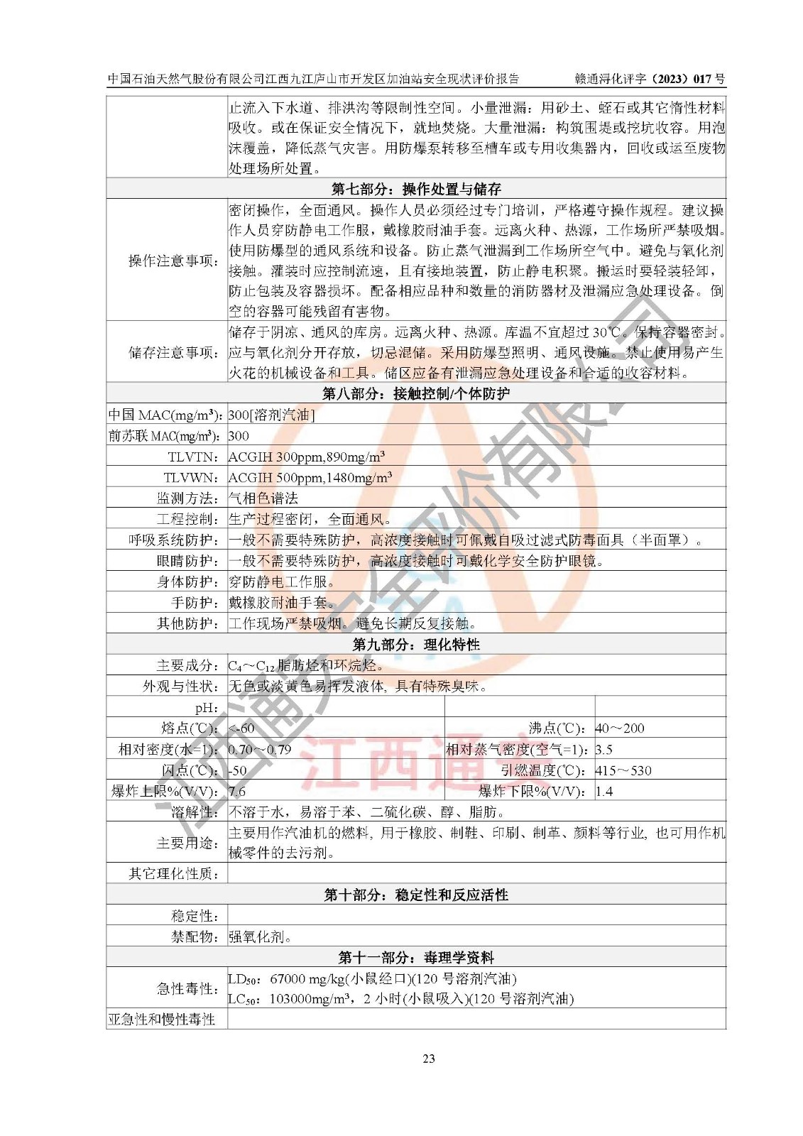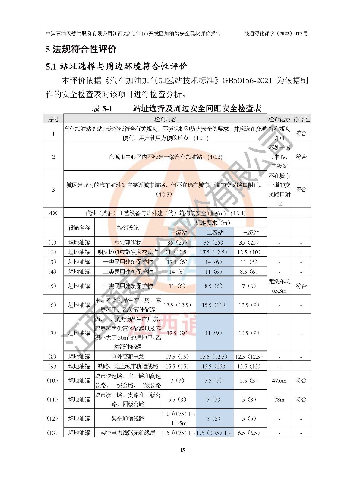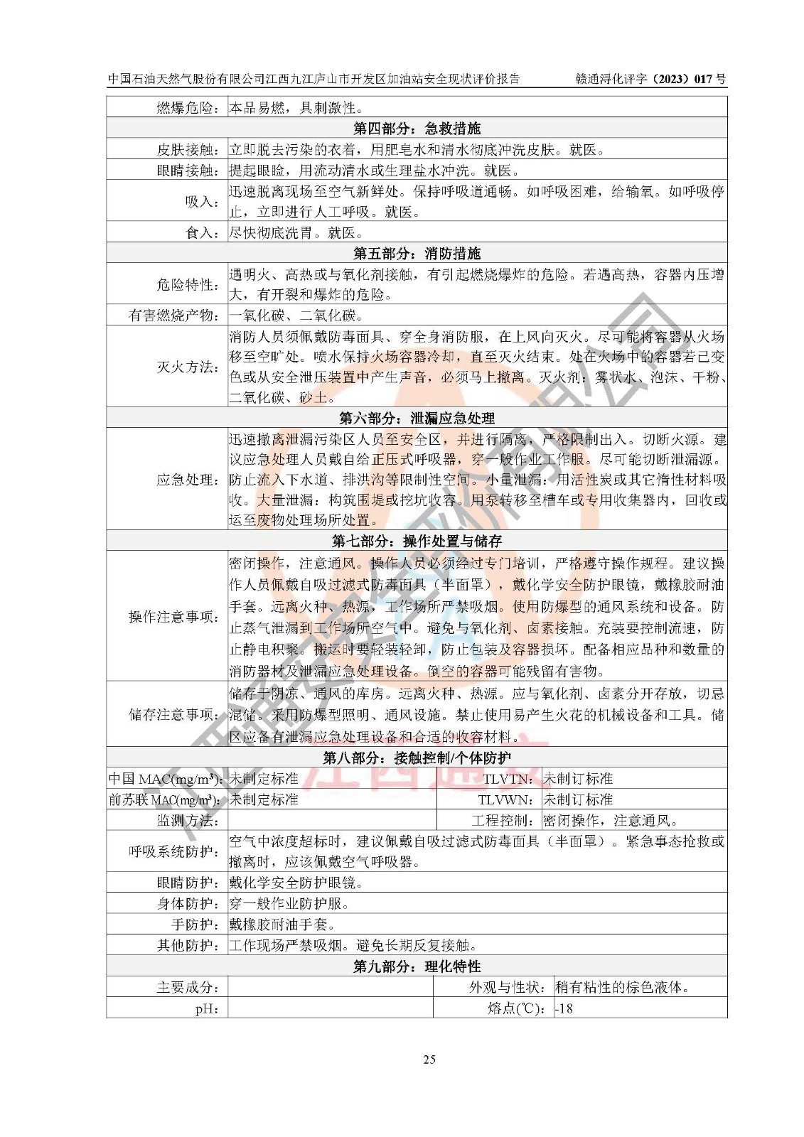 評(píng)價(jià)結(jié)論 | 中國石油天然氣股份有限公司江西九江廬山市開發(fā)區(qū)加油站涉及的安全條件、安全經(jīng)營條件、安全生產(chǎn)管理符合《危險(xiǎn)化學(xué)品經(jīng)營許可證管理辦法》、《汽車加油加氣加氫站技術(shù)標(biāo)準(zhǔn)》等**有關(guān)法規(guī)、標(biāo)準(zhǔn)、規(guī)范要求,能滿足危險(xiǎn)化學(xué)品經(jīng)營安全條件。 | |||