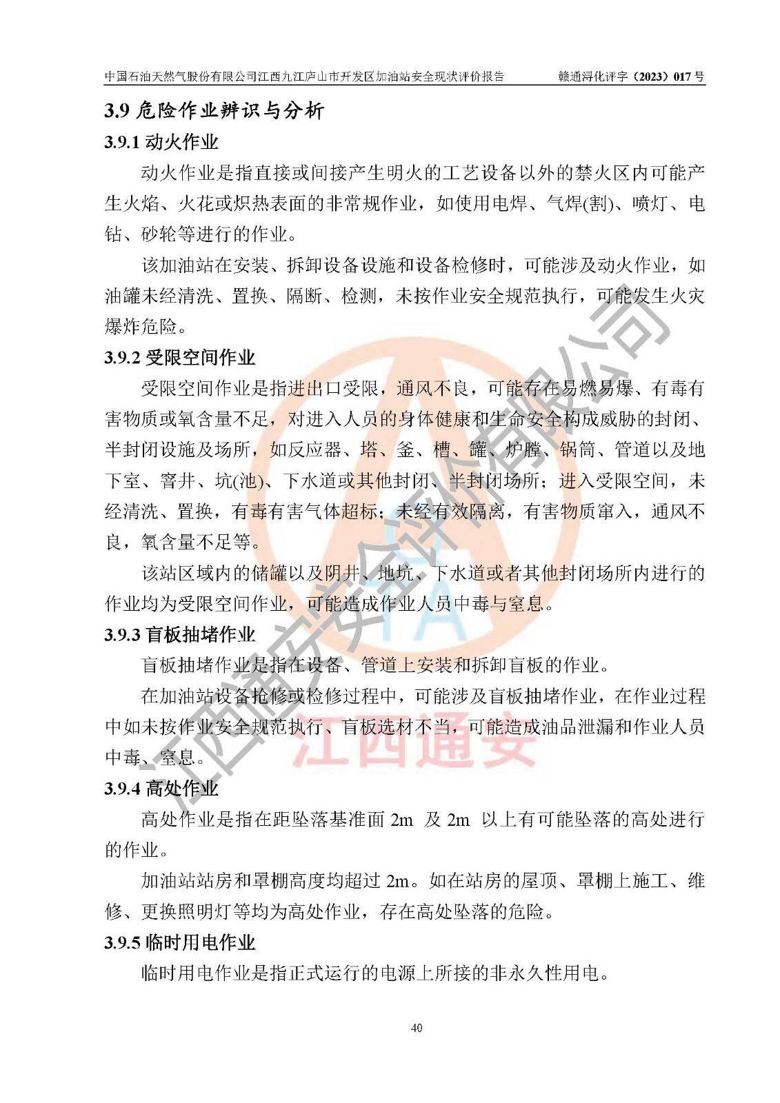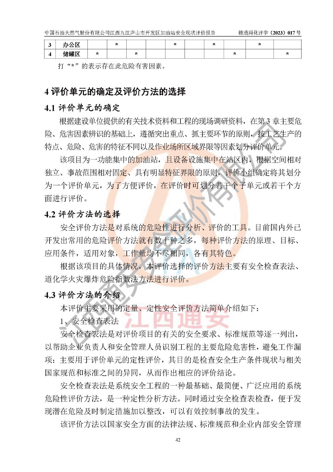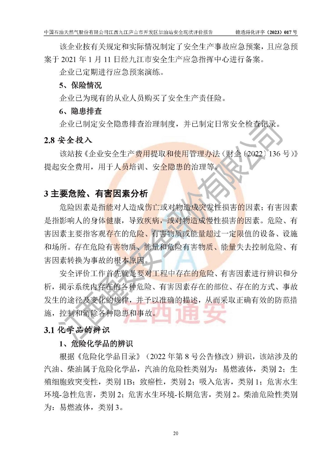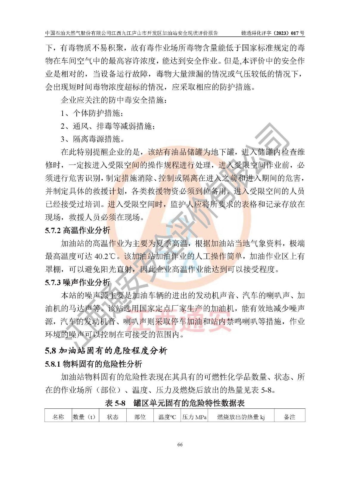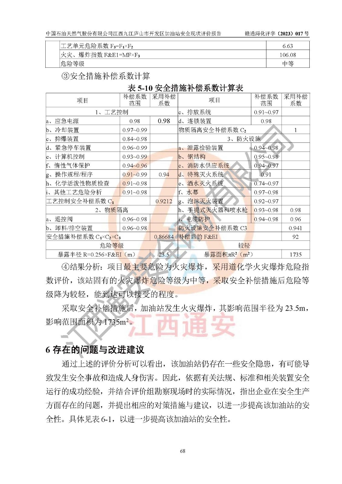 評(píng)價(jià)結(jié)論 | 中國石油天然氣股份有限公司江西九江廬山市開發(fā)區(qū)加油站涉及的安全條件、安全經(jīng)營條件、安全生產(chǎn)管理符合《危險(xiǎn)化學(xué)品經(jīng)營許可證管理辦法》、《汽車加油加氣加氫站技術(shù)標(biāo)準(zhǔn)》等**有關(guān)法規(guī)、標(biāo)準(zhǔn)、規(guī)范要求,能滿足危險(xiǎn)化學(xué)品經(jīng)營安全條件。 | |||