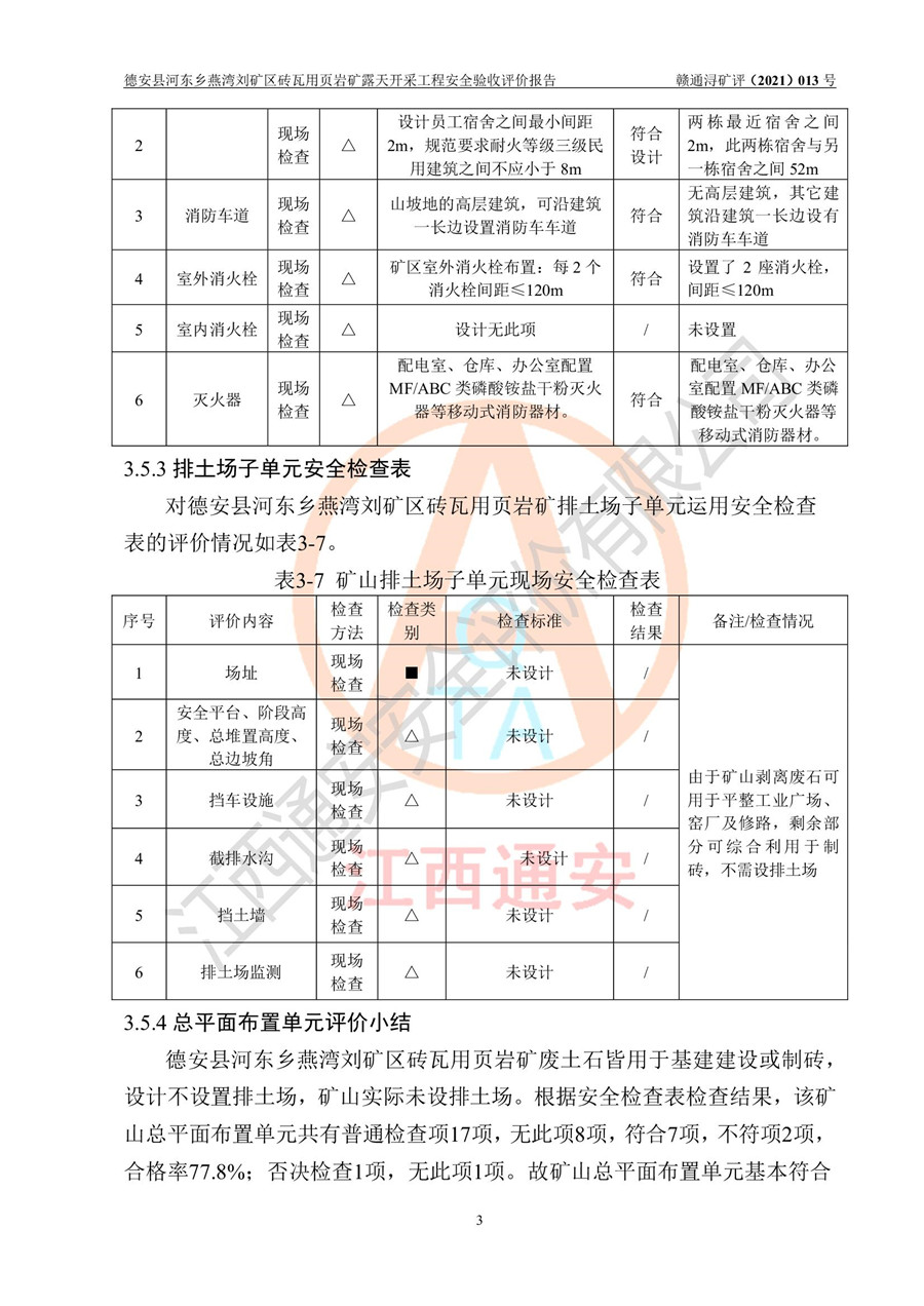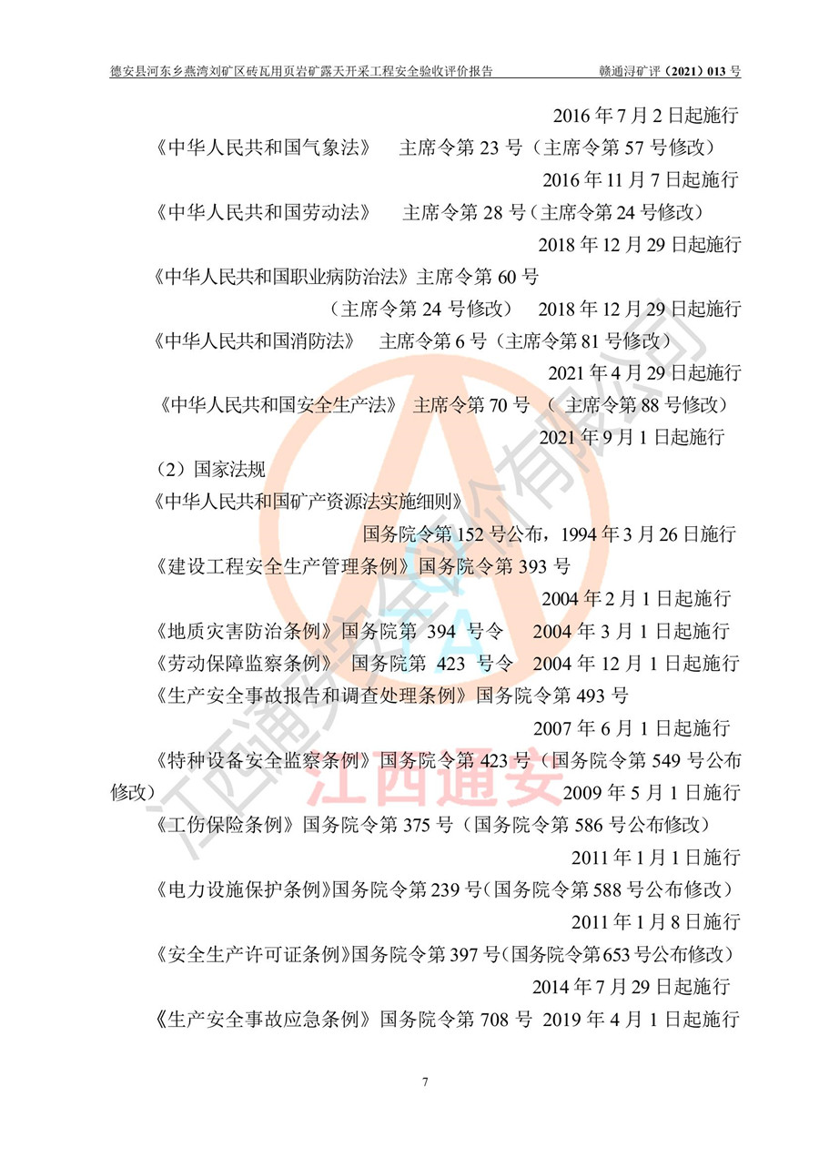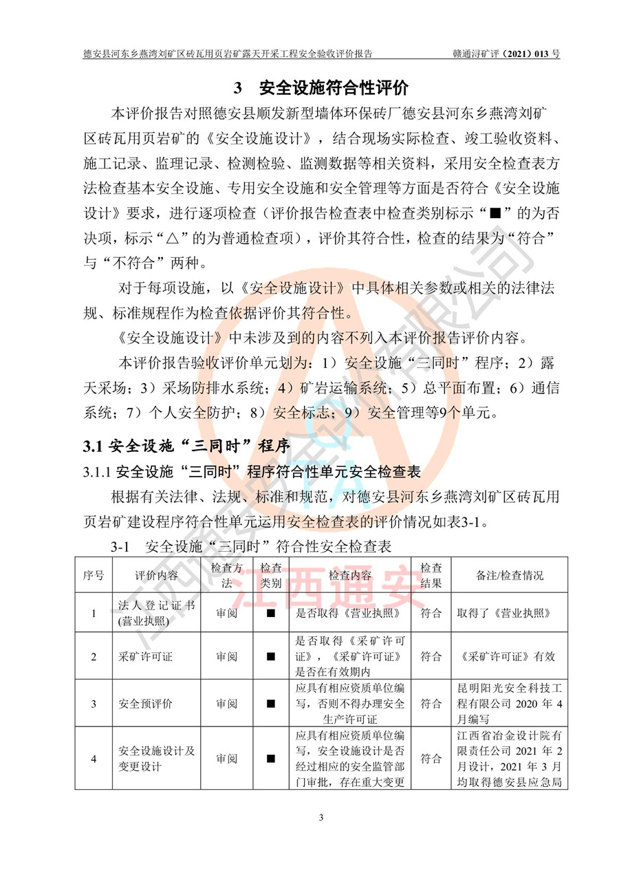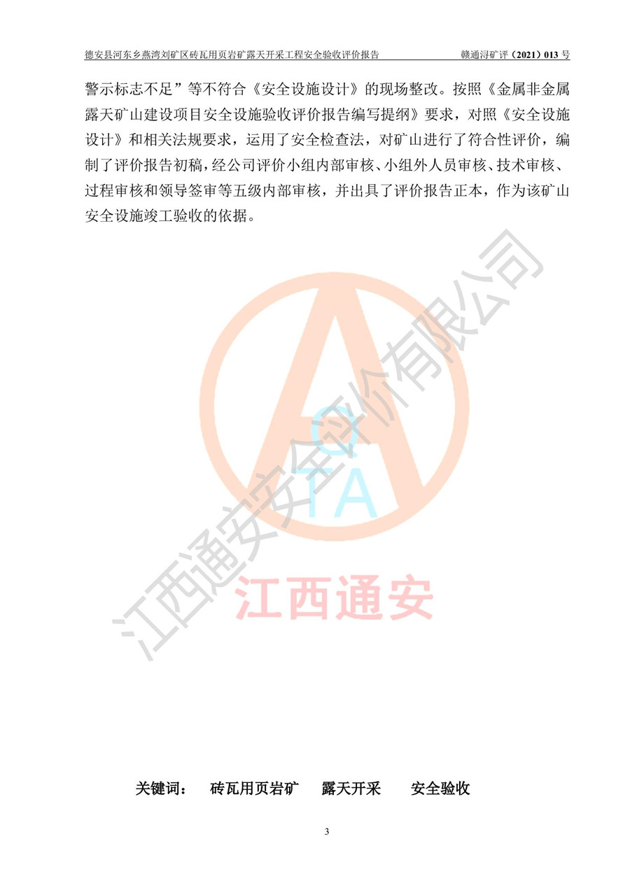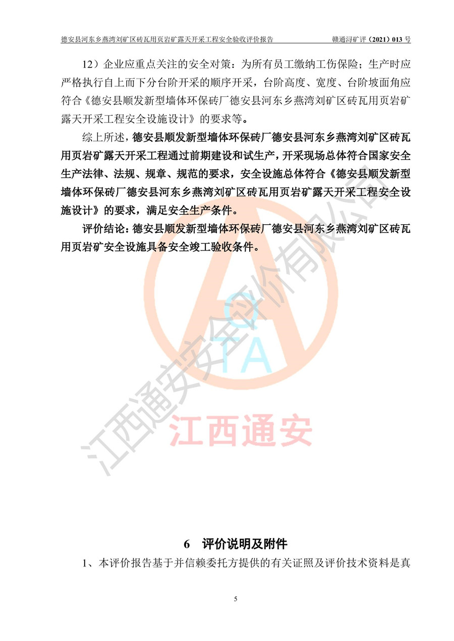德安縣順發(fā)新型墻體**磚廠成立于2017年3月14日,位于德安縣河?xùn)|鄉(xiāng)后田村1組,為普通合伙企業(yè),執(zhí)行事務(wù)合伙人為劉俊勝,主要從事從事機(jī)制磚生產(chǎn)與銷售等。其下屬礦山——德安縣河?xùn)|鄉(xiāng)燕灣劉礦區(qū)磚瓦用頁巖礦于2018年9由江西省地質(zhì)礦產(chǎn)勘查開發(fā)局九一六大隊(duì)編制了《德安縣河?xùn)|鄉(xiāng)燕灣劉礦區(qū)磚瓦用頁巖礦普查地質(zhì)報(bào)告》,2018年10由九江市鑫晟礦業(yè)有限公司編制了《德安縣河?xùn)|鄉(xiāng)燕灣劉礦區(qū)磚瓦用頁巖礦開發(fā)利用方案》,2020年4月,委托昆明陽光安全科技工程有限公司編制了《德安縣順發(fā)新型墻體**磚廠德安縣河?xùn)|鄉(xiāng)燕灣劉礦區(qū)磚瓦用頁巖礦露天開采工程安全預(yù)評(píng)價(jià)報(bào)告》,2020年6月取得了《采礦許可證》(2021年6月延期),《采礦許可證》核定的礦區(qū)范圍由9個(gè)坐標(biāo)拐點(diǎn)構(gòu)成,礦區(qū)面積為0.0622km2,采掘深度+54.5m~+35m,開采規(guī)模24.2萬t/a。礦山2021年2月由江西省冶金設(shè)計(jì)院有限責(zé)任公司編制了《德安縣順發(fā)新型墻體**磚廠德安縣河?xùn)|鄉(xiāng)燕灣劉礦區(qū)磚瓦用頁巖礦露天開采工程安全設(shè)施設(shè)計(jì)》(以下簡稱《安全設(shè)施設(shè)計(jì)》),《安全設(shè)施設(shè)計(jì)》于2021年3月3日取得了德安縣應(yīng)急管理局審查備案批復(fù)(德應(yīng)急字[2021]12號(hào))。 該礦山為山坡露天礦山,開采制磚用頁巖,基建由礦山自己施工?!栋踩O(shè)施設(shè)計(jì)》設(shè)計(jì)礦山采用公路開拓—汽車運(yùn)輸方式,自上而下由挖掘機(jī)挖掘,分臺(tái)階分階段開采。礦山已按《安全設(shè)施設(shè)計(jì)》進(jìn)行了基建期建設(shè),開拓道路已修至了+50m標(biāo)高首采平臺(tái),完成了+50m標(biāo)高首采平臺(tái)建設(shè),達(dá)到了礦山《初步設(shè)計(jì)》及《安全設(shè)施設(shè)計(jì)》設(shè)計(jì)基建期建設(shè)要求 |