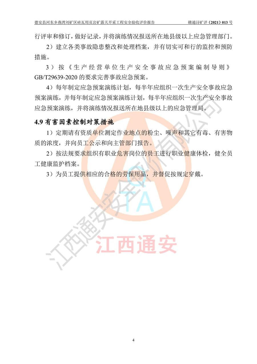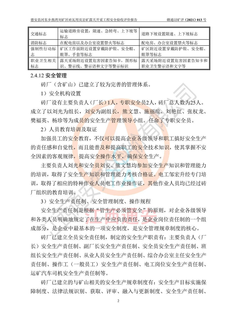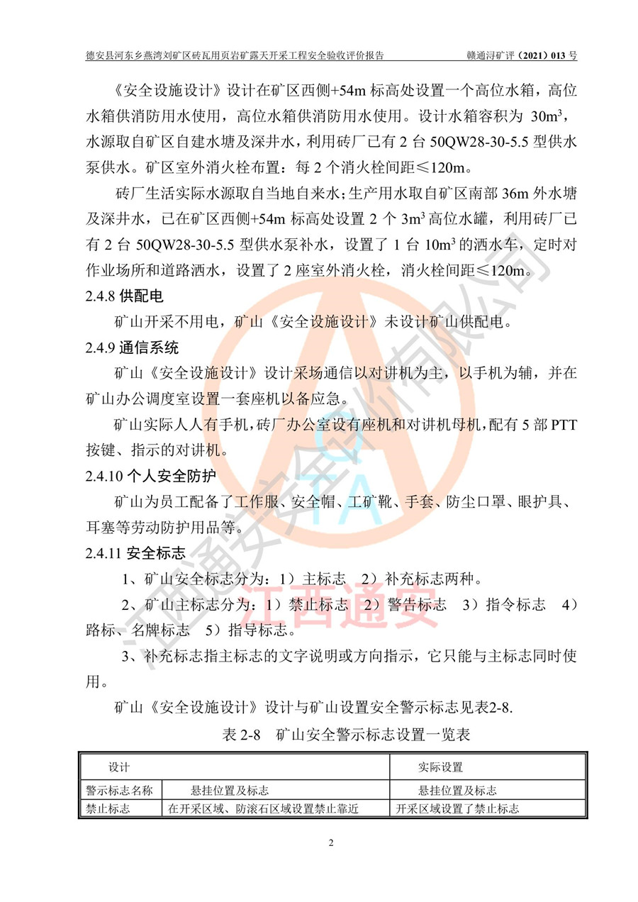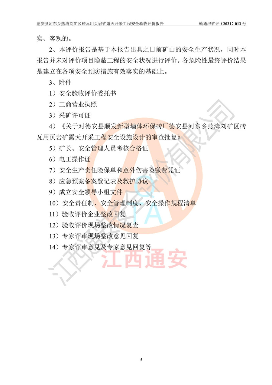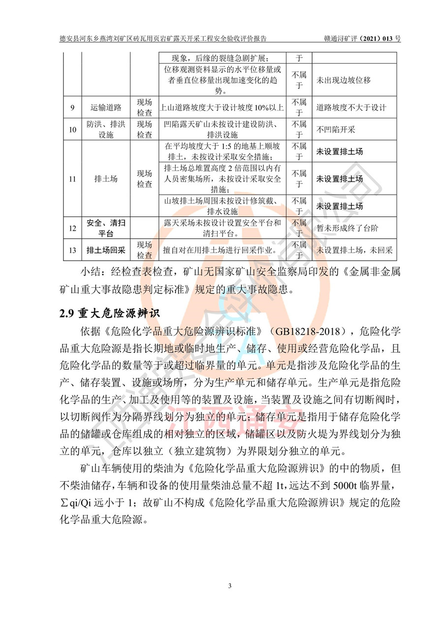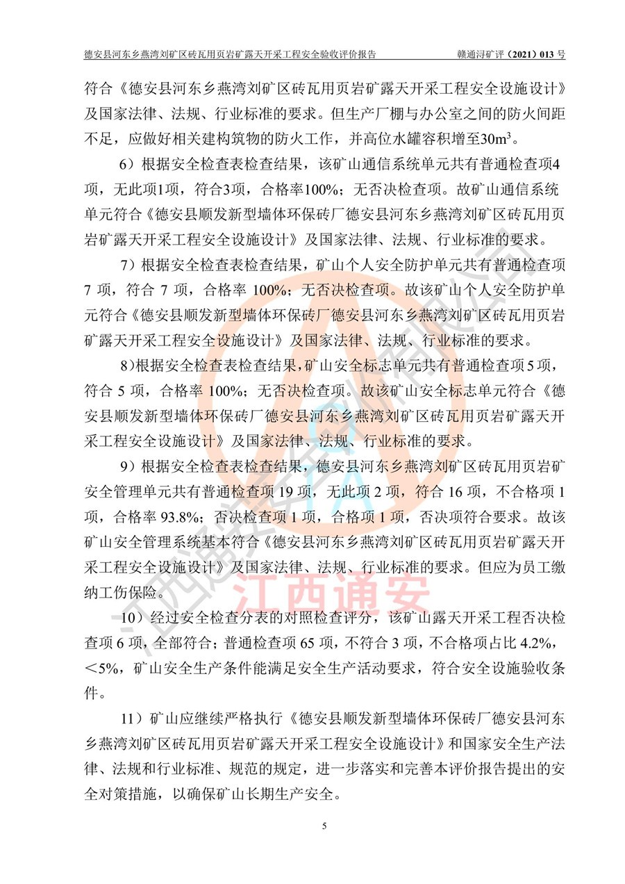 德安縣順發(fā)新型墻體**磚廠成立于2017年3月14日,位于德安縣河?xùn)|鄉(xiāng)后田村1組,為普通合伙企業(yè),執(zhí)行事務(wù)合伙人為劉俊勝,主要從事從事機(jī)制磚生產(chǎn)與銷售等。其下屬礦山——德安縣河?xùn)|鄉(xiāng)燕灣劉礦區(qū)磚瓦用頁巖礦于2018年9由江西省地質(zhì)礦產(chǎn)勘查開發(fā)局九一六大隊(duì)編制了《德安縣河?xùn)|鄉(xiāng)燕灣劉礦區(qū)磚瓦用頁巖礦普查地質(zhì)報(bào)告》,2018年10由九江市鑫晟礦業(yè)有限公司編制了《德安縣河?xùn)|鄉(xiāng)燕灣劉礦區(qū)磚瓦用頁巖礦開發(fā)利用方案》,2020年4月,委托昆明陽光安全科技工程有限公司編制了《德安縣順發(fā)新型墻體**磚廠德安縣河?xùn)|鄉(xiāng)燕灣劉礦區(qū)磚瓦用頁巖礦露天開采工程安全預(yù)評(píng)價(jià)報(bào)告》,2020年6月取得了《采礦許可證》(2021年6月延期),《采礦許可證》核定的礦區(qū)范圍由9個(gè)坐標(biāo)拐點(diǎn)構(gòu)成,礦區(qū)面積為0.0622km2,采掘深度+54.5m~+35m,開采規(guī)模24.2萬t/a。礦山2021年2月由江西省冶金設(shè)計(jì)院有限責(zé)任公司編制了《德安縣順發(fā)新型墻體**磚廠德安縣河?xùn)|鄉(xiāng)燕灣劉礦區(qū)磚瓦用頁巖礦露天開采工程安全設(shè)施設(shè)計(jì)》(以下簡稱《安全設(shè)施設(shè)計(jì)》),《安全設(shè)施設(shè)計(jì)》于2021年3月3日取得了德安縣應(yīng)急管理局審查備案批復(fù)(德應(yīng)急字[2021]12號(hào))。 該礦山為山坡露天礦山,開采制磚用頁巖,基建由礦山自己施工?!栋踩O(shè)施設(shè)計(jì)》設(shè)計(jì)礦山采用公路開拓—汽車運(yùn)輸方式,自上而下由挖掘機(jī)挖掘,分臺(tái)階分階段開采。礦山已按《安全設(shè)施設(shè)計(jì)》進(jìn)行了基建期建設(shè),開拓道路已修至了+50m標(biāo)高首采平臺(tái),完成了+50m標(biāo)高首采平臺(tái)建設(shè),達(dá)到了礦山《初步設(shè)計(jì)》及《安全設(shè)施設(shè)計(jì)》設(shè)計(jì)基建期建設(shè)要求 |