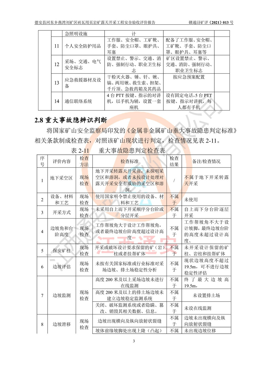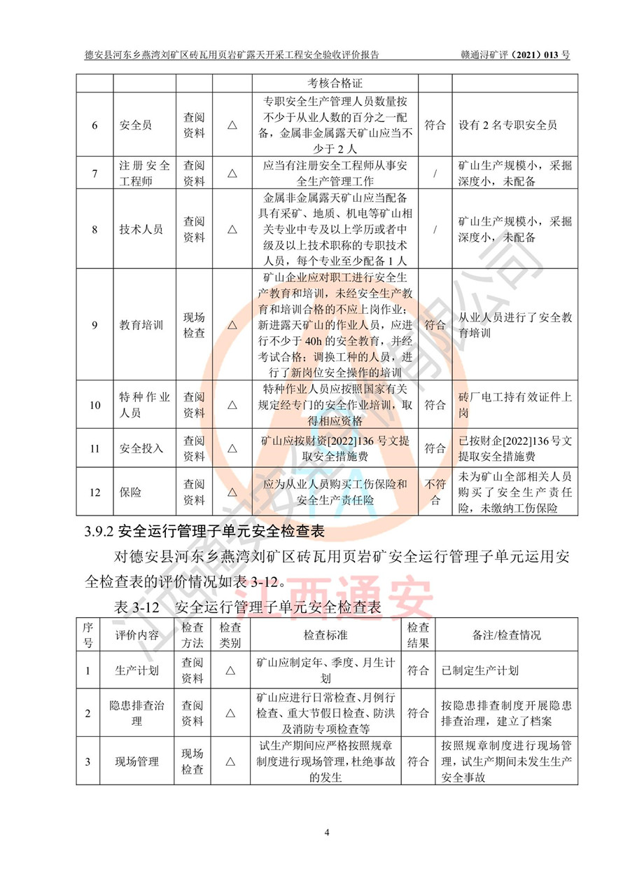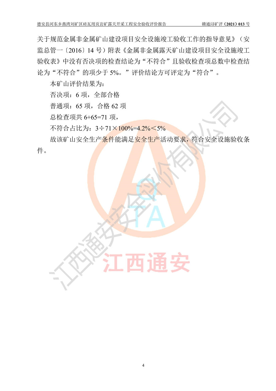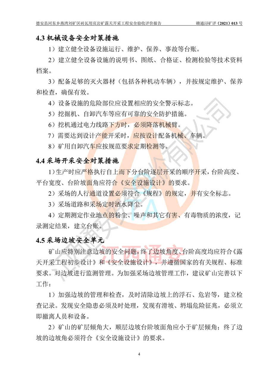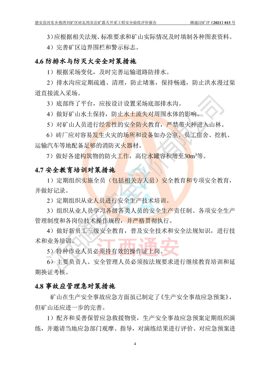 德安縣順發(fā)新型墻體**磚廠成立于2017年3月14日,位于德安縣河?xùn)|鄉(xiāng)后田村1組,為普通合伙企業(yè),執(zhí)行事務(wù)合伙人為劉俊勝,主要從事從事機(jī)制磚生產(chǎn)與銷售等。其下屬礦山——德安縣河?xùn)|鄉(xiāng)燕灣劉礦區(qū)磚瓦用頁巖礦于2018年9由江西省地質(zhì)礦產(chǎn)勘查開發(fā)局九一六大隊(duì)編制了《德安縣河?xùn)|鄉(xiāng)燕灣劉礦區(qū)磚瓦用頁巖礦普查地質(zhì)報(bào)告》,2018年10由九江市鑫晟礦業(yè)有限公司編制了《德安縣河?xùn)|鄉(xiāng)燕灣劉礦區(qū)磚瓦用頁巖礦開發(fā)利用方案》,2020年4月,委托昆明陽光安全科技工程有限公司編制了《德安縣順發(fā)新型墻體**磚廠德安縣河?xùn)|鄉(xiāng)燕灣劉礦區(qū)磚瓦用頁巖礦露天開采工程安全預(yù)評(píng)價(jià)報(bào)告》,2020年6月取得了《采礦許可證》(2021年6月延期),《采礦許可證》核定的礦區(qū)范圍由9個(gè)坐標(biāo)拐點(diǎn)構(gòu)成,礦區(qū)面積為0.0622km2,采掘深度+54.5m~+35m,開采規(guī)模24.2萬t/a。礦山2021年2月由江西省冶金設(shè)計(jì)院有限責(zé)任公司編制了《德安縣順發(fā)新型墻體**磚廠德安縣河?xùn)|鄉(xiāng)燕灣劉礦區(qū)磚瓦用頁巖礦露天開采工程安全設(shè)施設(shè)計(jì)》(以下簡稱《安全設(shè)施設(shè)計(jì)》),《安全設(shè)施設(shè)計(jì)》于2021年3月3日取得了德安縣應(yīng)急管理局審查備案批復(fù)(德應(yīng)急字[2021]12號(hào))。 該礦山為山坡露天礦山,開采制磚用頁巖,基建由礦山自己施工?!栋踩O(shè)施設(shè)計(jì)》設(shè)計(jì)礦山采用公路開拓—汽車運(yùn)輸方式,自上而下由挖掘機(jī)挖掘,分臺(tái)階分階段開采。礦山已按《安全設(shè)施設(shè)計(jì)》進(jìn)行了基建期建設(shè),開拓道路已修至了+50m標(biāo)高首采平臺(tái),完成了+50m標(biāo)高首采平臺(tái)建設(shè),達(dá)到了礦山《初步設(shè)計(jì)》及《安全設(shè)施設(shè)計(jì)》設(shè)計(jì)基建期建設(shè)要求 |