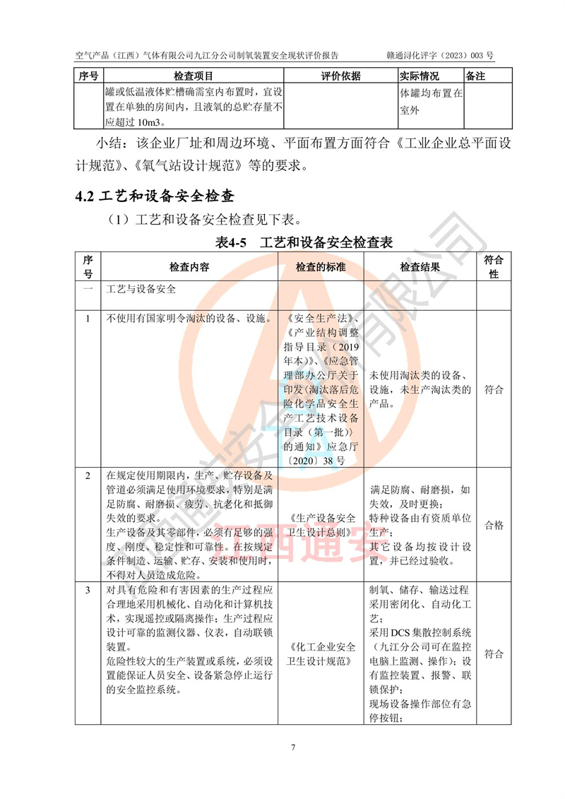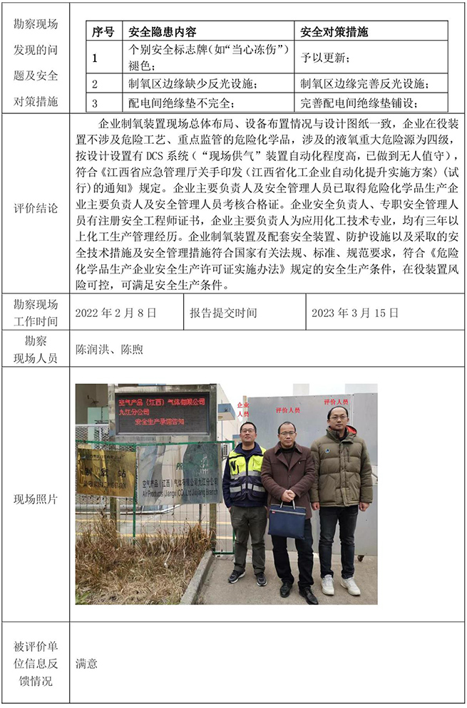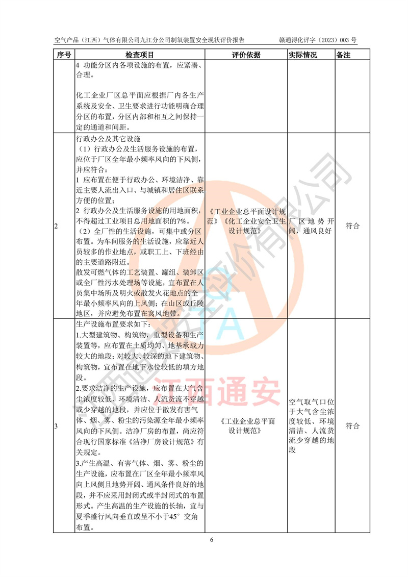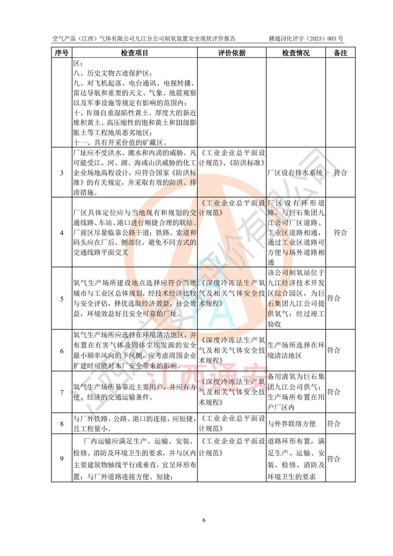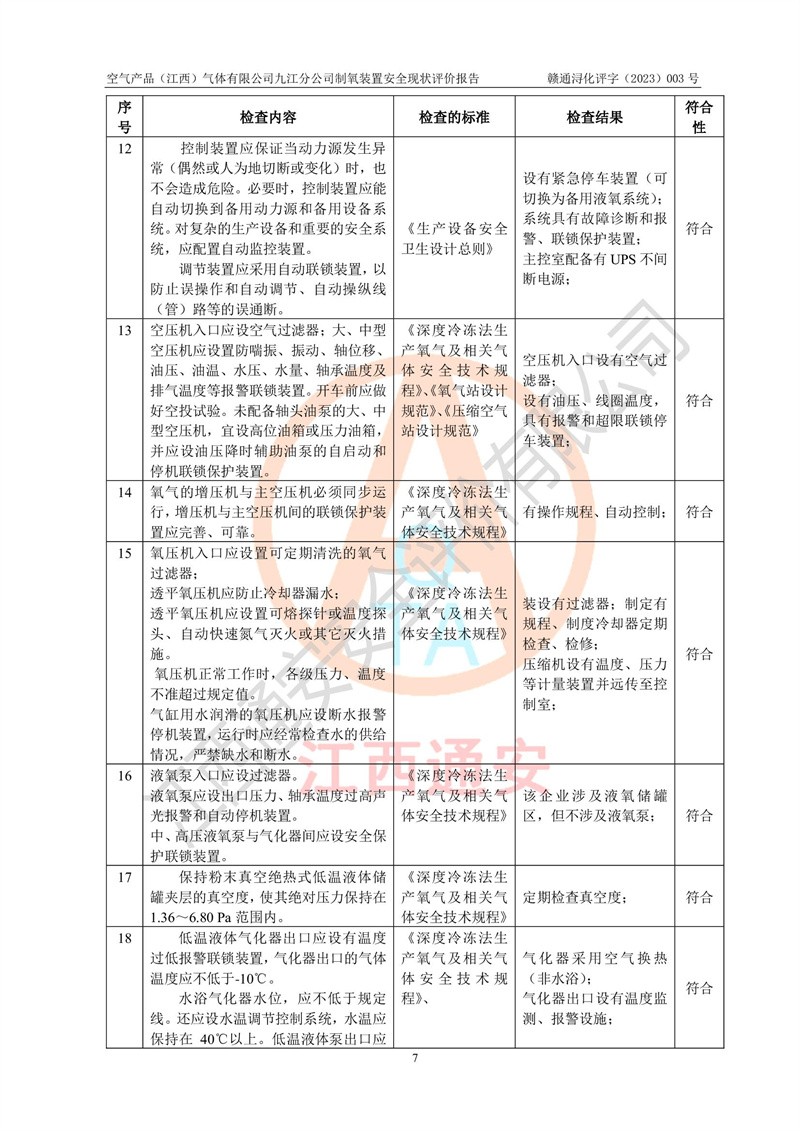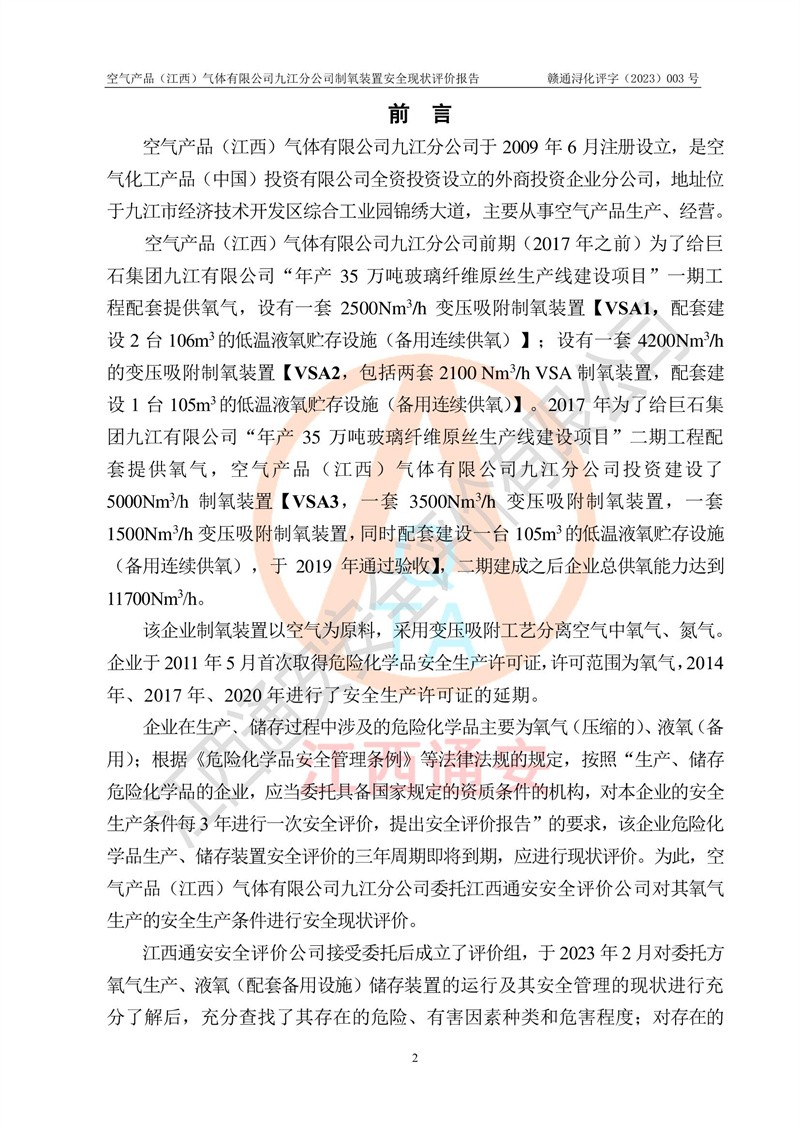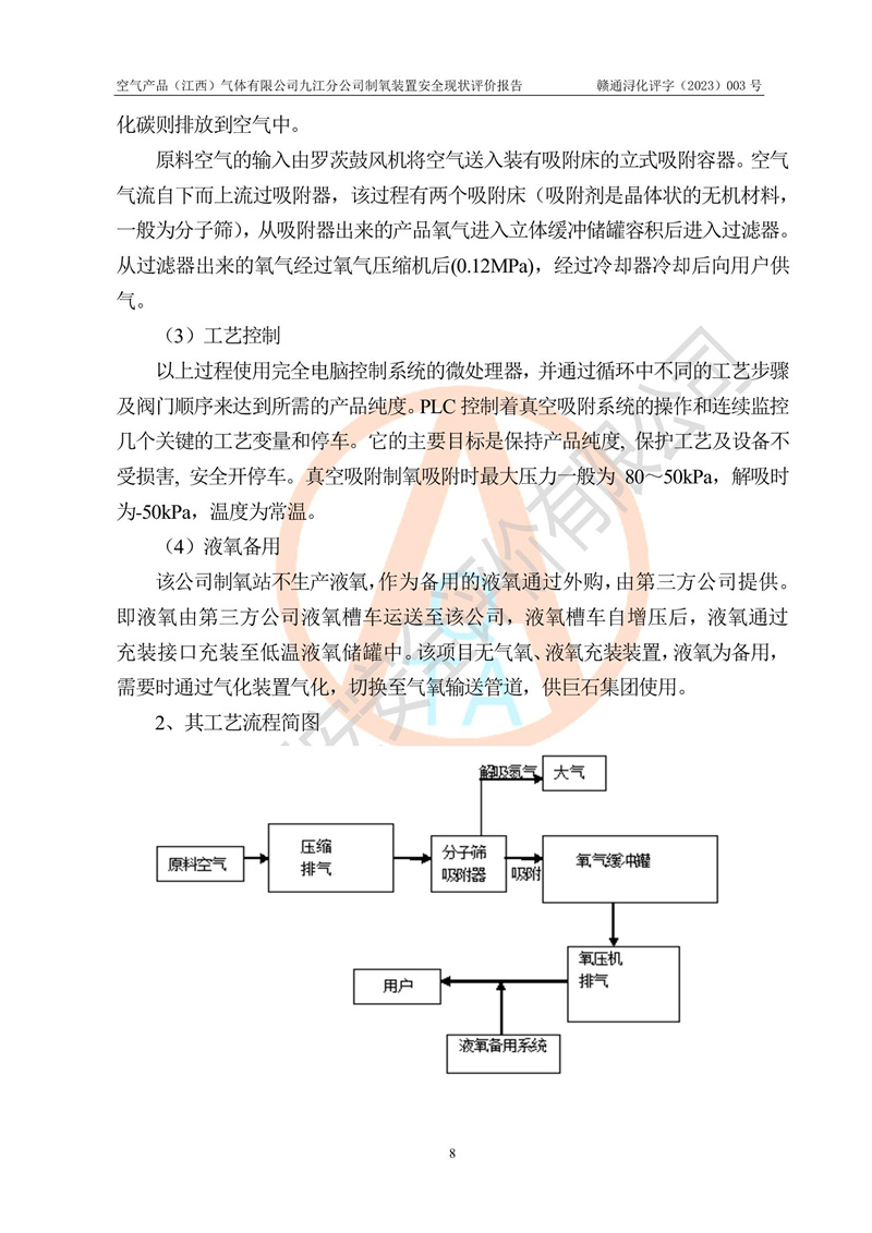 空氣產(chǎn)品(江西)氣體有限公司九江分公司制氧裝置安全現(xiàn)狀評價報告