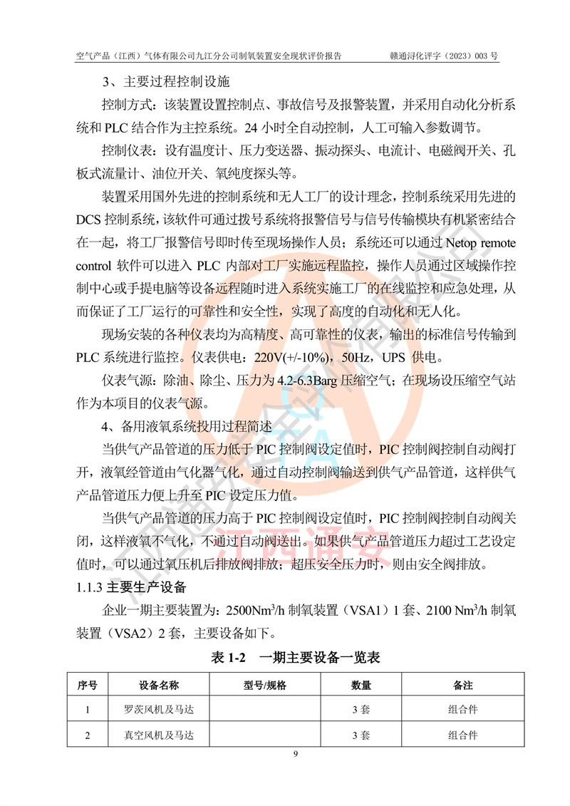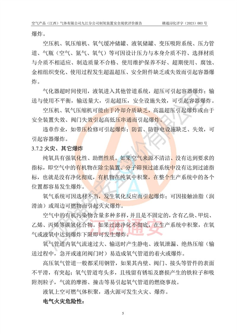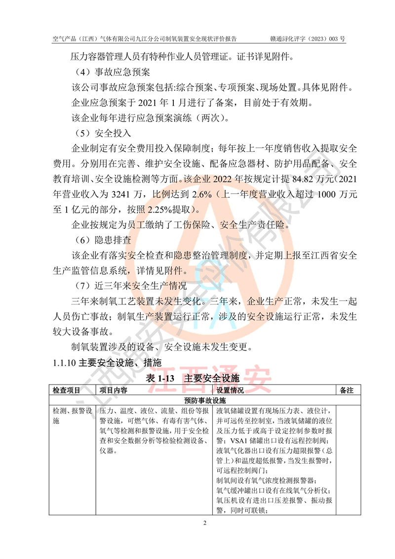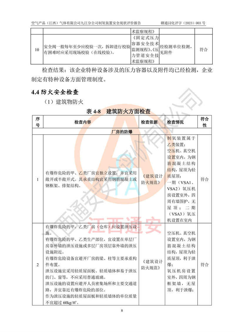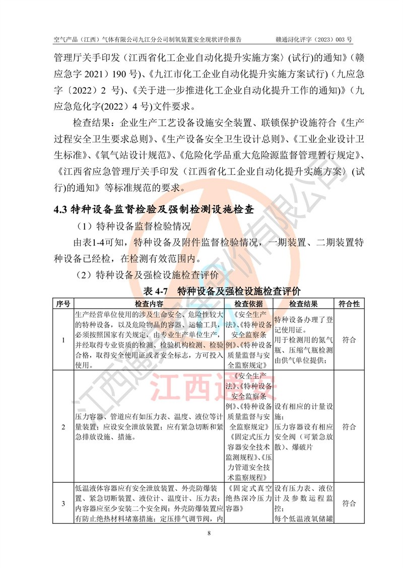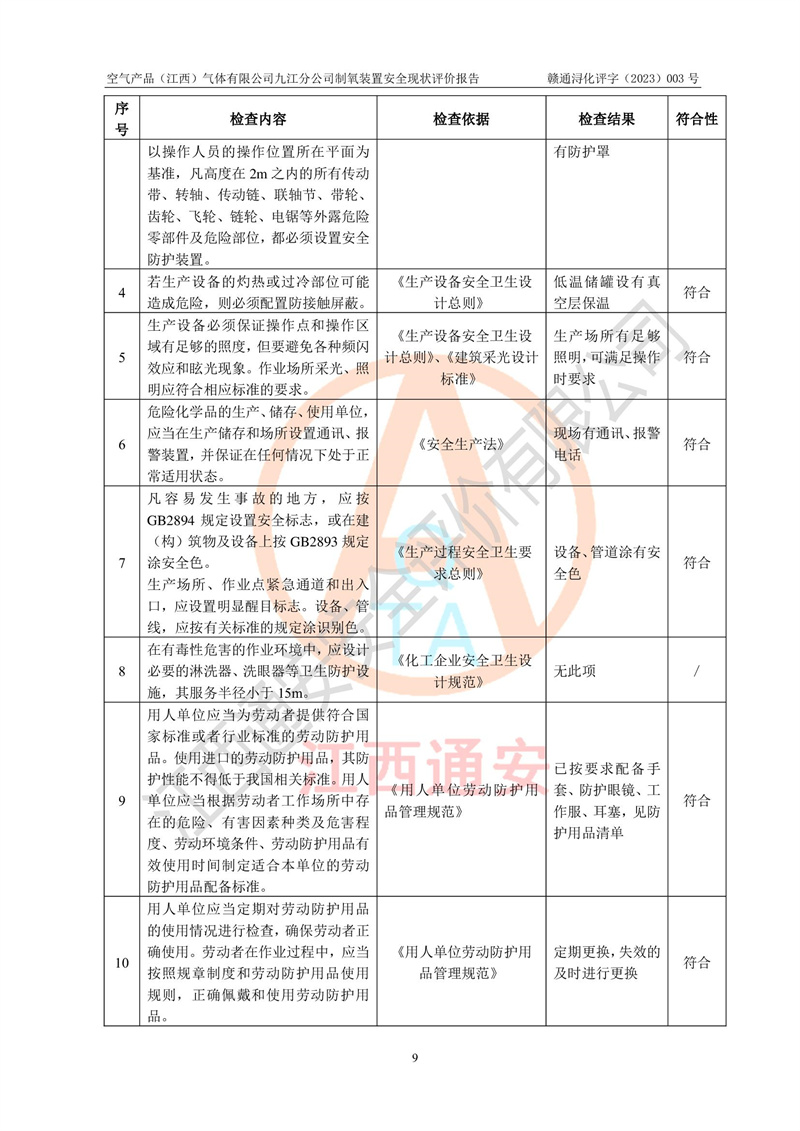 空氣產(chǎn)品(江西)氣體有限公司九江分公司制氧裝置安全現(xiàn)狀評價報告
