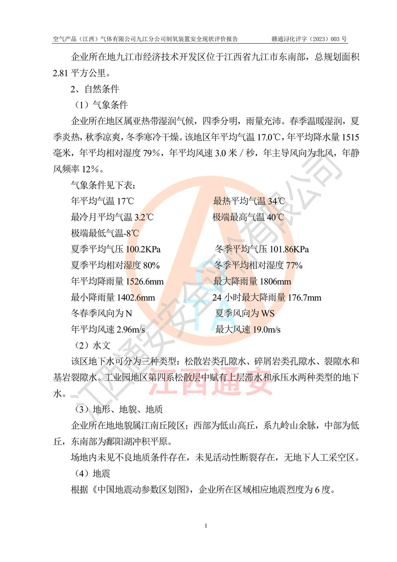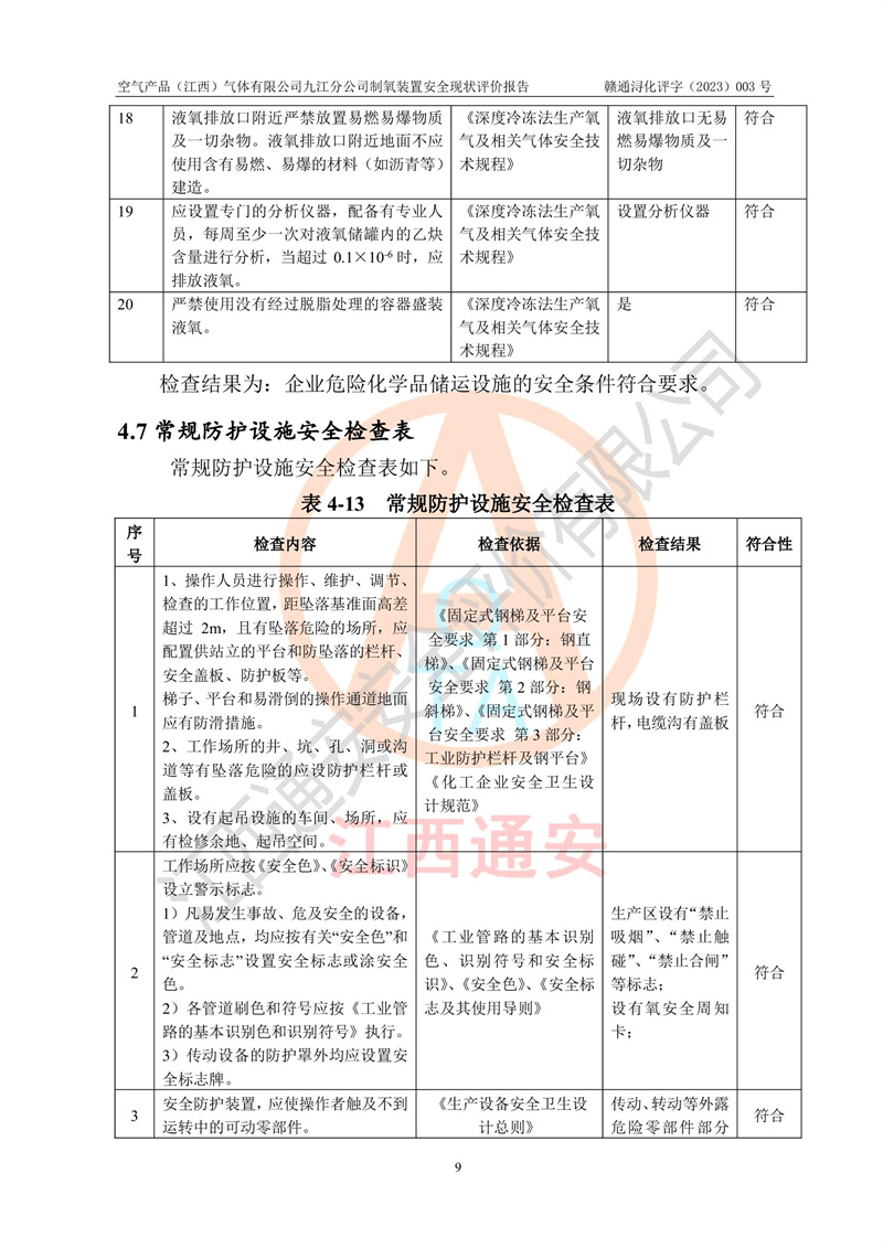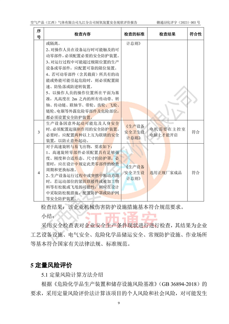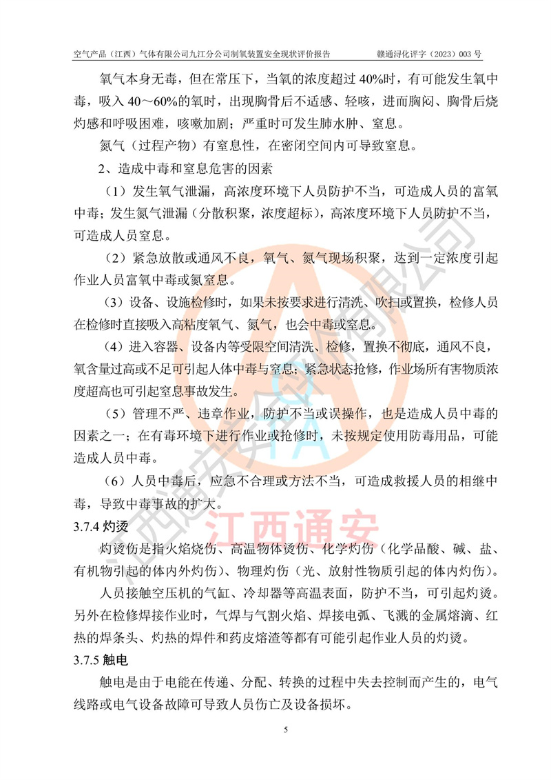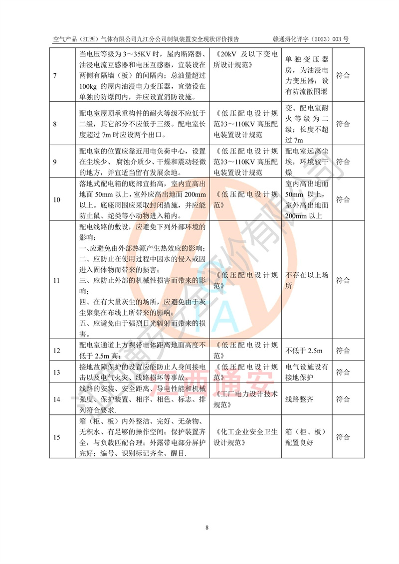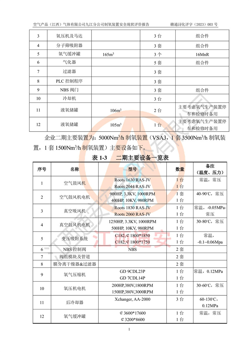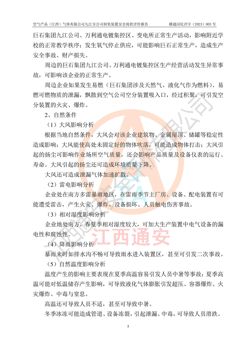 空氣產(chǎn)品(江西)氣體有限公司九江分公司制氧裝置安全現(xiàn)狀評價報告