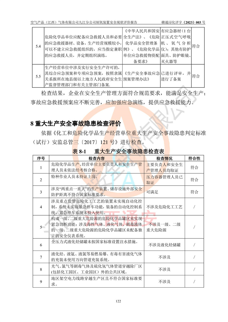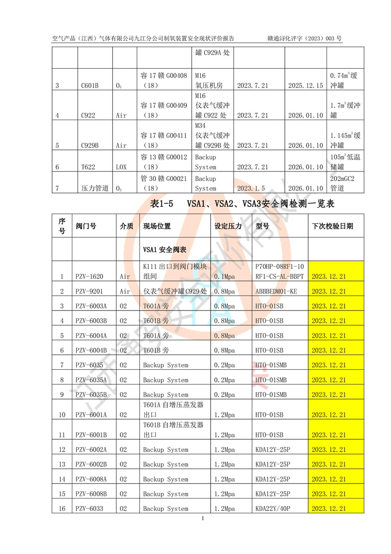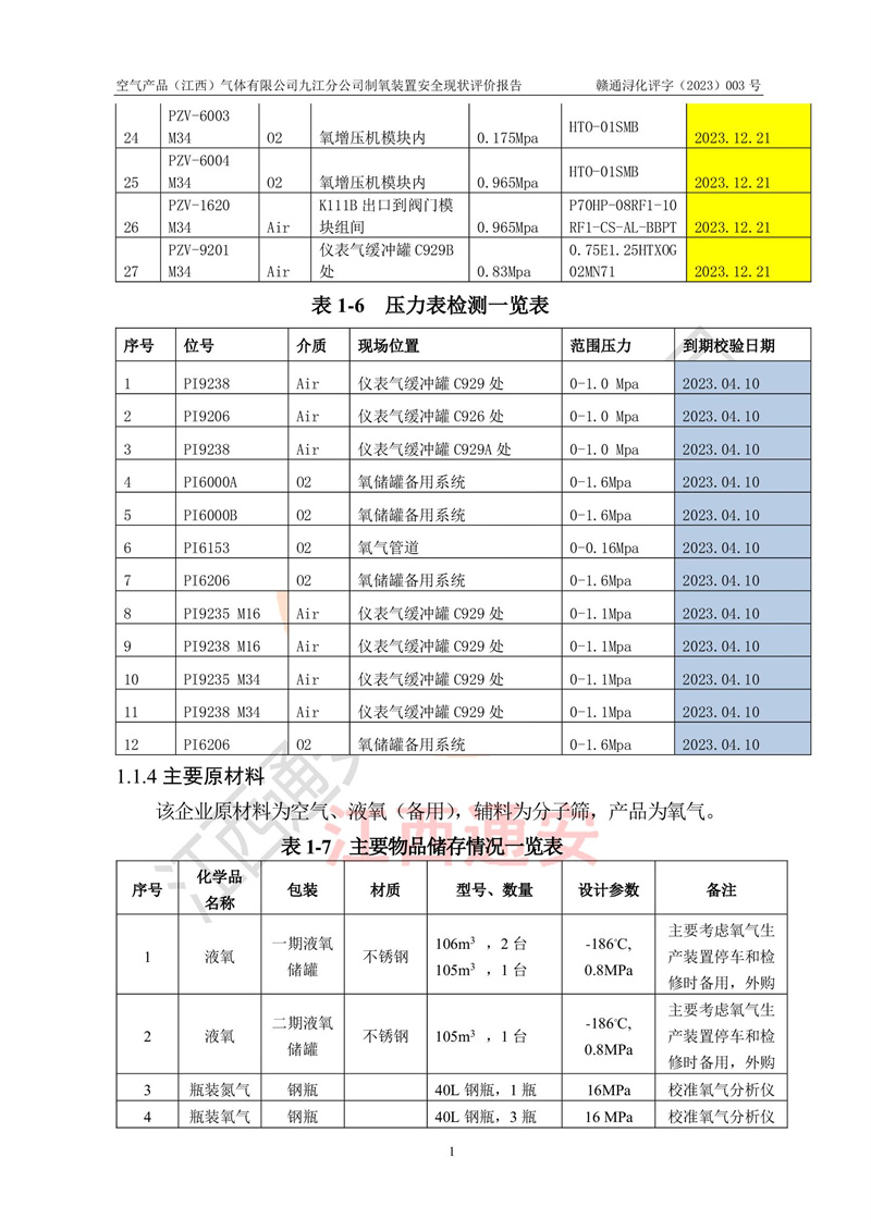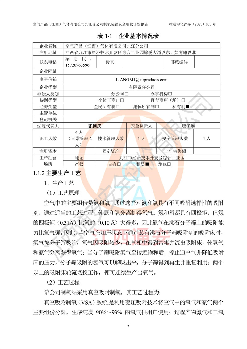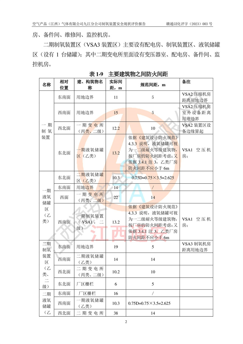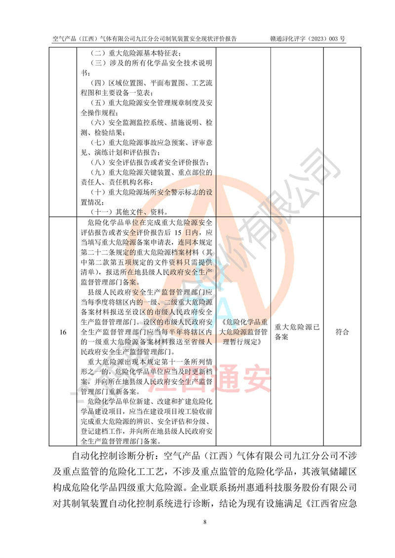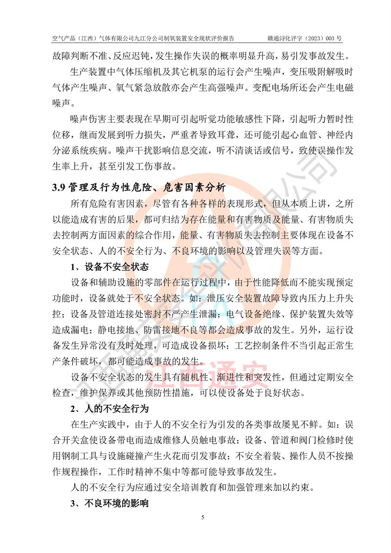 空氣產(chǎn)品(江西)氣體有限公司九江分公司制氧裝置安全現(xiàn)狀評價報告