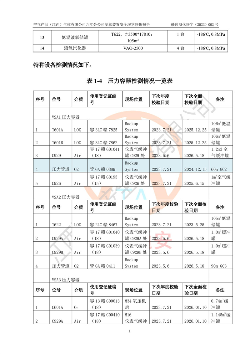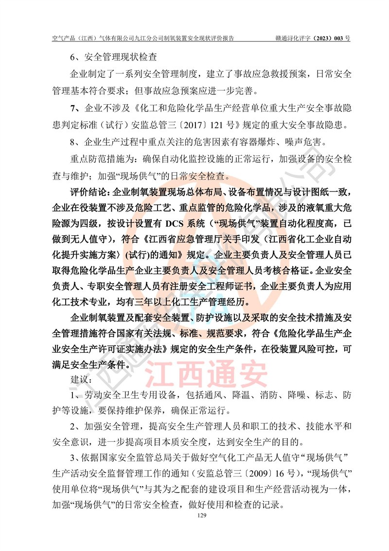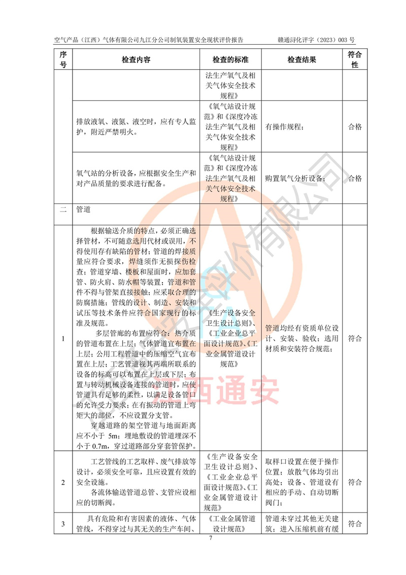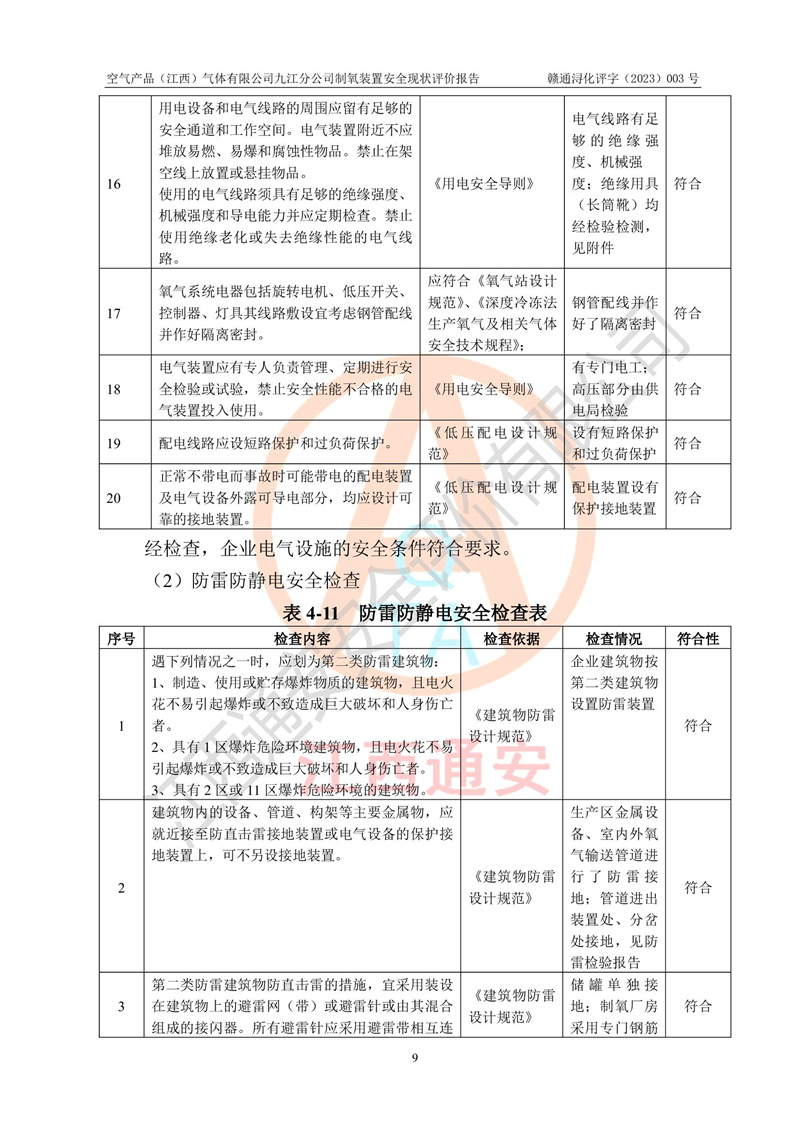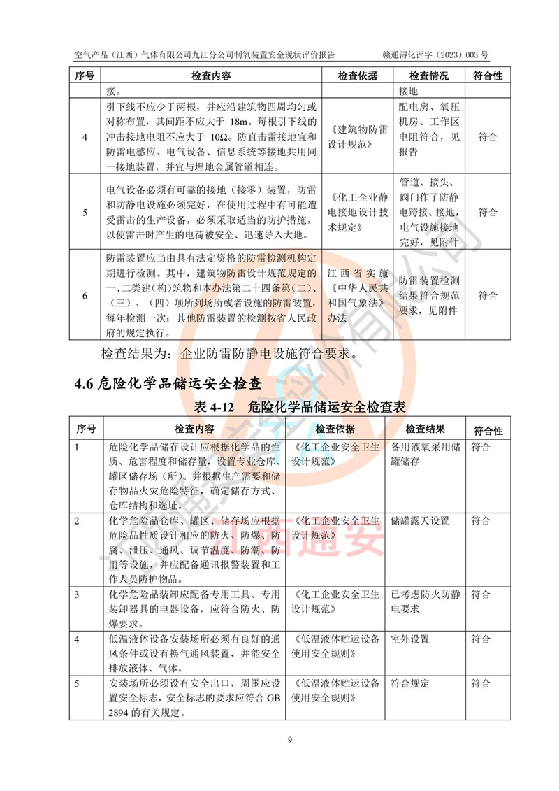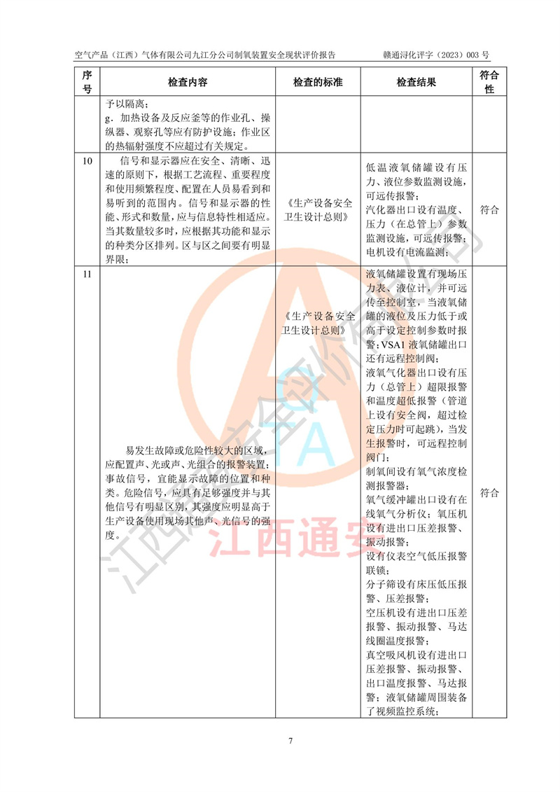空氣產(chǎn)品(江西)氣體有限公司九江分公司制氧裝置安全現(xiàn)狀評價報告