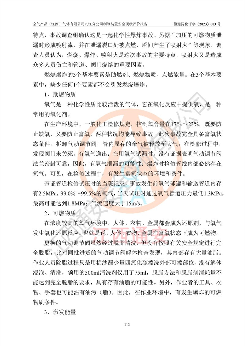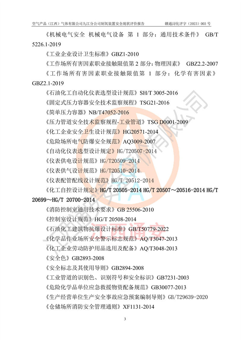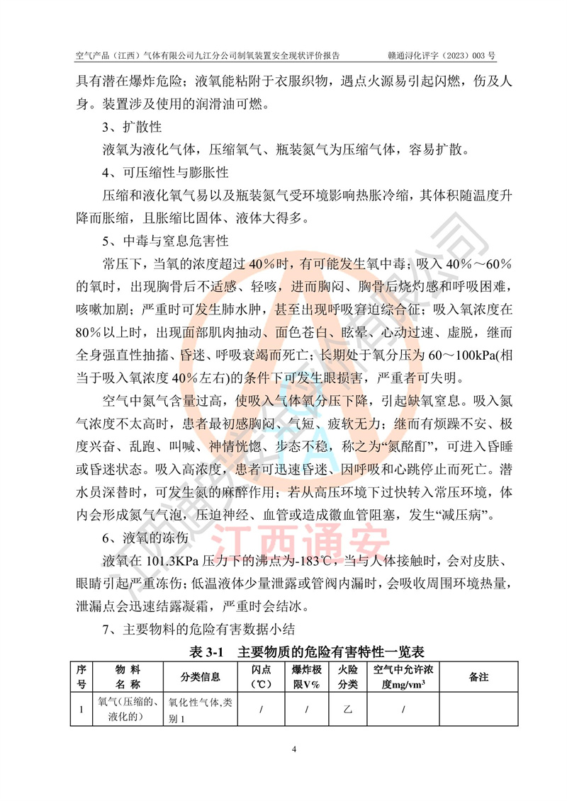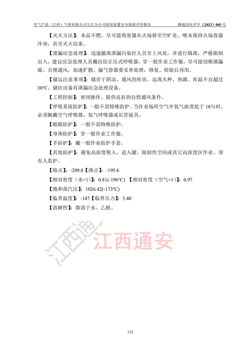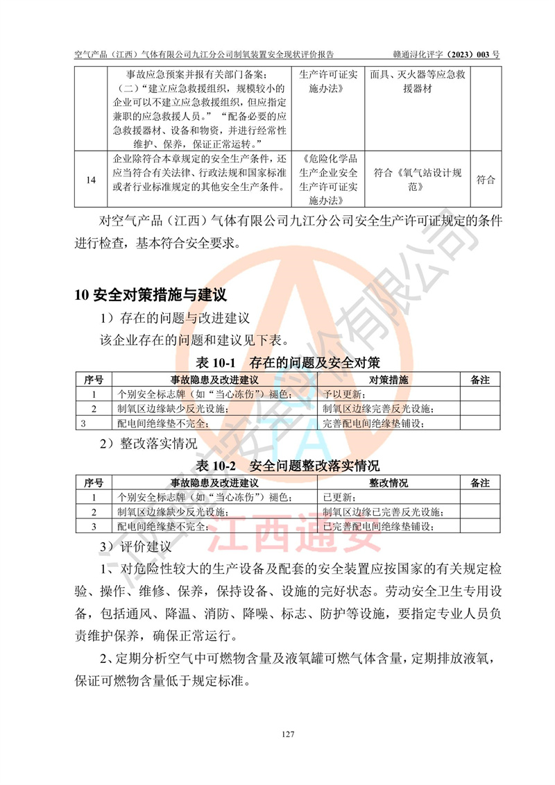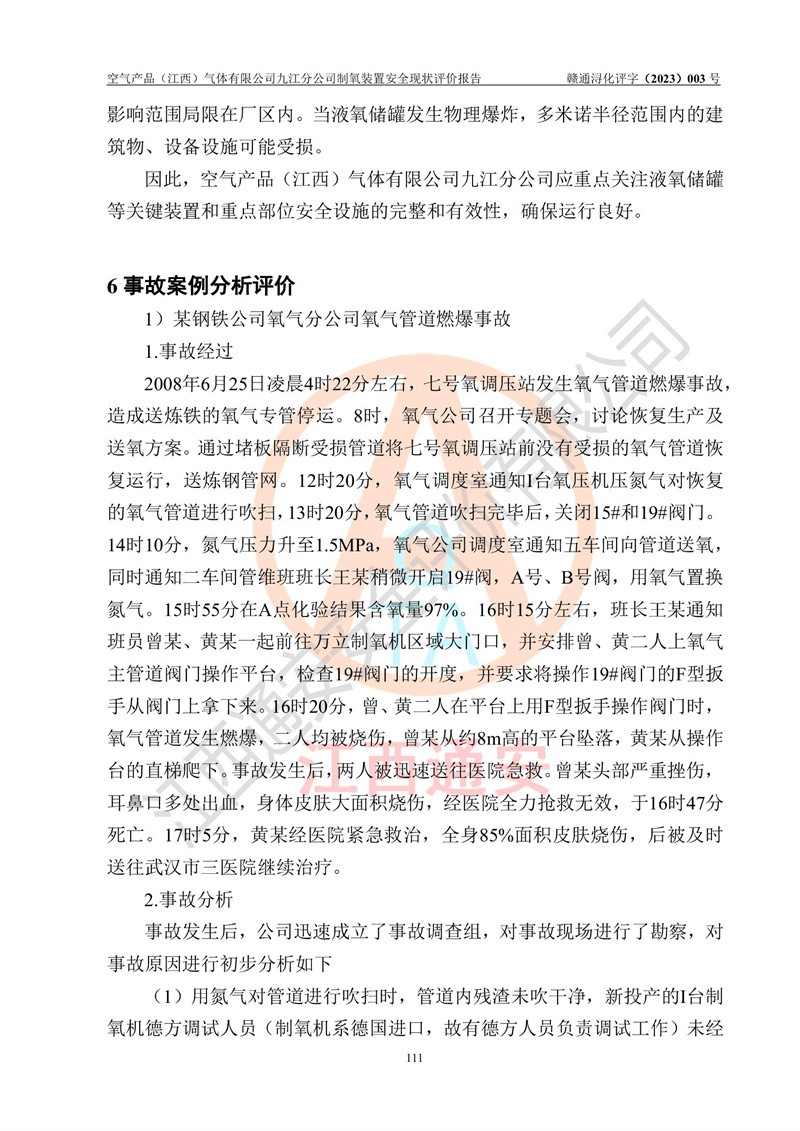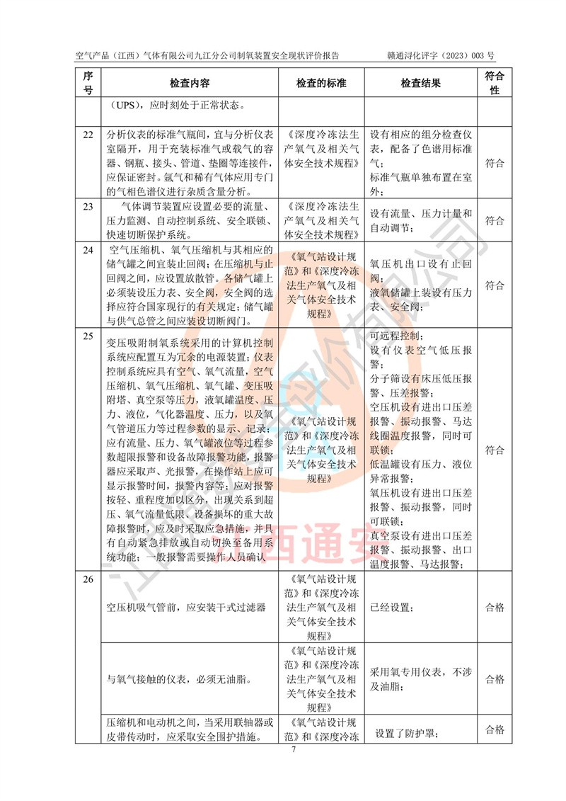 空氣產(chǎn)品(江西)氣體有限公司九江分公司制氧裝置安全現(xiàn)狀評價報告
