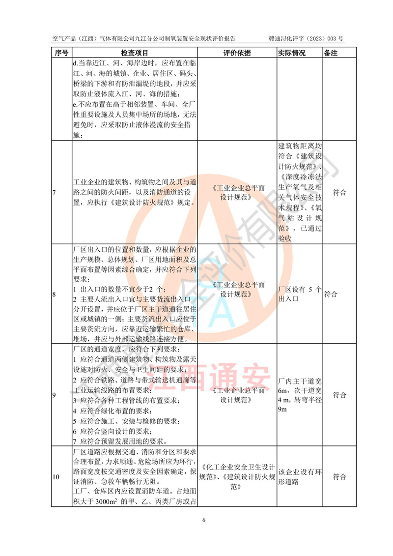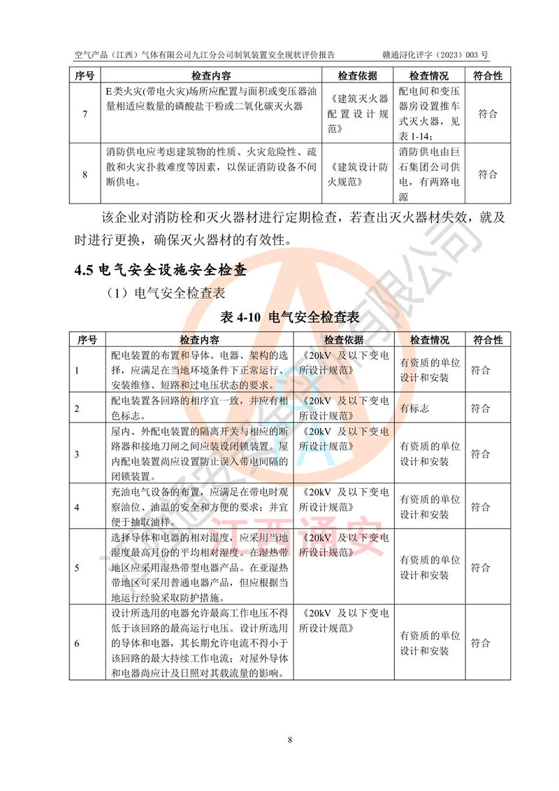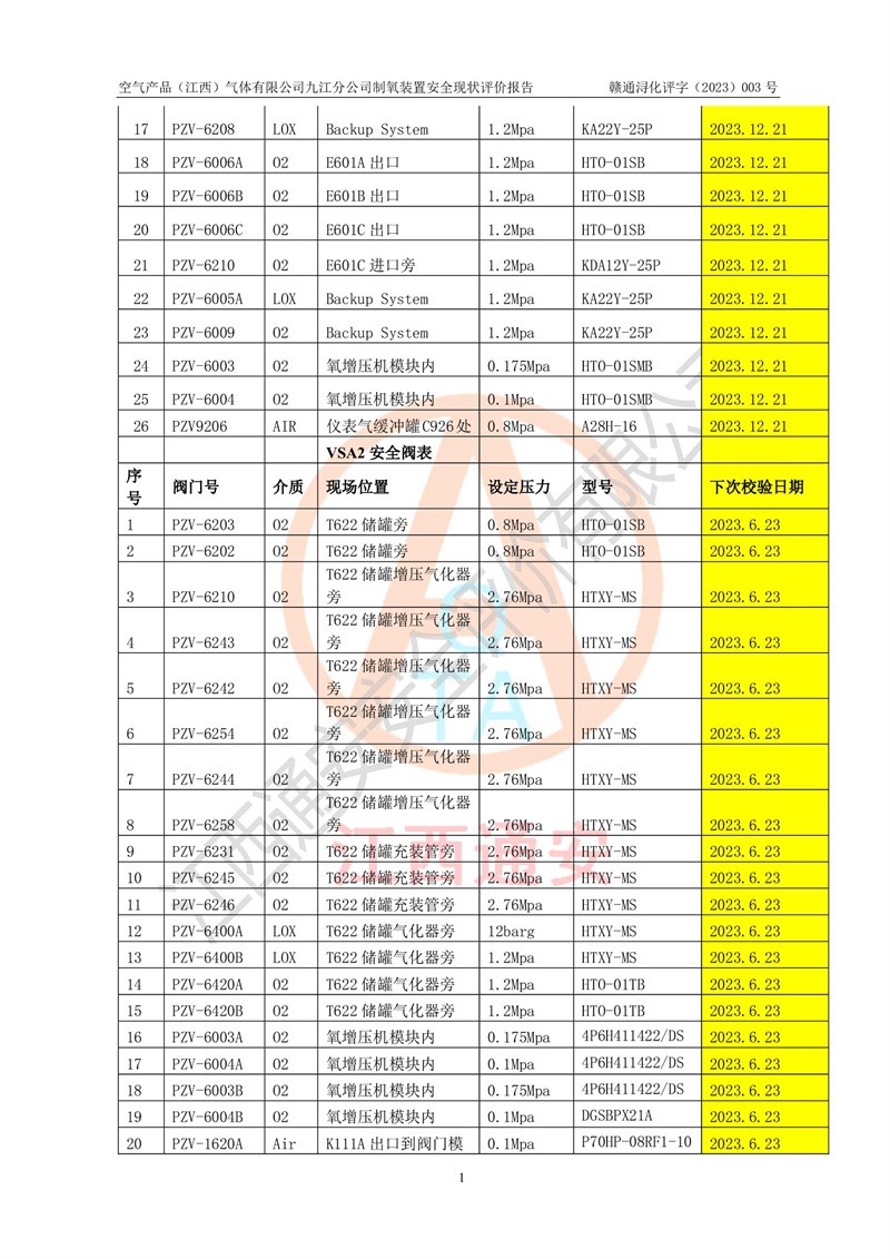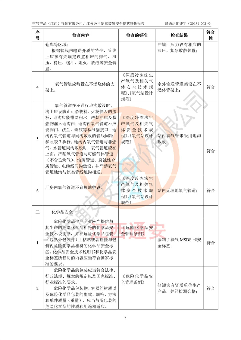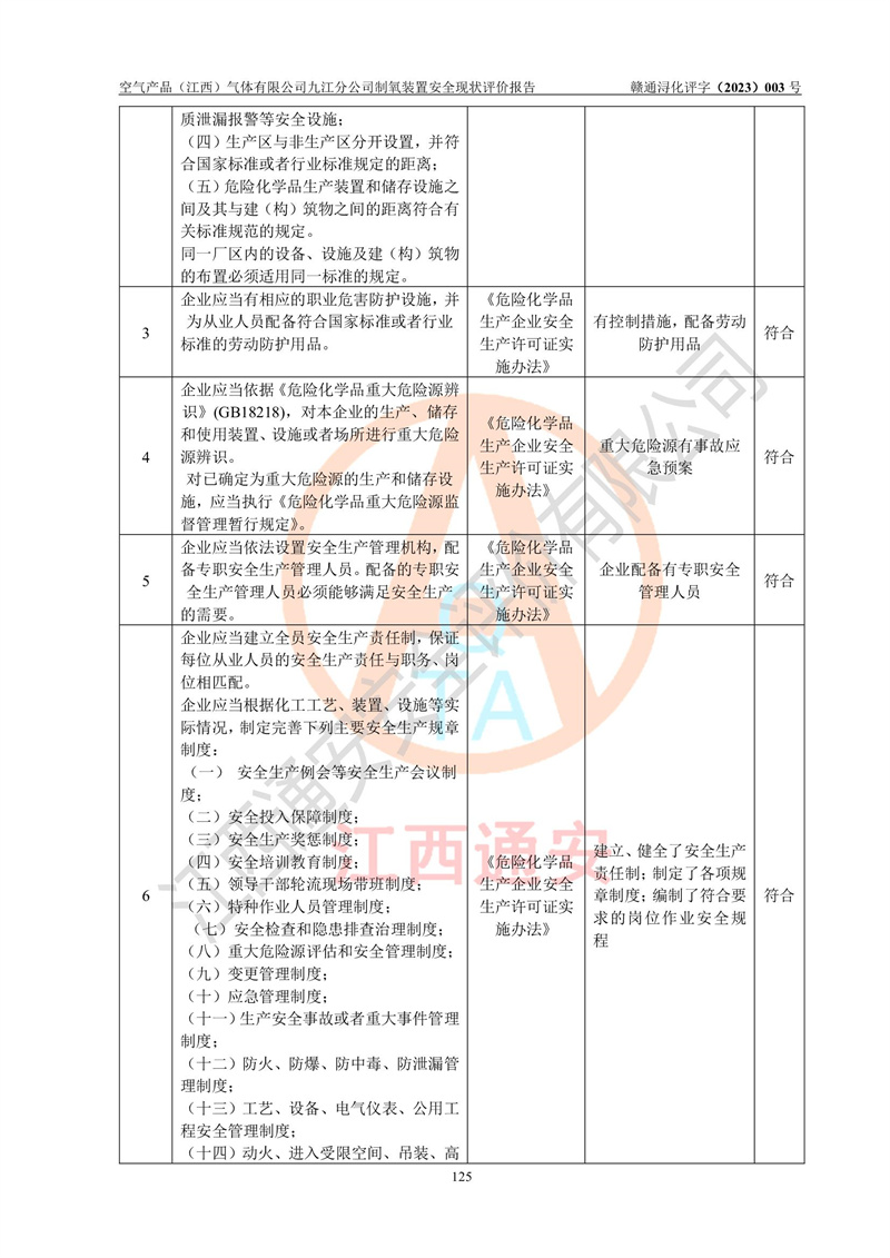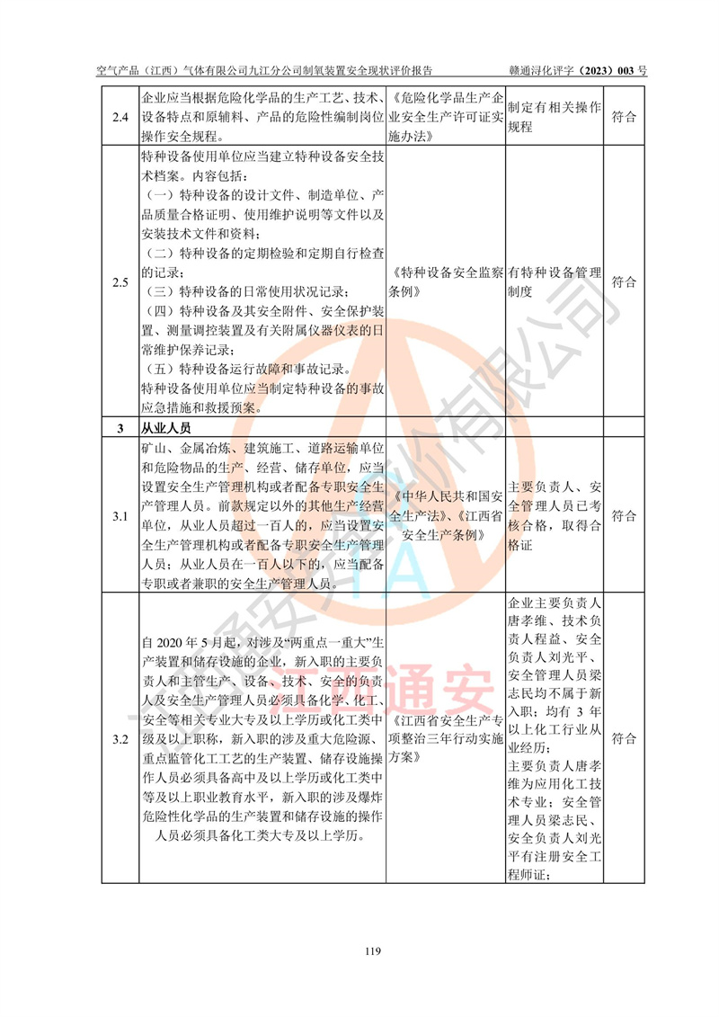 空氣產(chǎn)品(江西)氣體有限公司九江分公司制氧裝置安全現(xiàn)狀評價報告