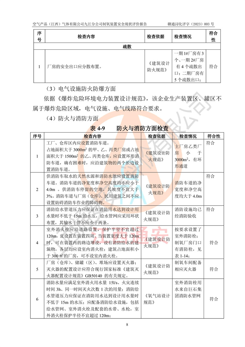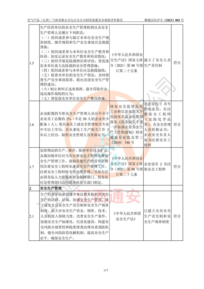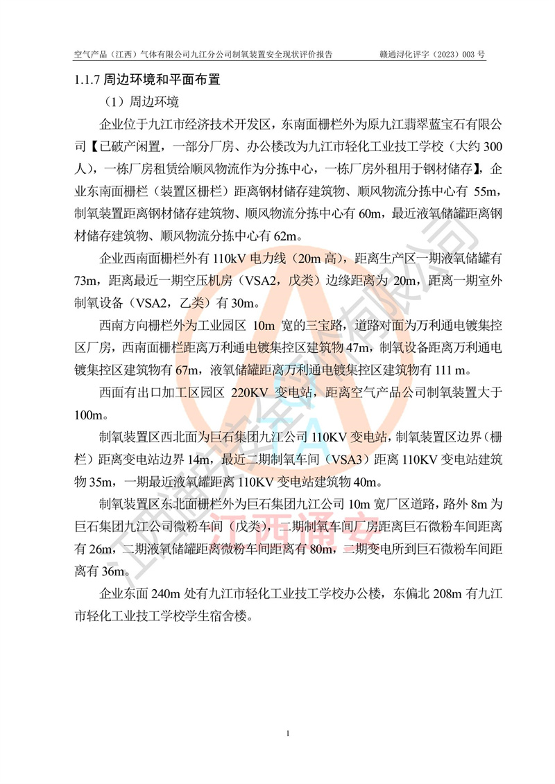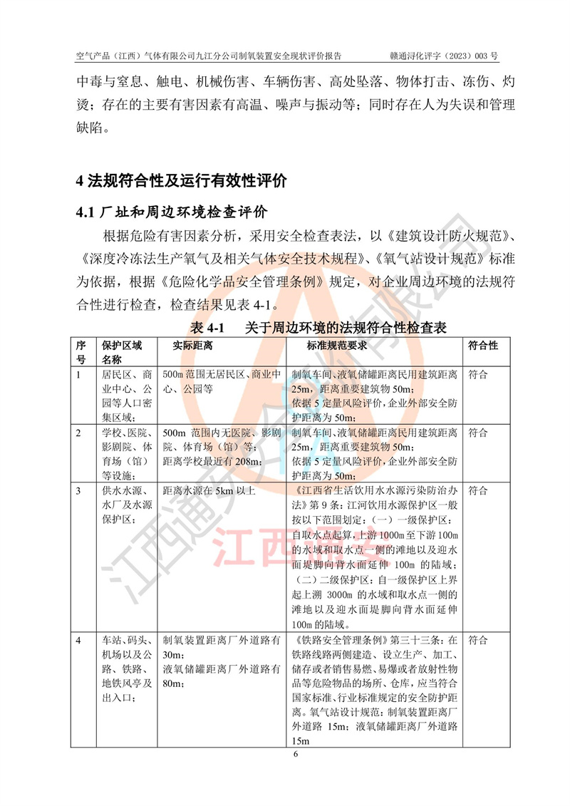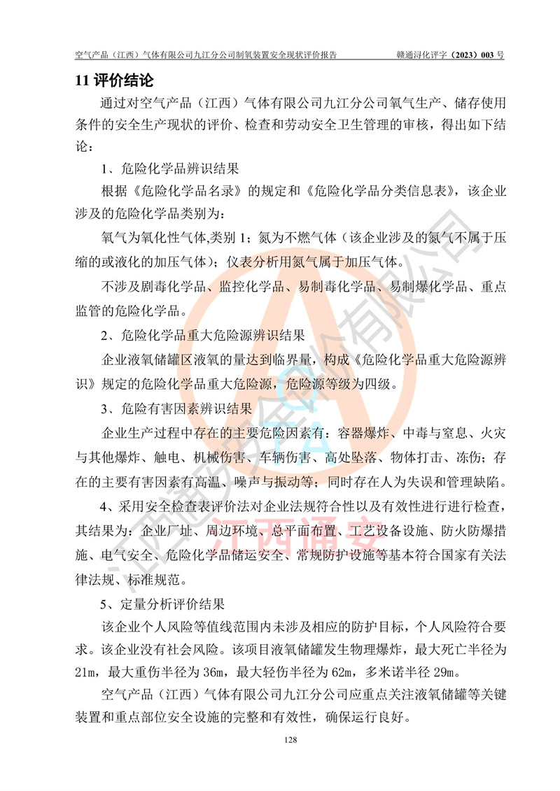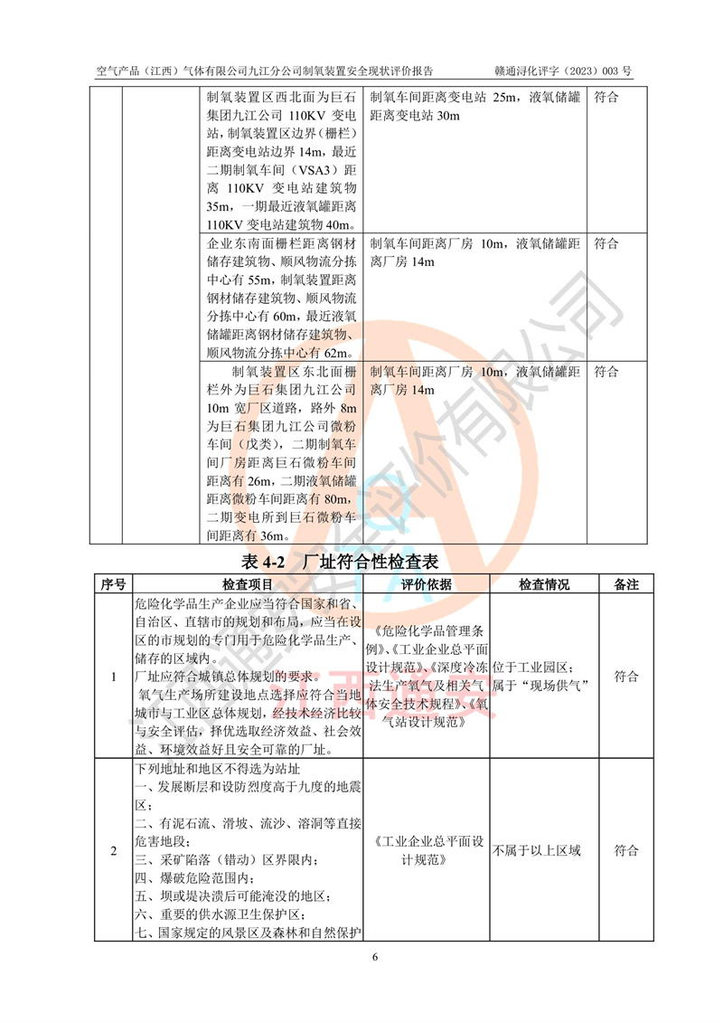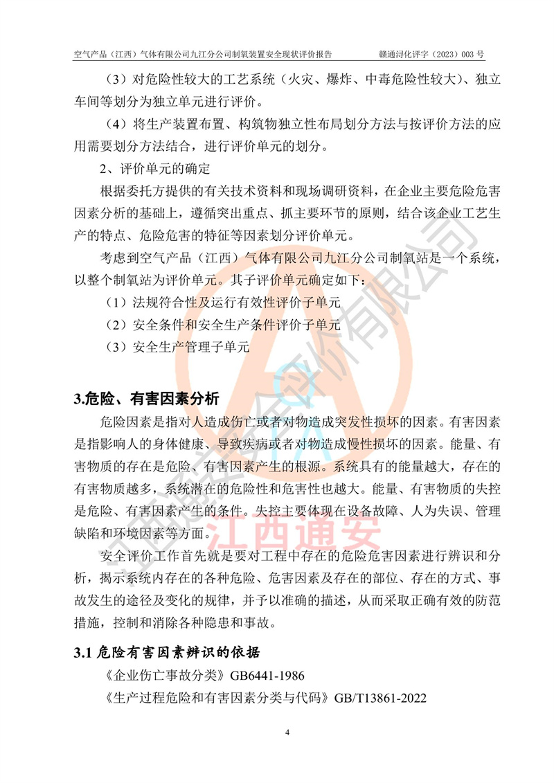空氣產(chǎn)品(江西)氣體有限公司九江分公司制氧裝置安全現(xiàn)狀評價報告