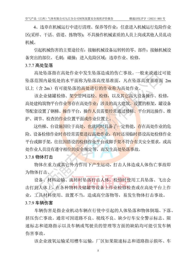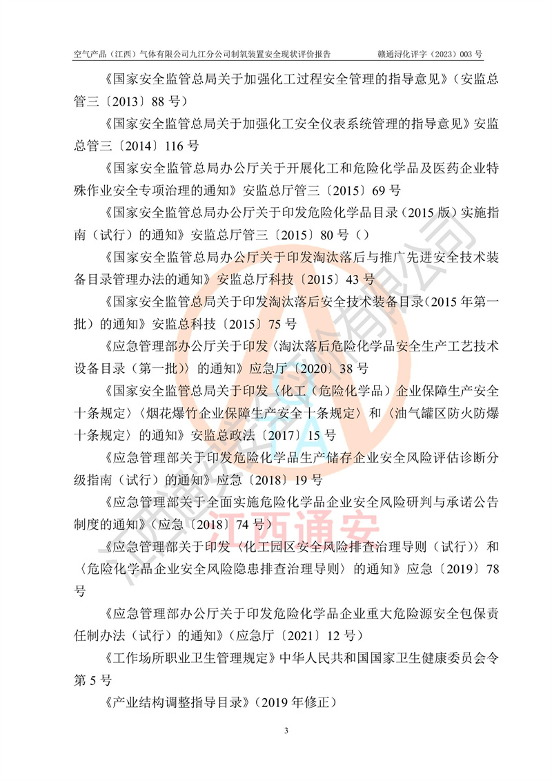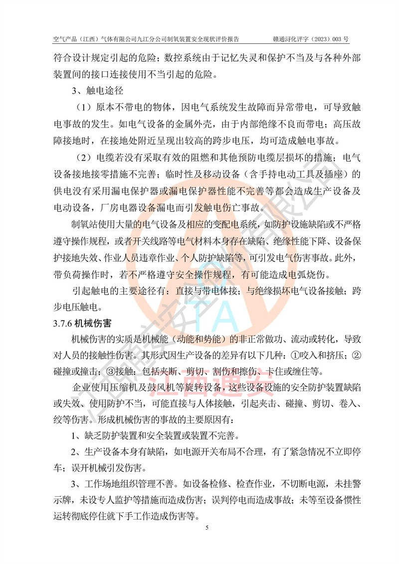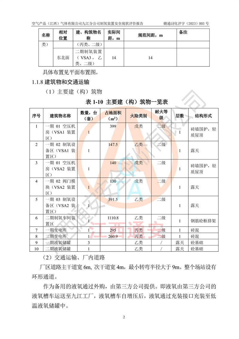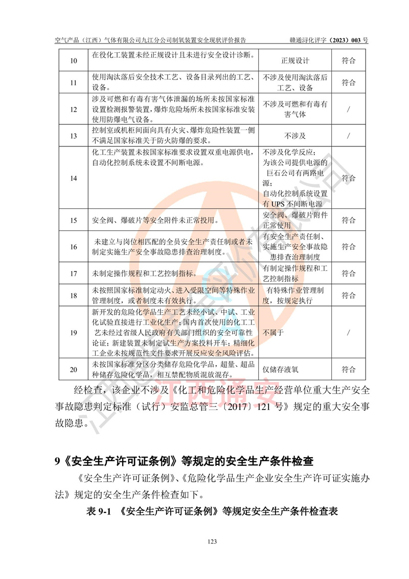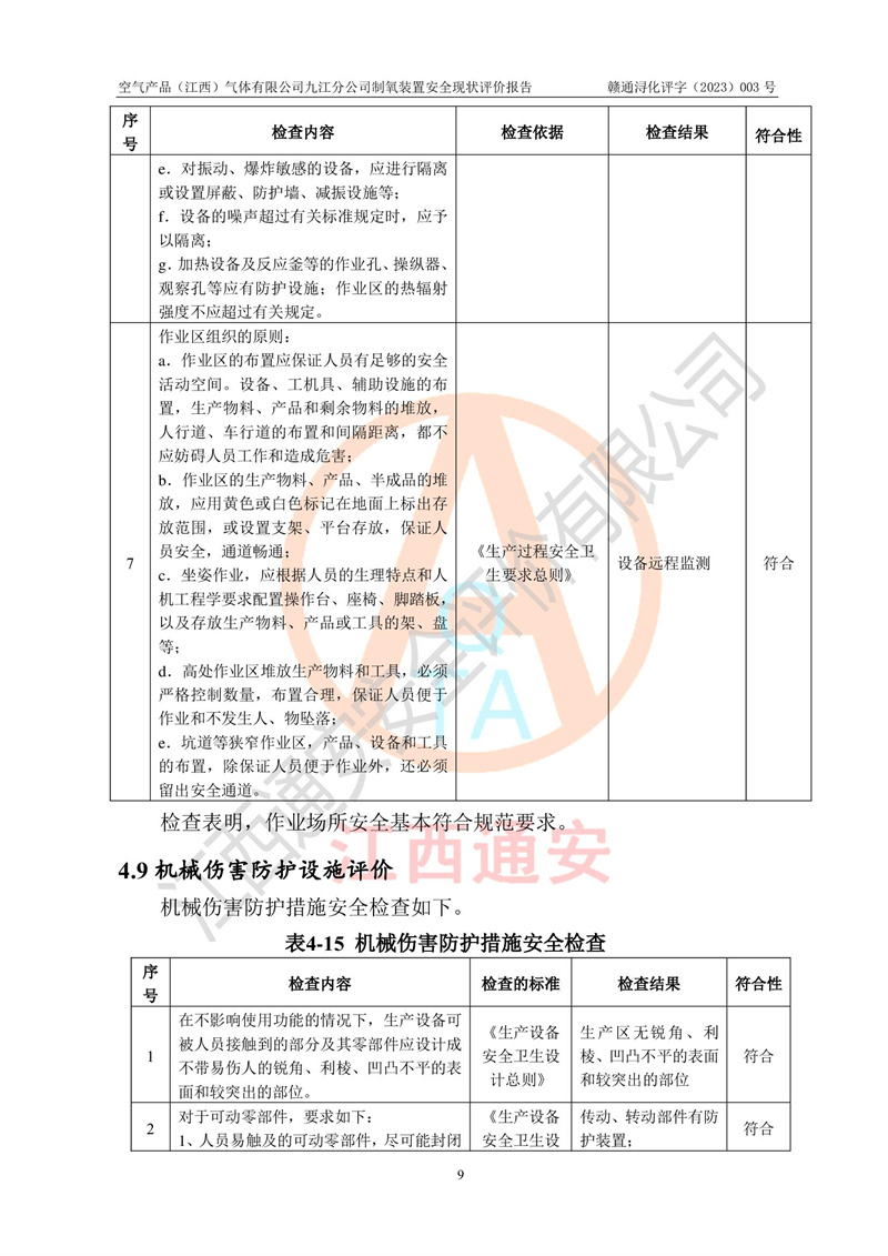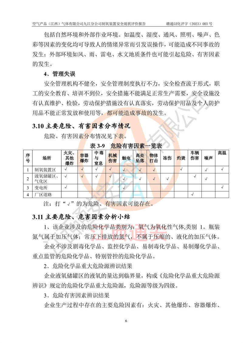 空氣產(chǎn)品(江西)氣體有限公司九江分公司制氧裝置安全現(xiàn)狀評價報告