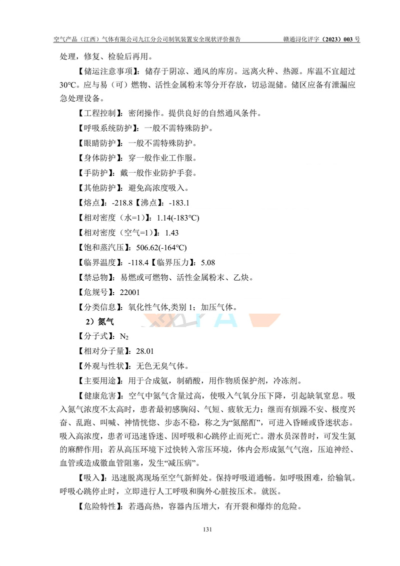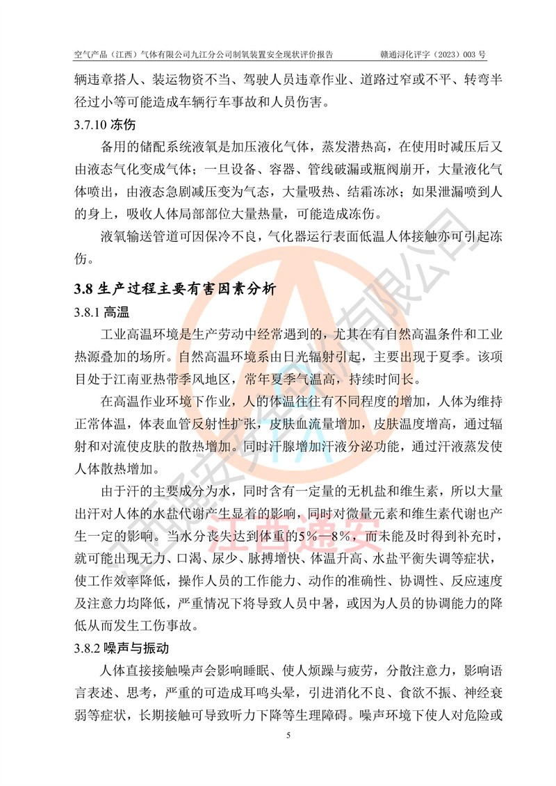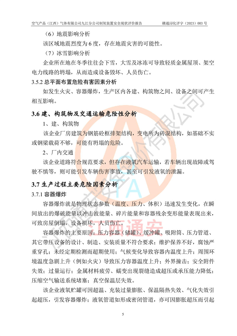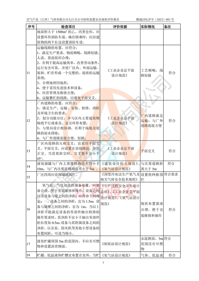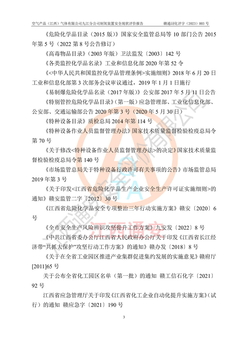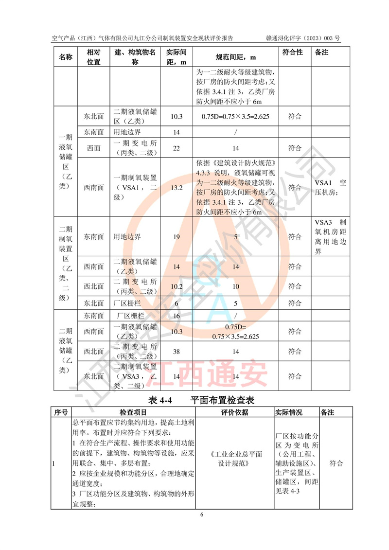 空氣產(chǎn)品(江西)氣體有限公司九江分公司制氧裝置安全現(xiàn)狀評價報告