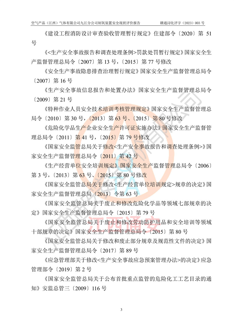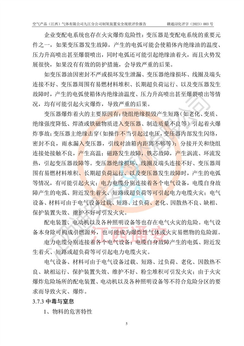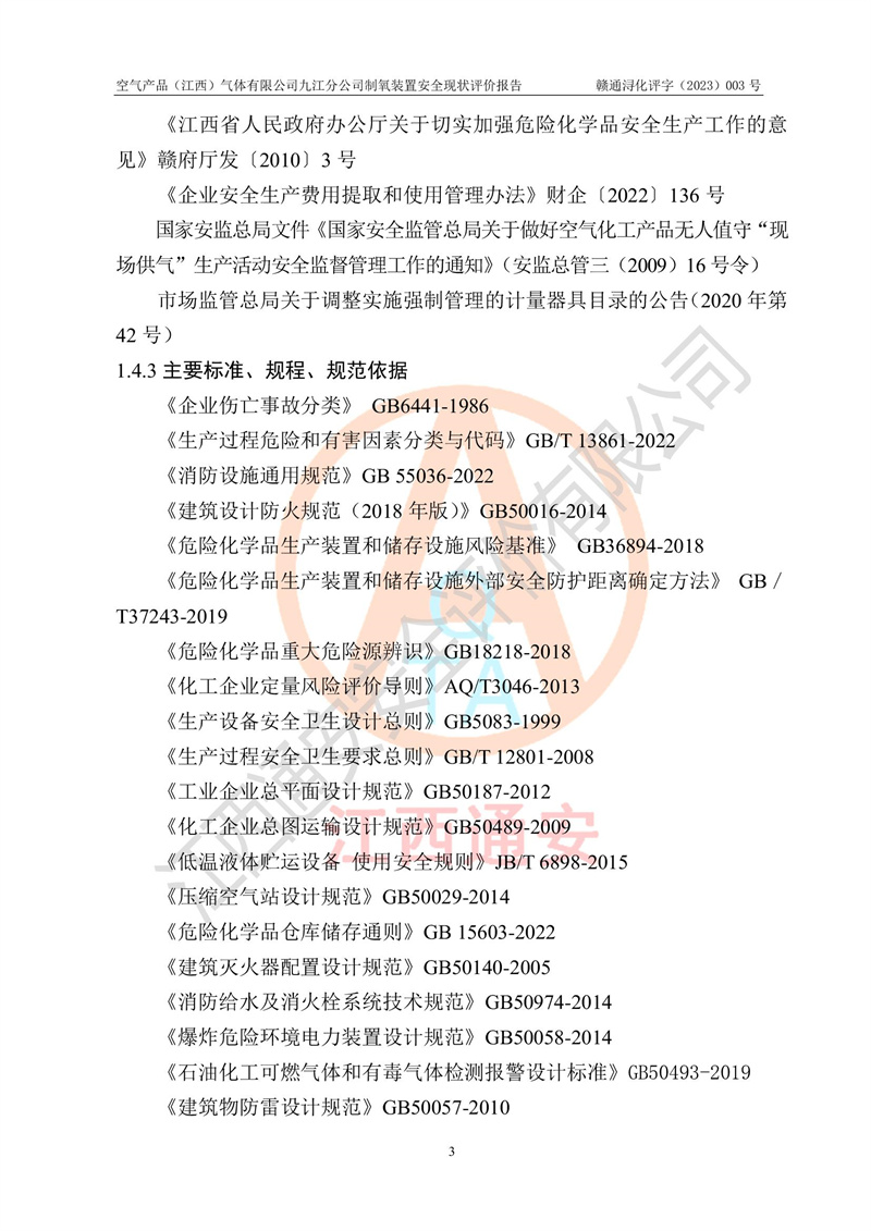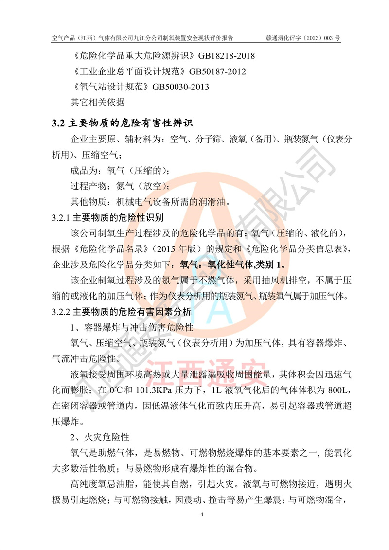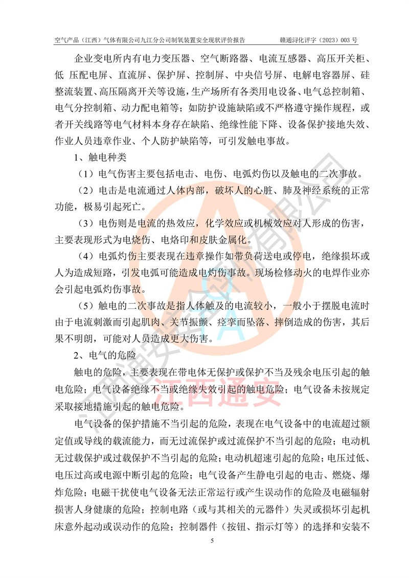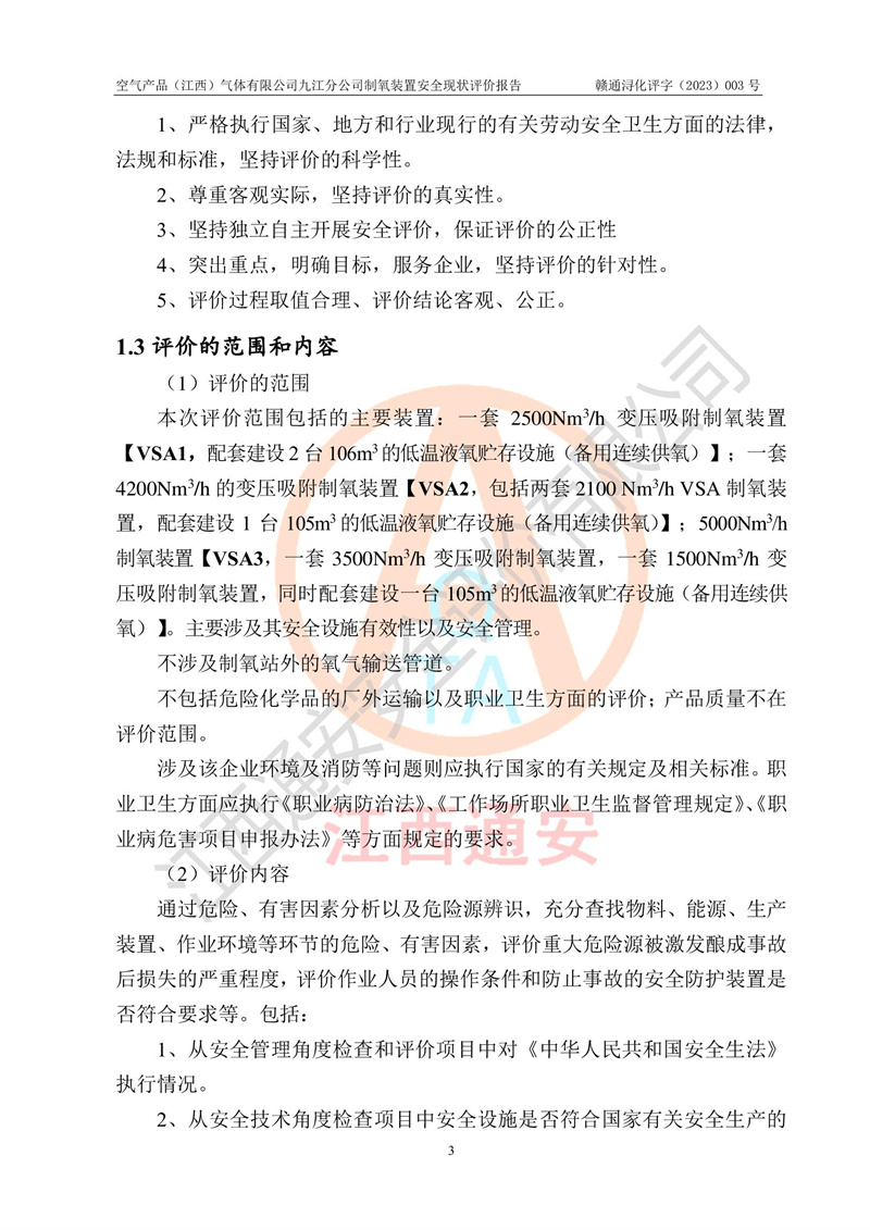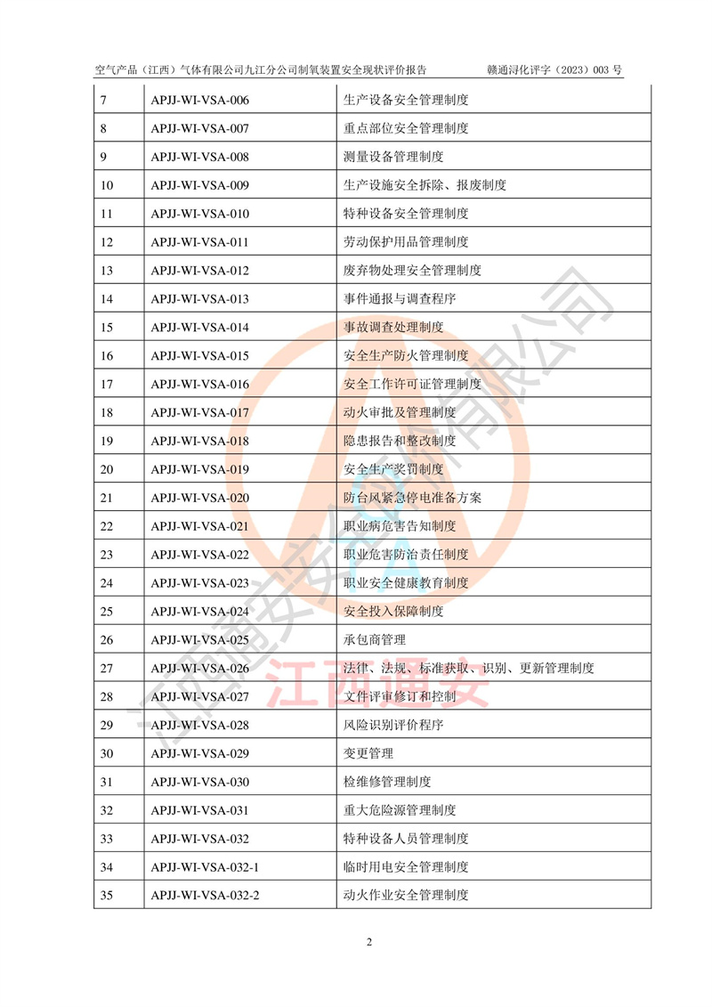 空氣產(chǎn)品(江西)氣體有限公司九江分公司制氧裝置安全現(xiàn)狀評價報告