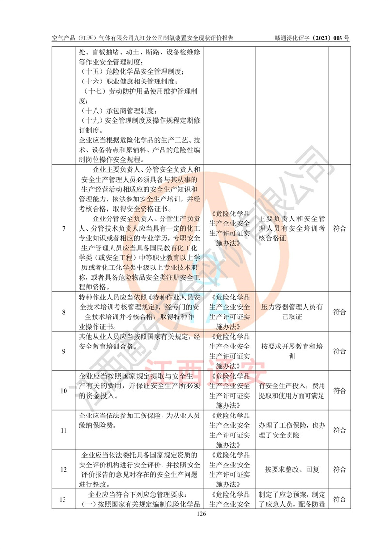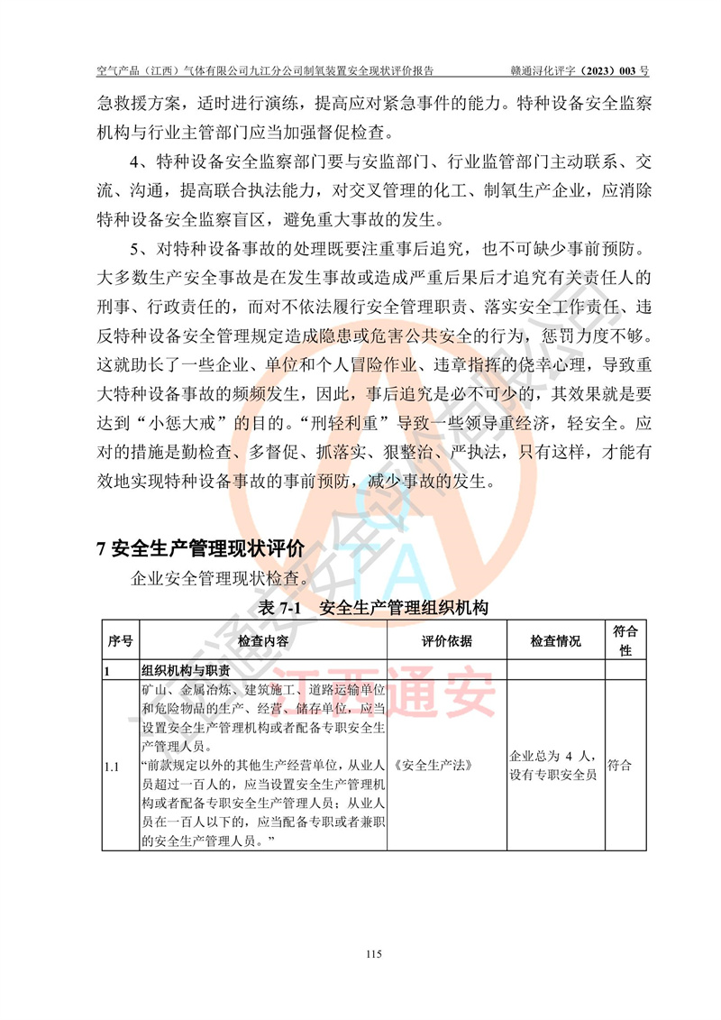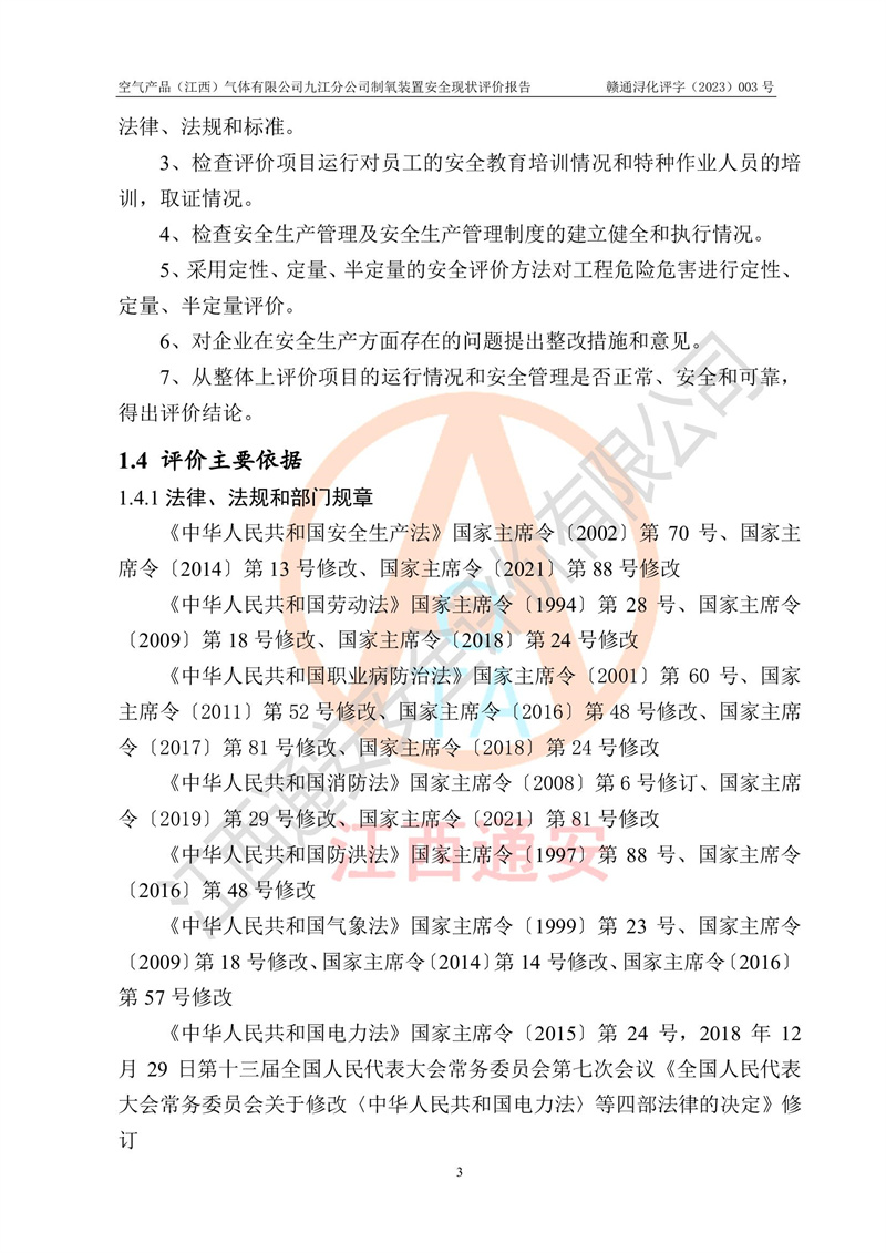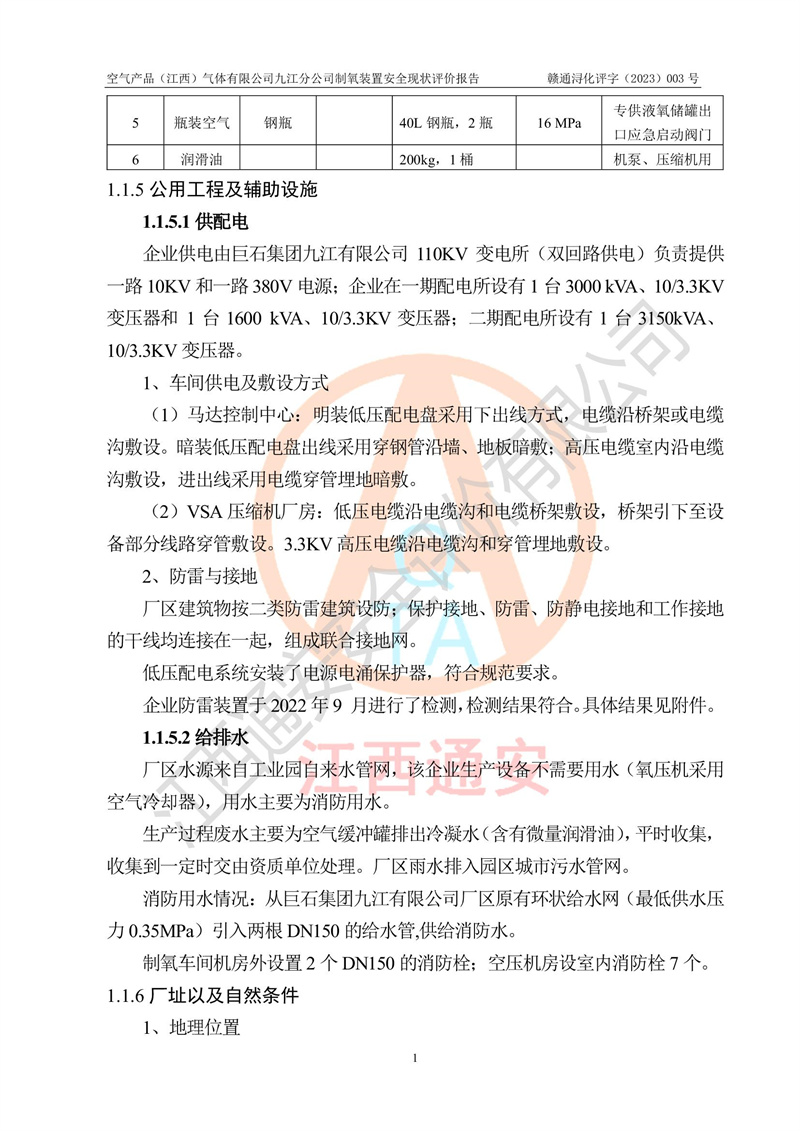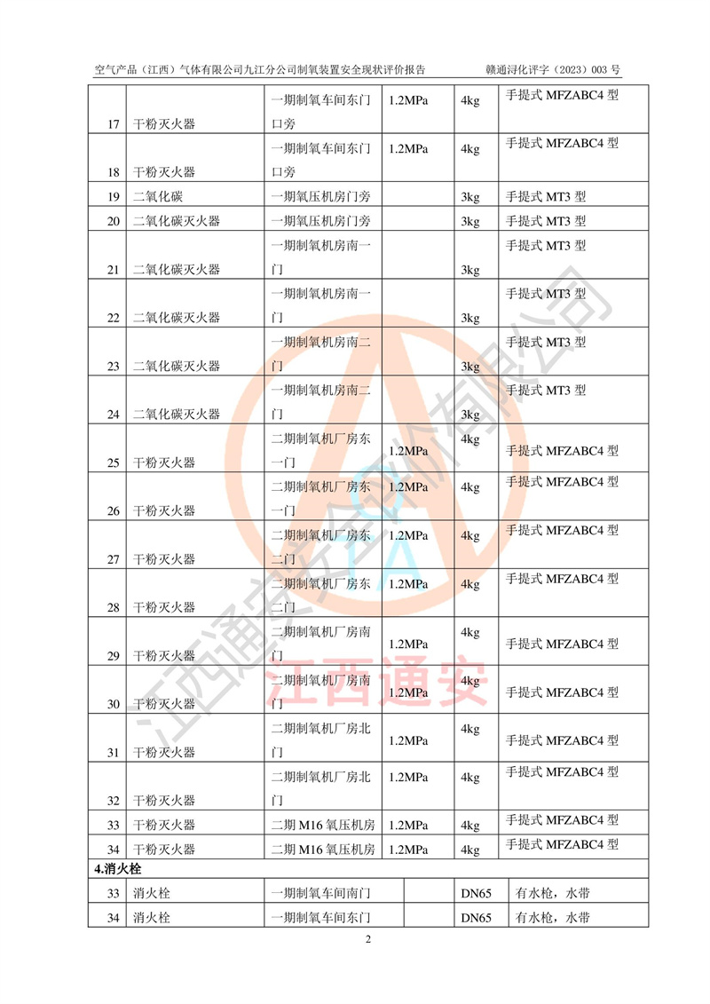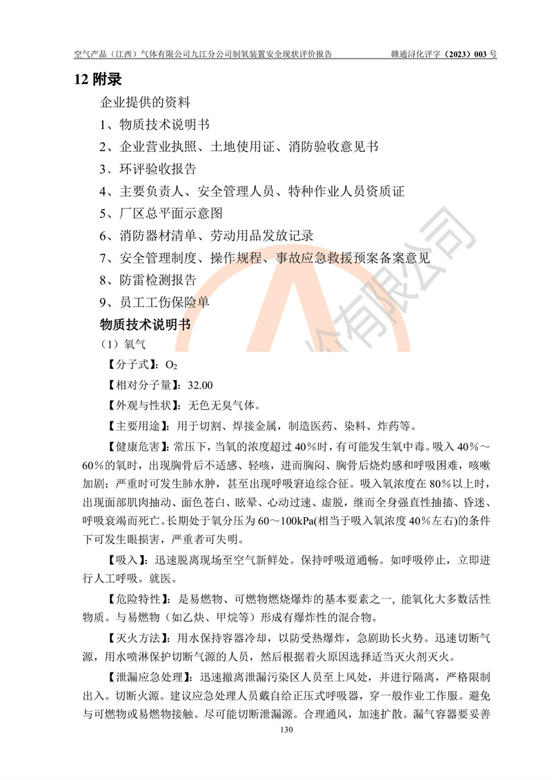 空氣產(chǎn)品(江西)氣體有限公司九江分公司制氧裝置安全現(xiàn)狀評價報告