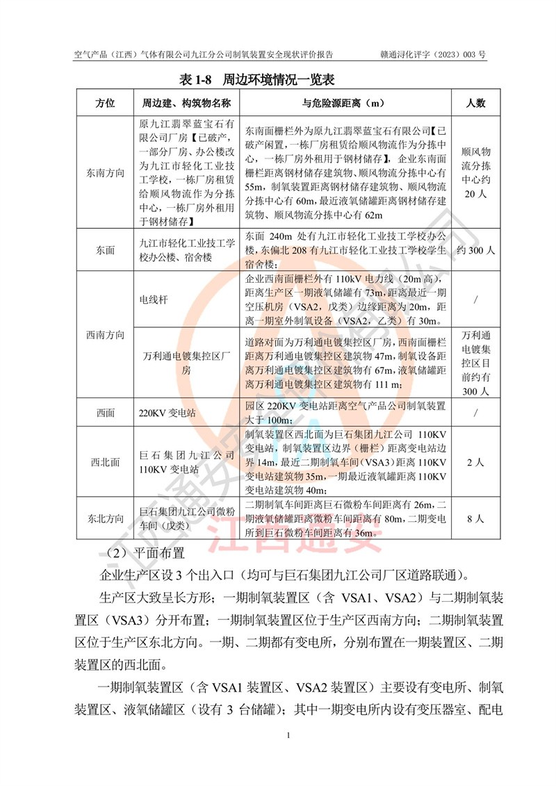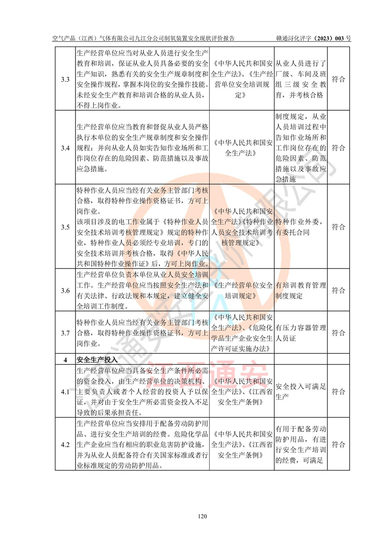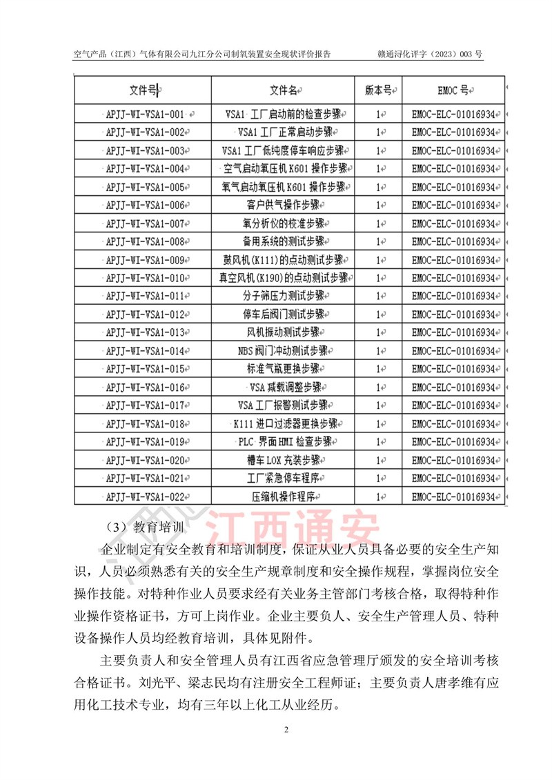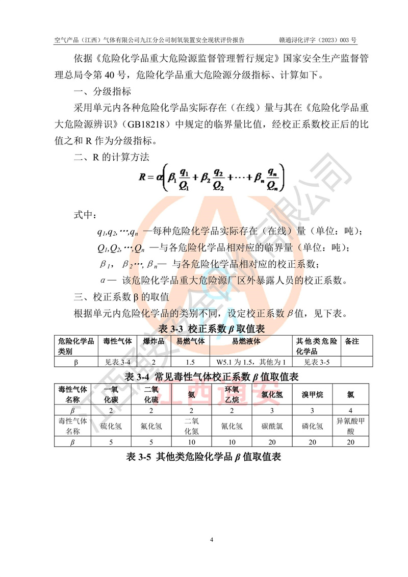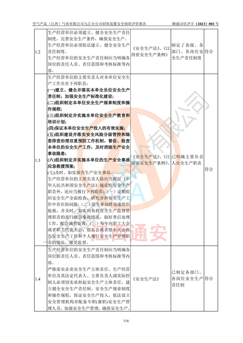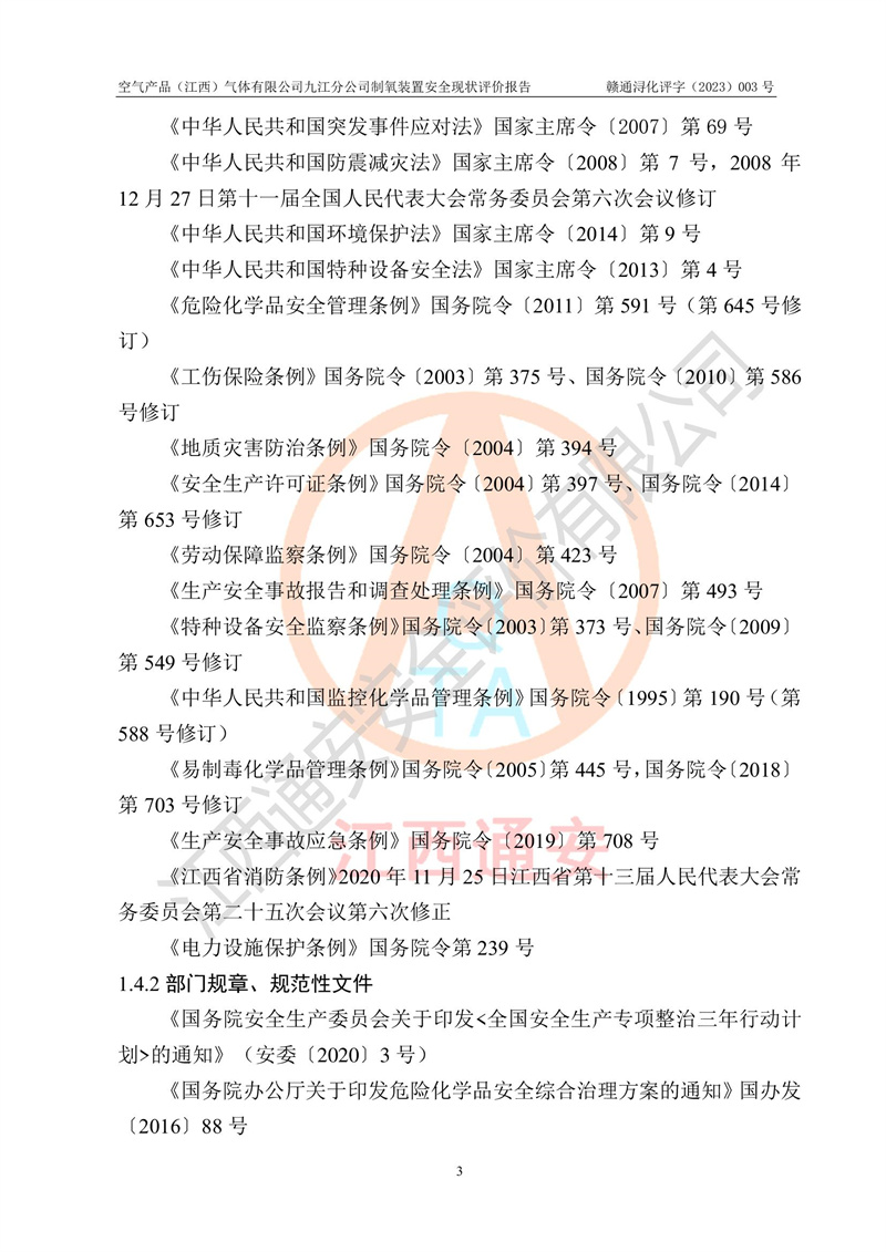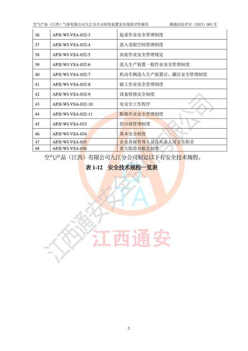 空氣產(chǎn)品(江西)氣體有限公司九江分公司制氧裝置安全現(xiàn)狀評價報告