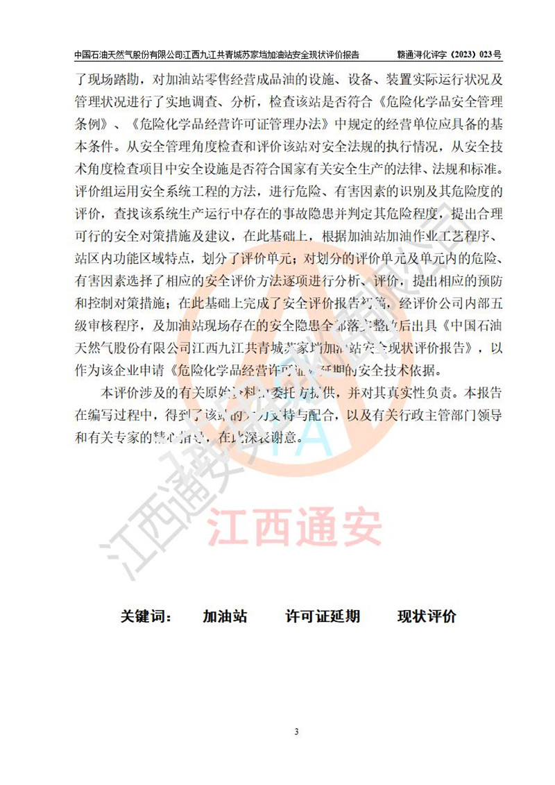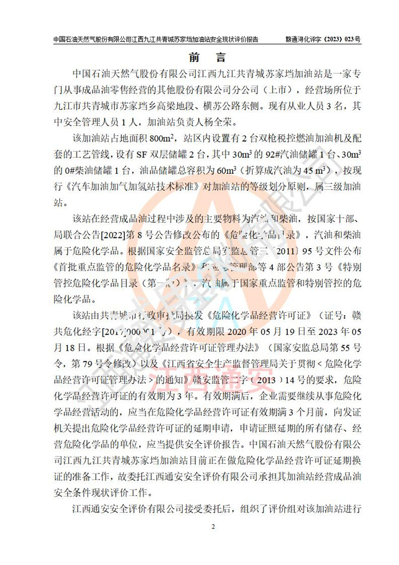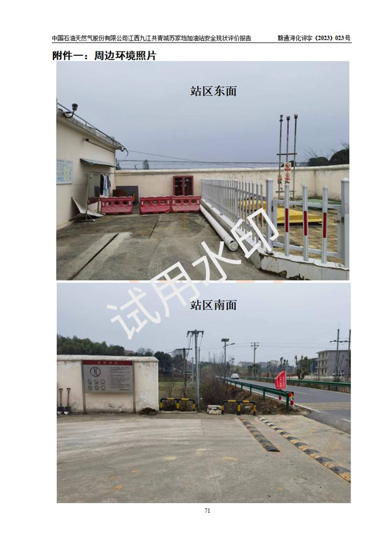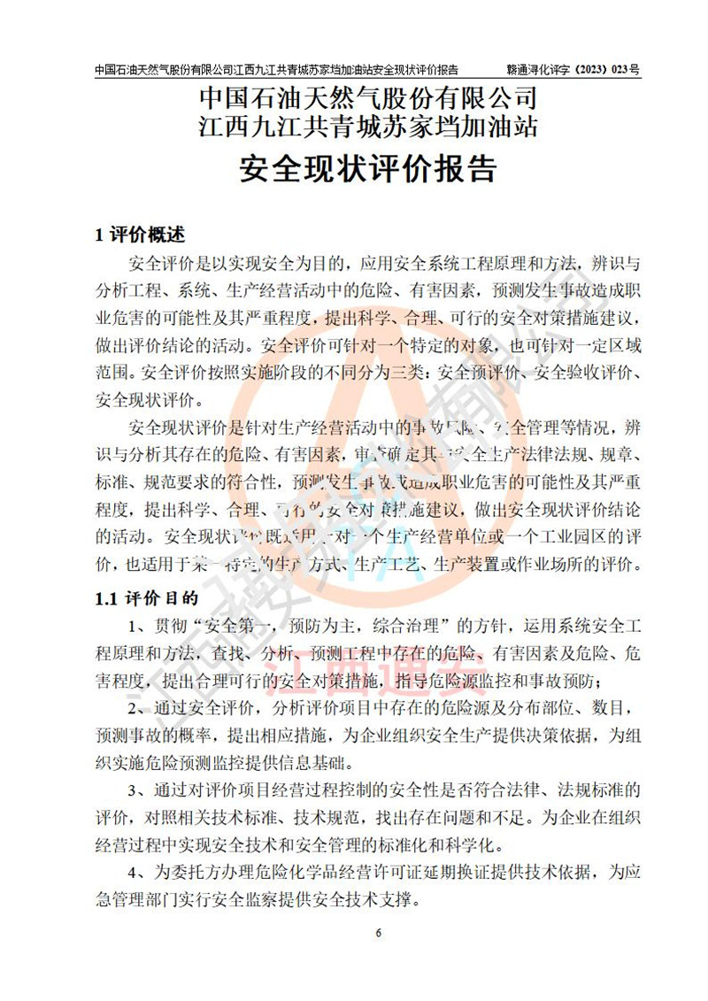 評價(jià)報(bào)告名稱 | 中國石油天然氣股份有限公司江西九江共青城蘇家垱加油站安全現(xiàn)狀評價(jià)報(bào)告 | |||