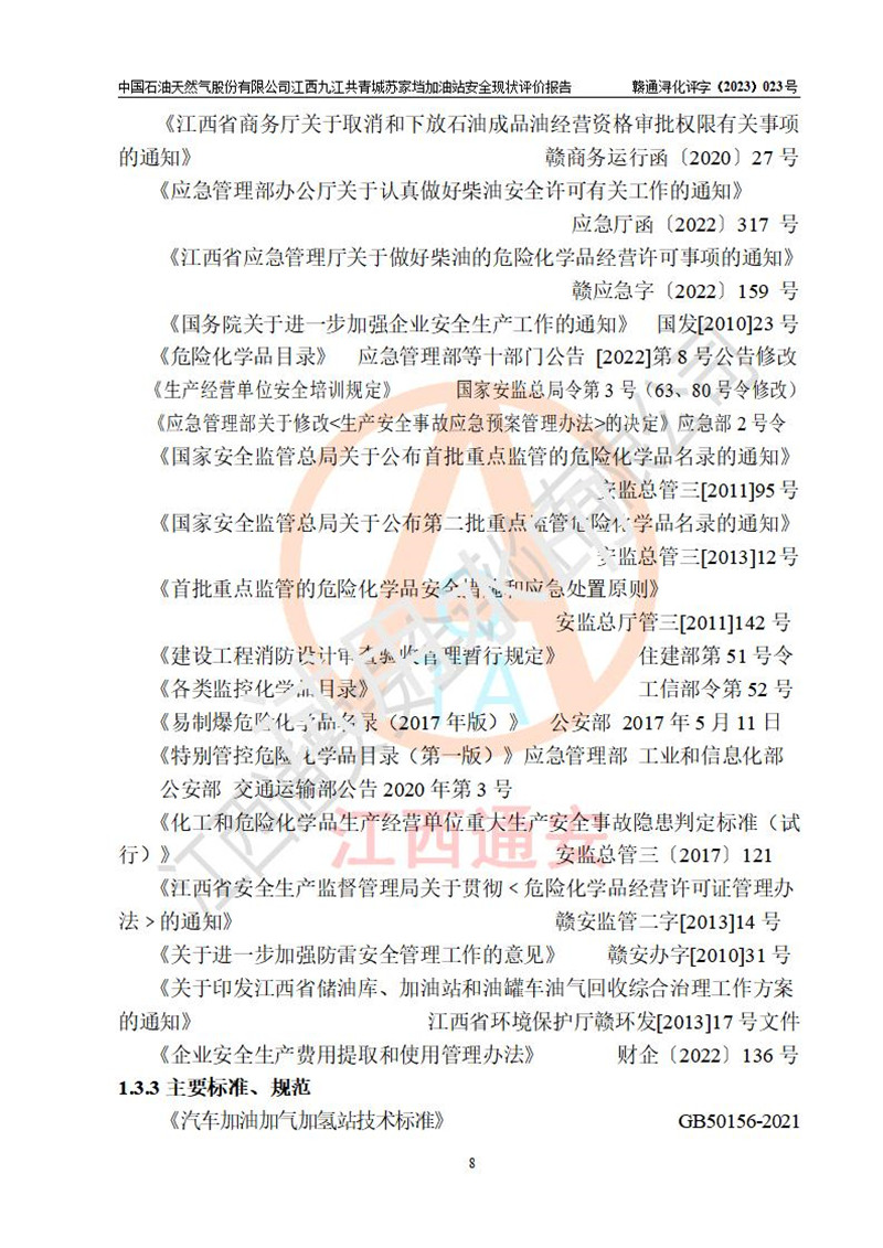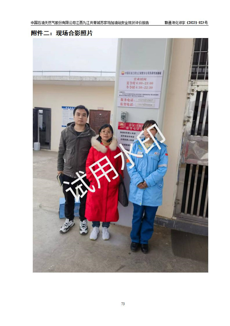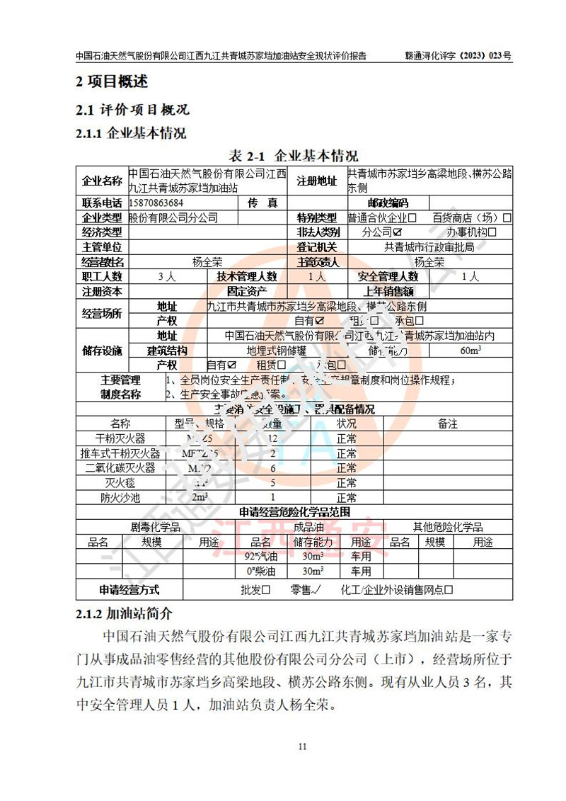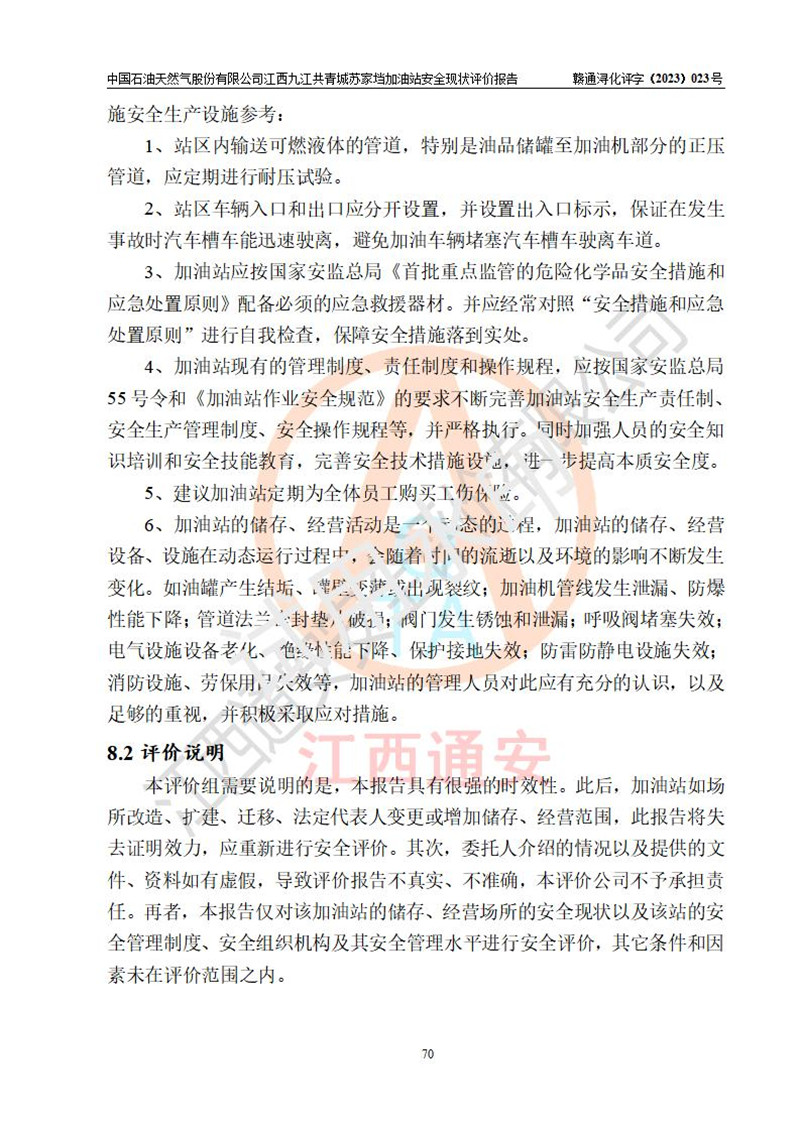 評價(jià)報(bào)告名稱 | 中國石油天然氣股份有限公司江西九江共青城蘇家垱加油站安全現(xiàn)狀評價(jià)報(bào)告 | |||