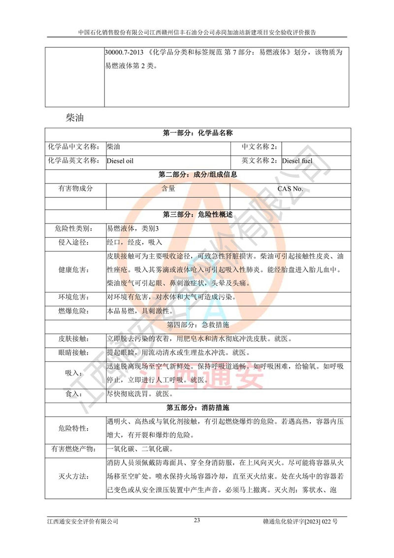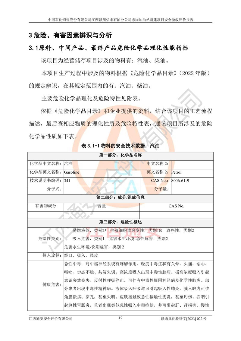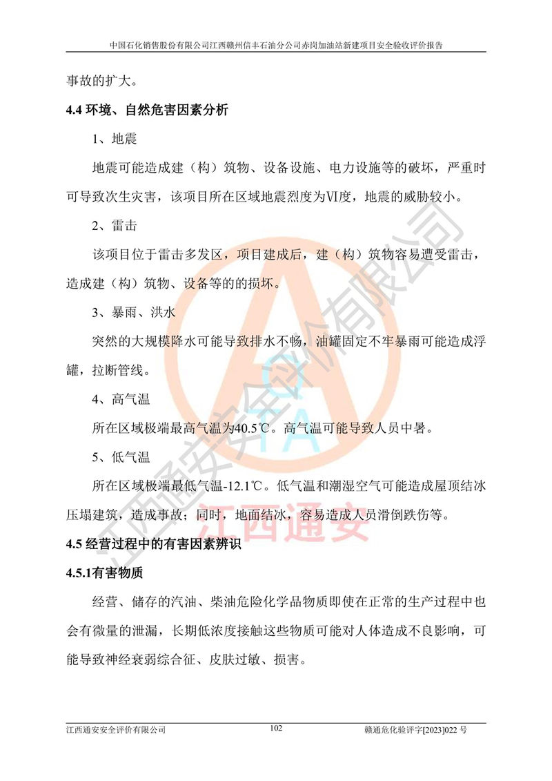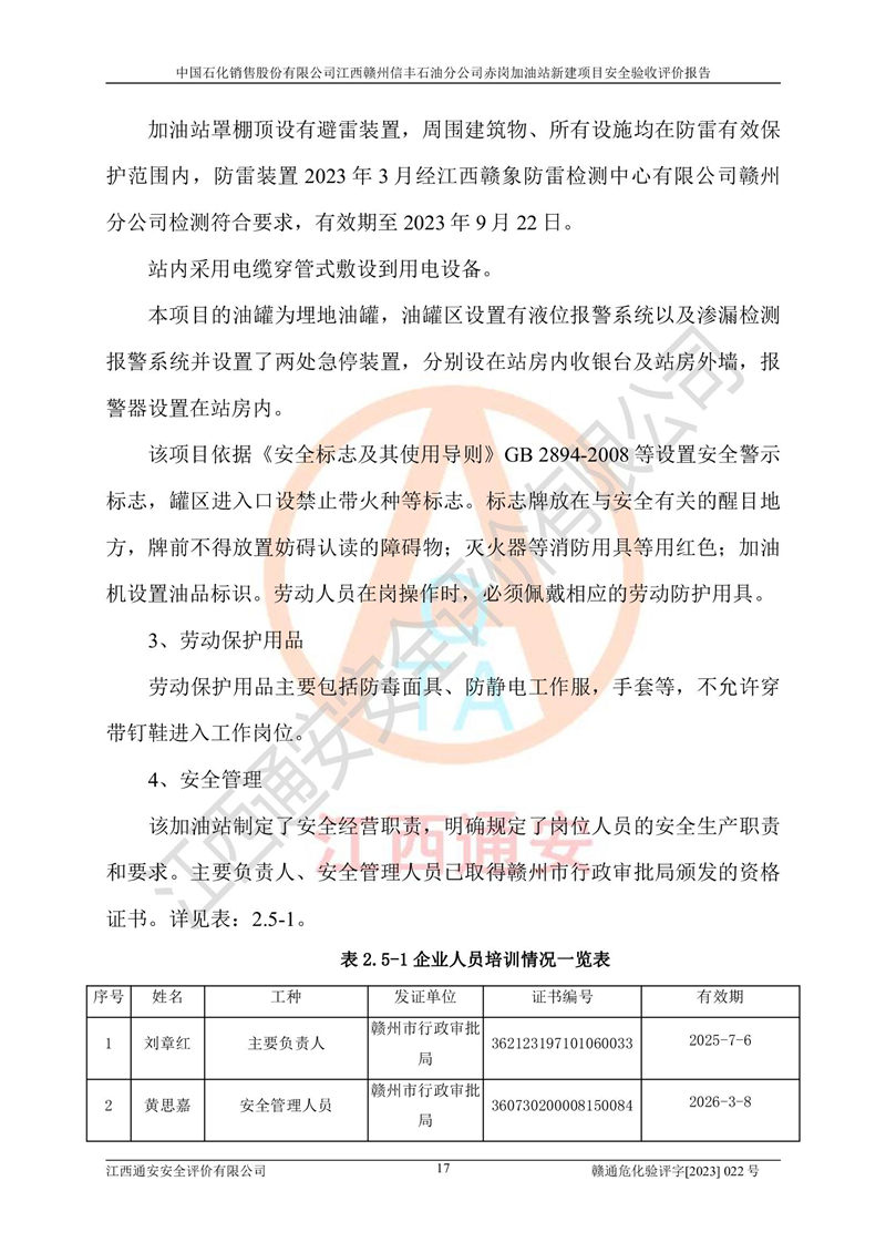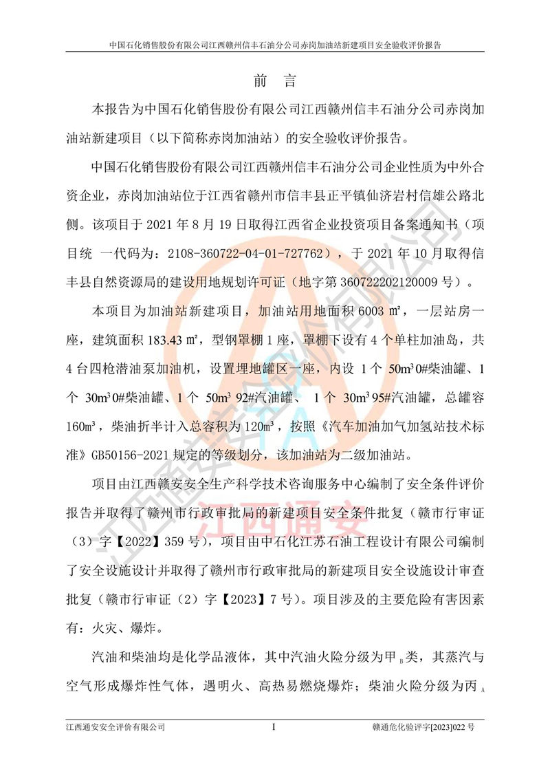 項目名稱 | 中國石化銷售股份有限公司江西贛州信豐石油分公司赤崗加油站新建項目安全驗收評價 | ||||