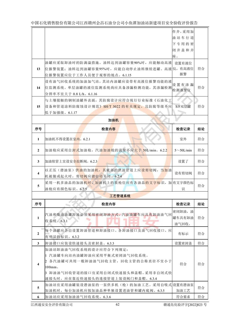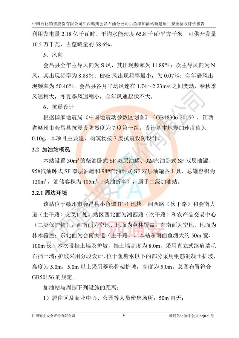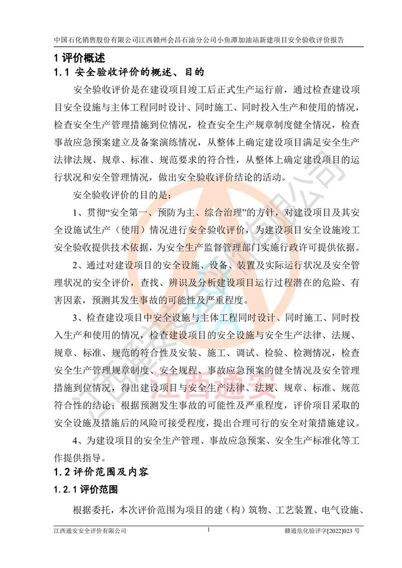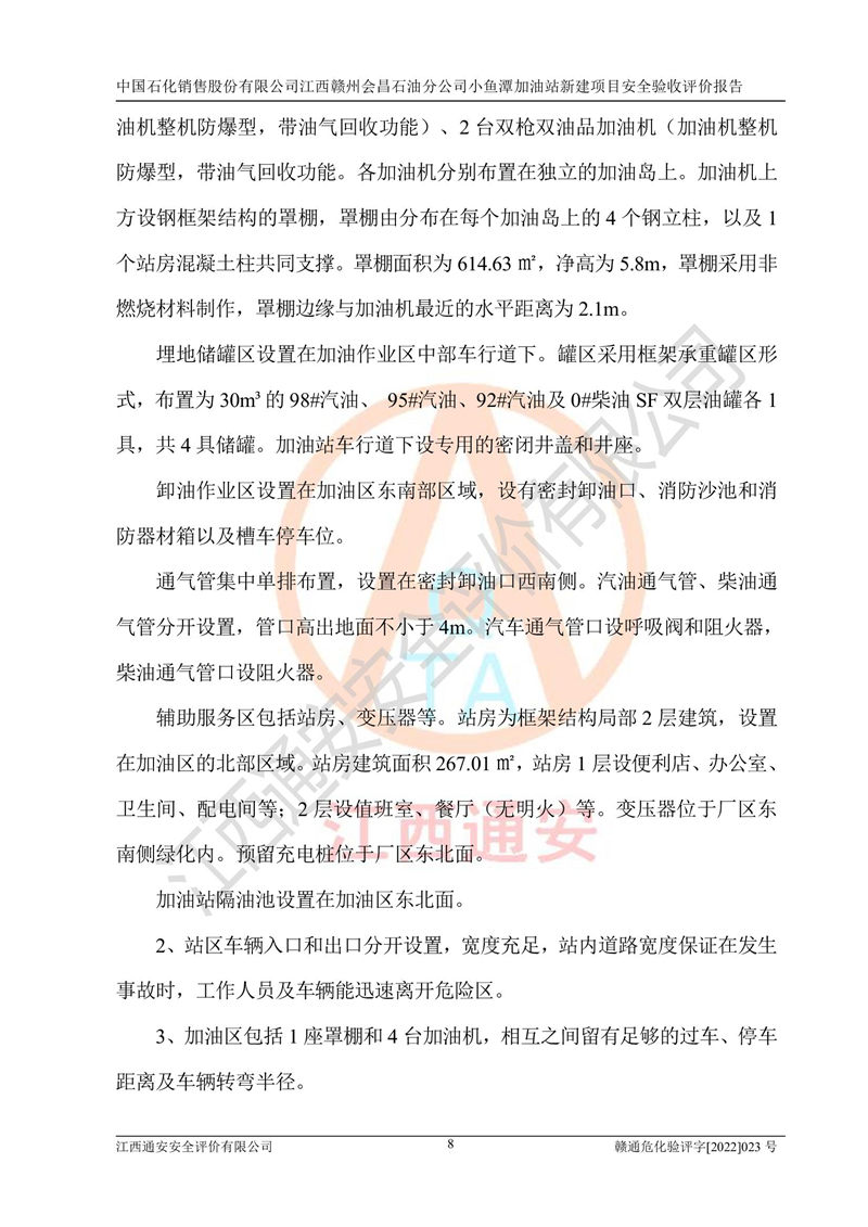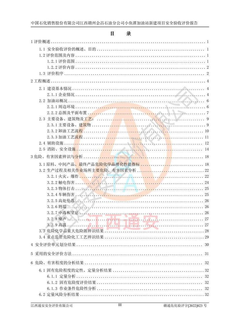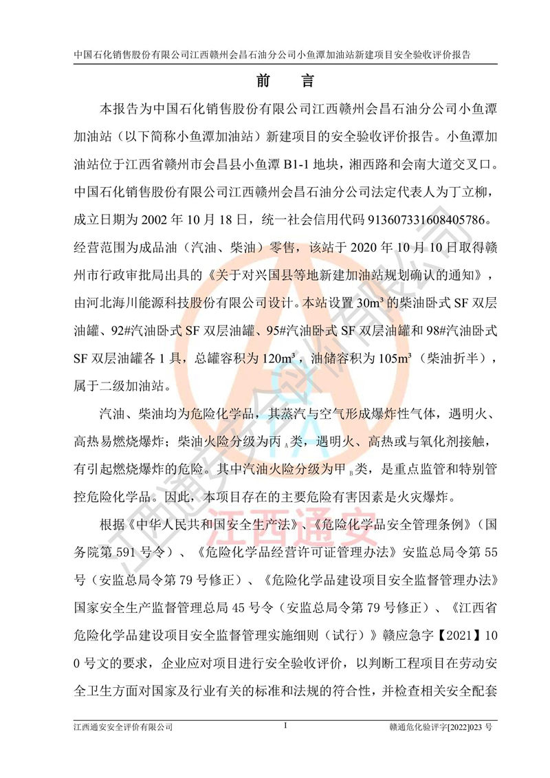 項(xiàng)目名稱 | 中國石化銷售股份有限公司江西贛州會(huì)昌石油分公司小魚潭加油站新建項(xiàng)目安全驗(yàn)收評(píng)價(jià)報(bào)告 | ||||