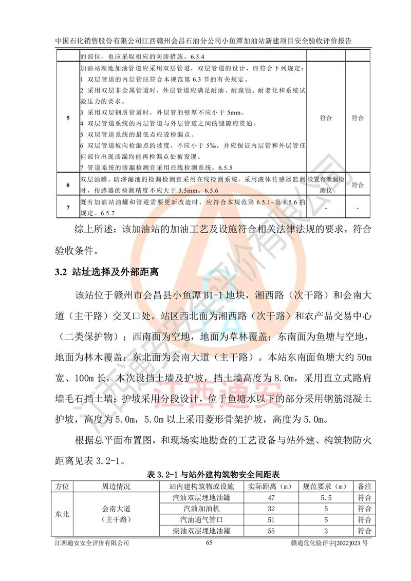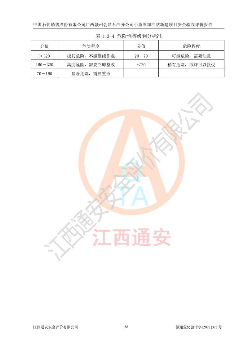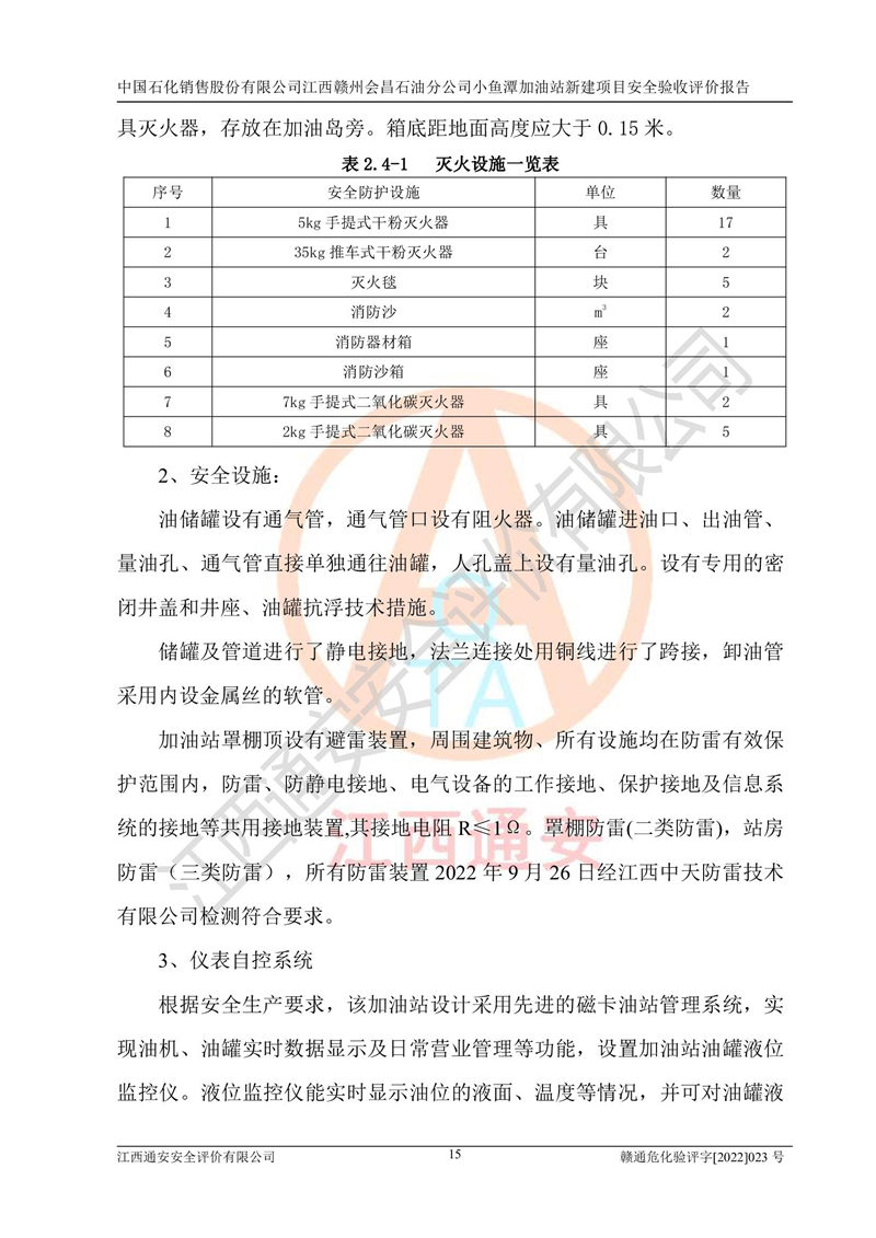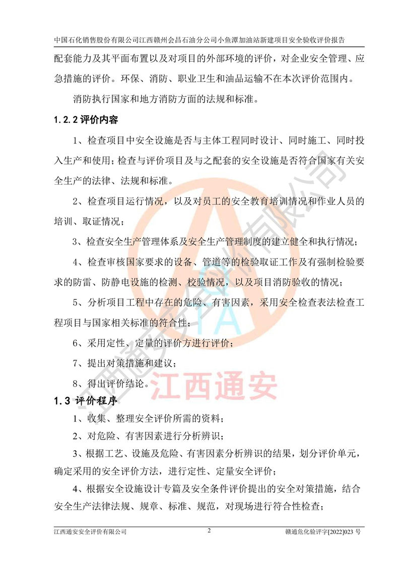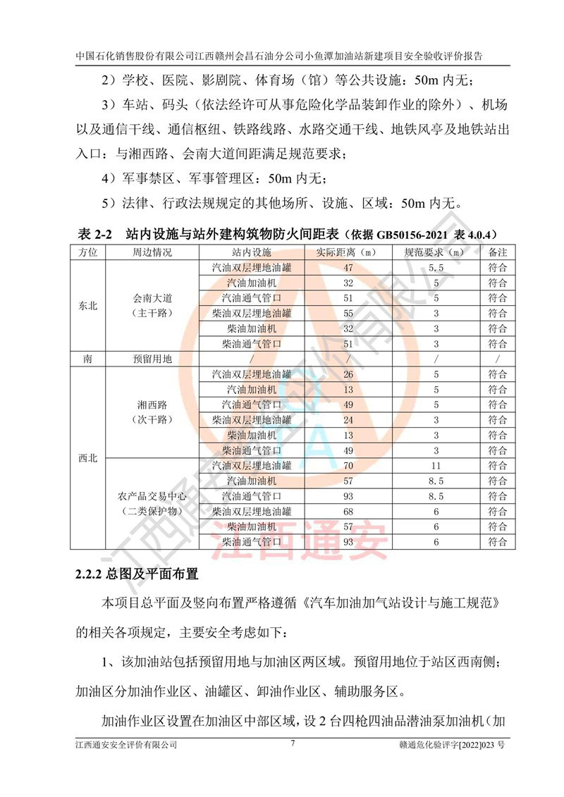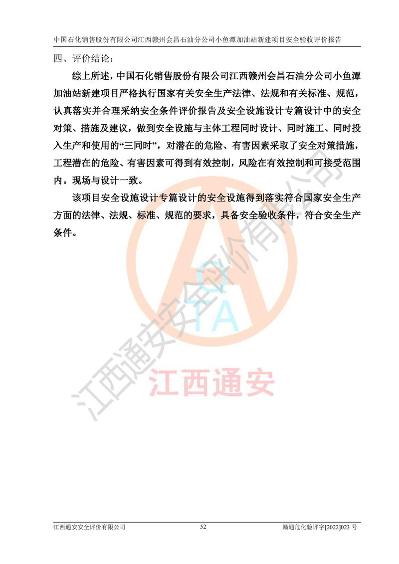 項(xiàng)目名稱 | 中國石化銷售股份有限公司江西贛州會(huì)昌石油分公司小魚潭加油站新建項(xiàng)目安全驗(yàn)收評(píng)價(jià)報(bào)告 | ||||