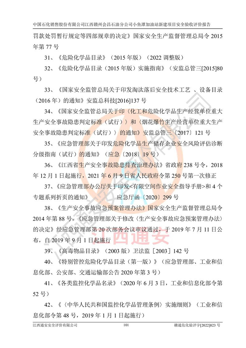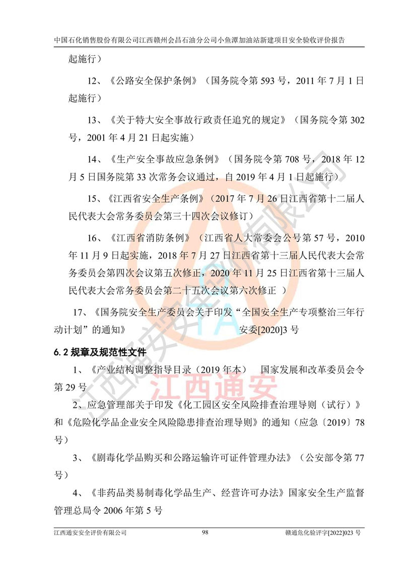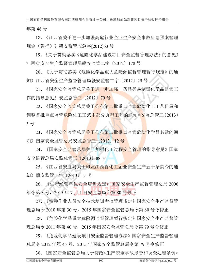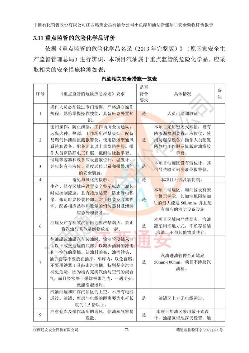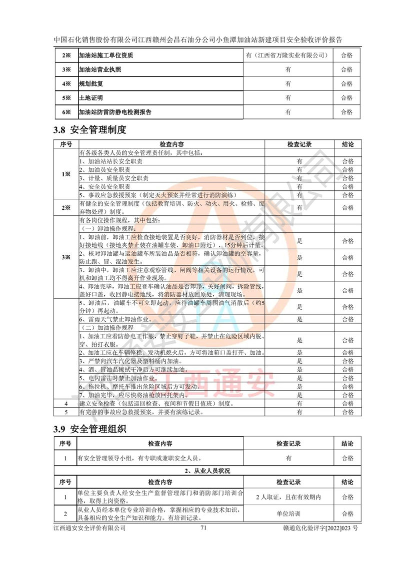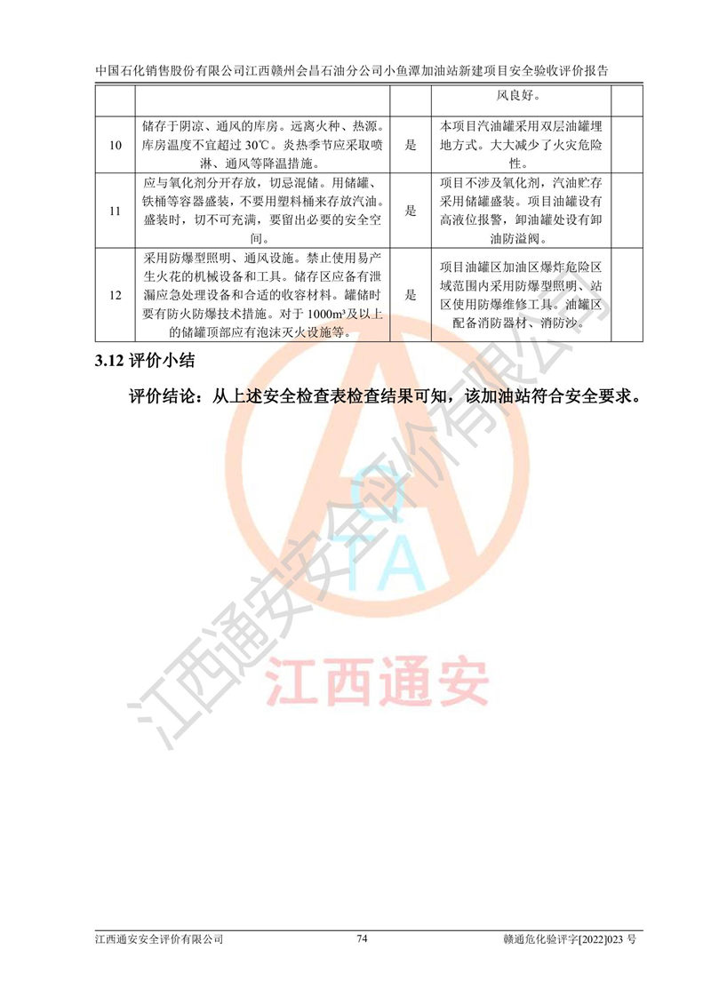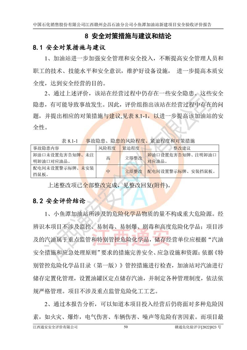 項(xiàng)目名稱 | 中國石化銷售股份有限公司江西贛州會(huì)昌石油分公司小魚潭加油站新建項(xiàng)目安全驗(yàn)收評(píng)價(jià)報(bào)告 | ||||