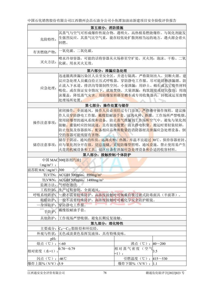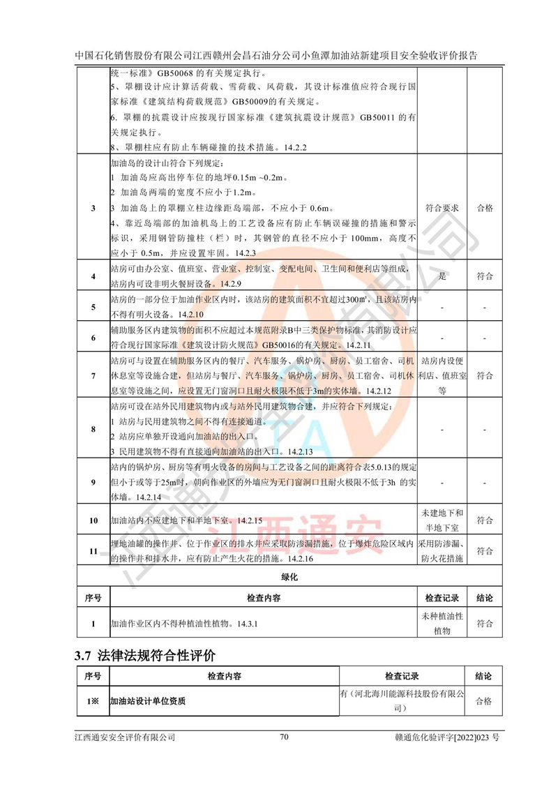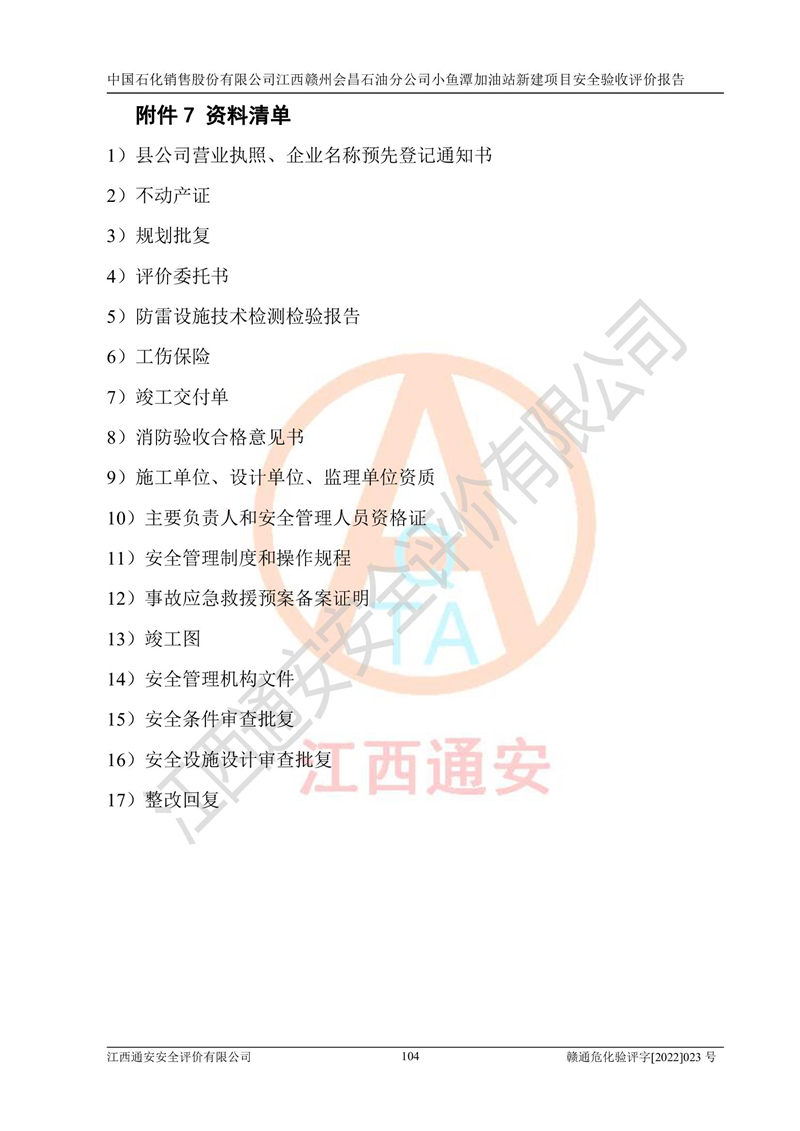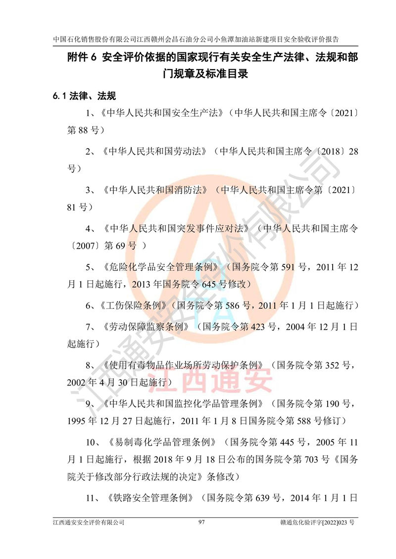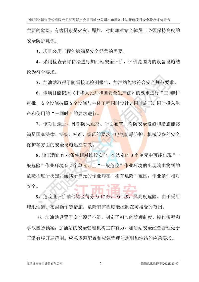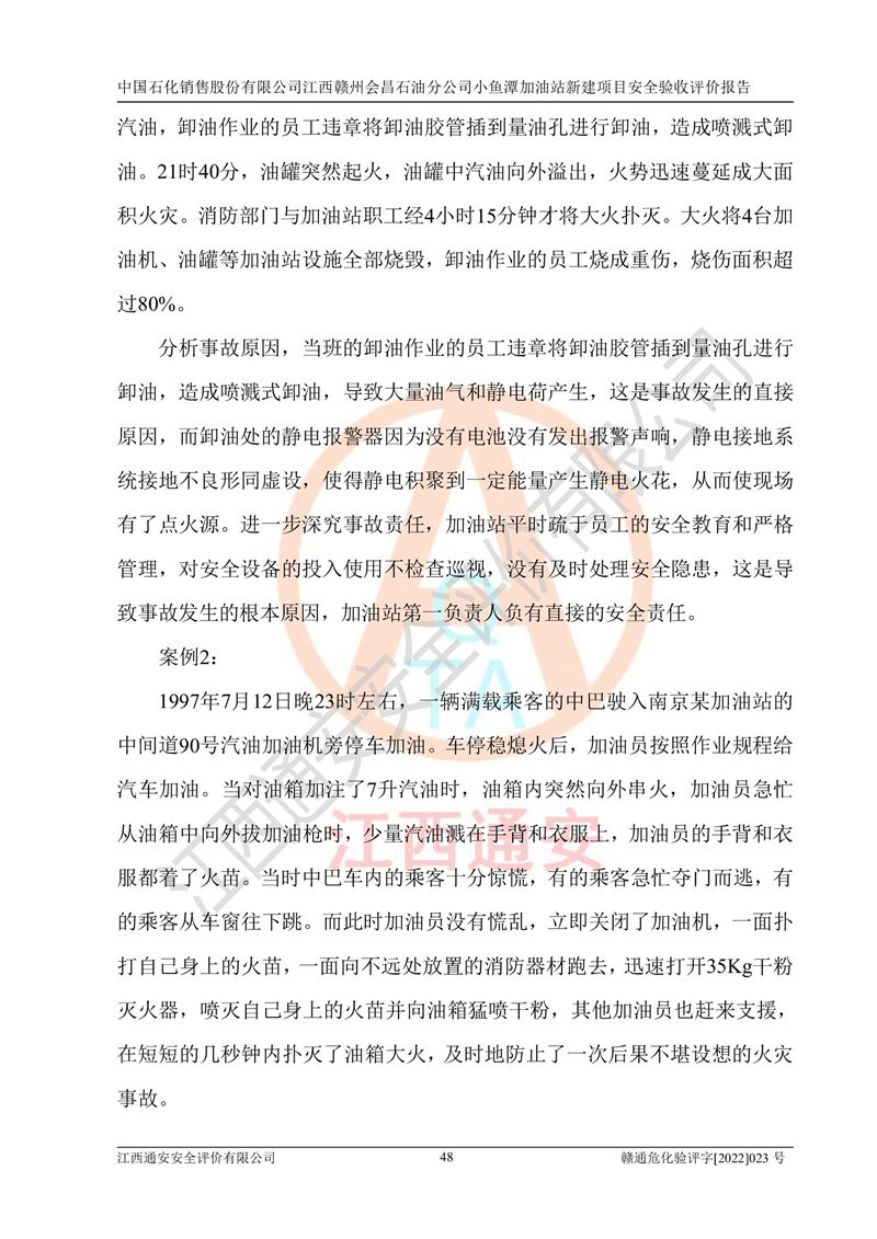 項(xiàng)目名稱 | 中國石化銷售股份有限公司江西贛州會(huì)昌石油分公司小魚潭加油站新建項(xiàng)目安全驗(yàn)收評(píng)價(jià)報(bào)告 | ||||