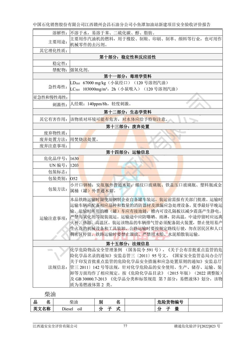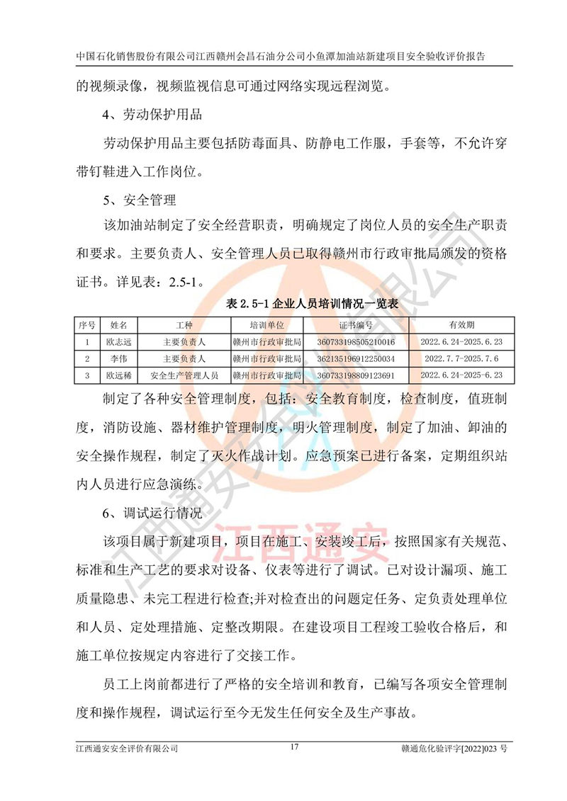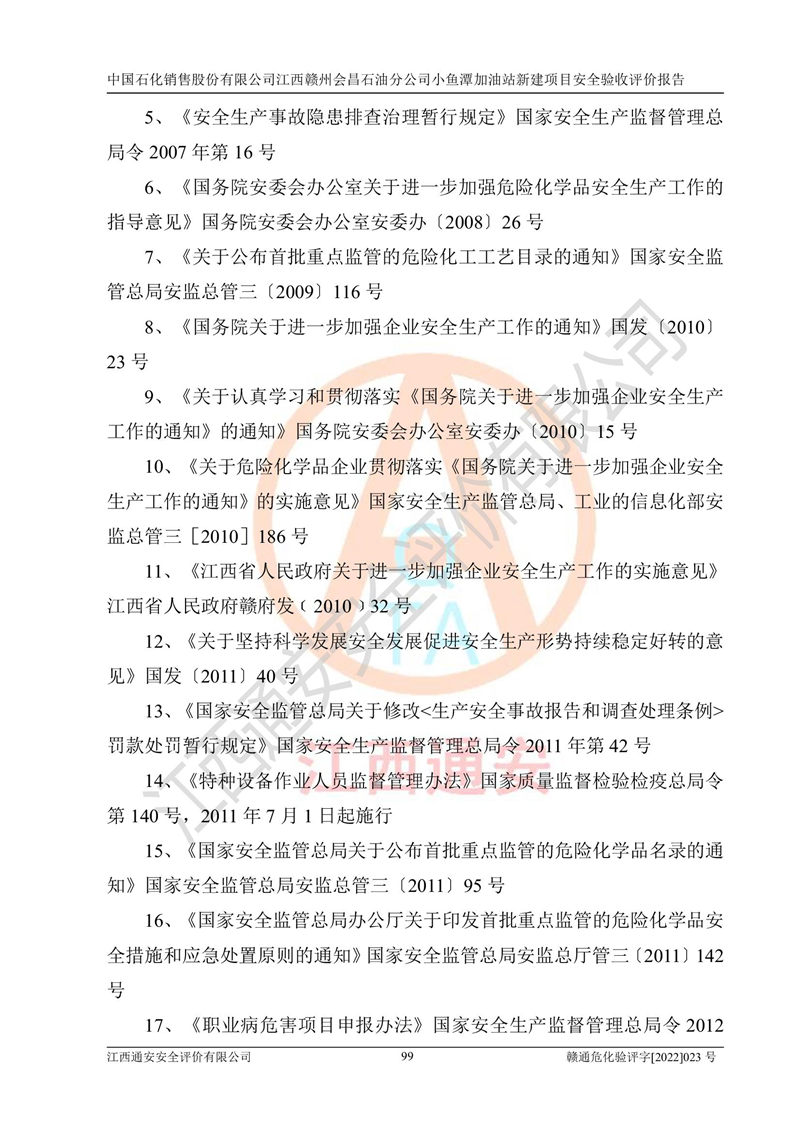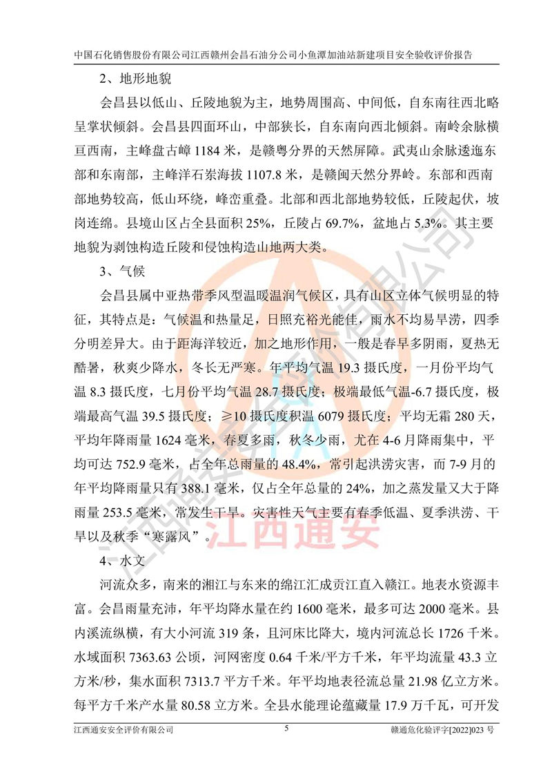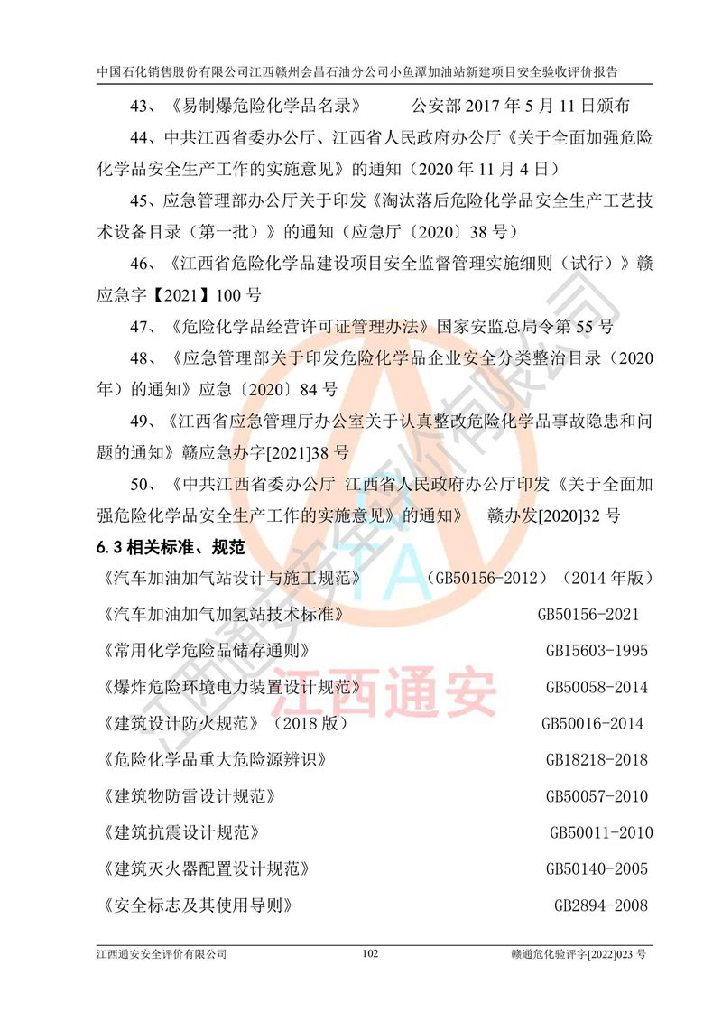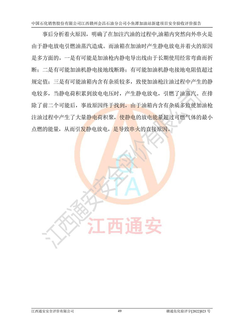 項(xiàng)目名稱 | 中國石化銷售股份有限公司江西贛州會(huì)昌石油分公司小魚潭加油站新建項(xiàng)目安全驗(yàn)收評(píng)價(jià)報(bào)告 | ||||