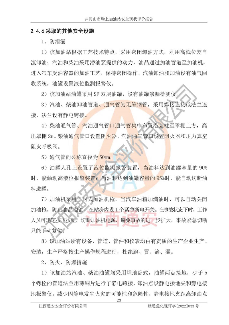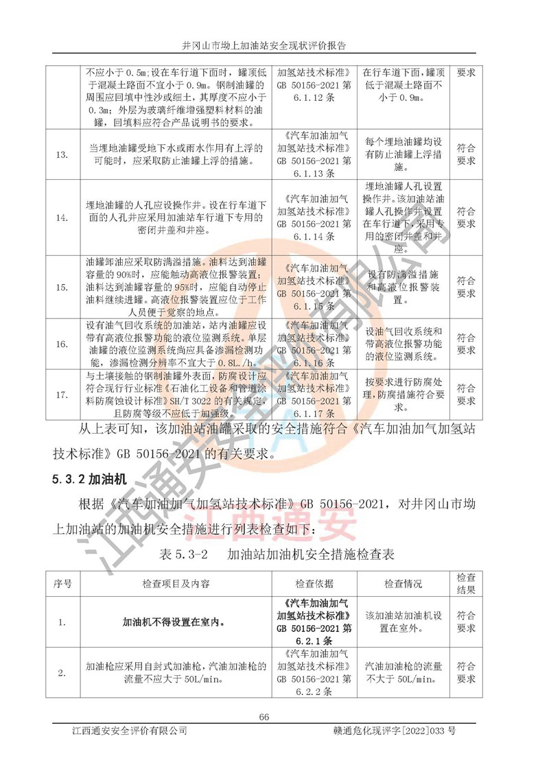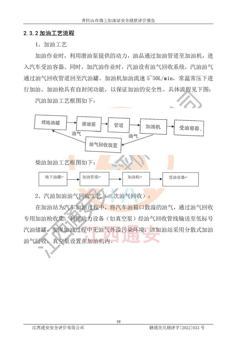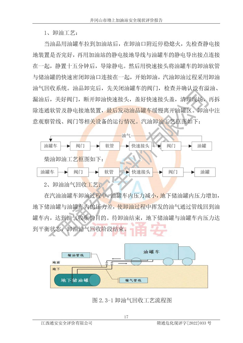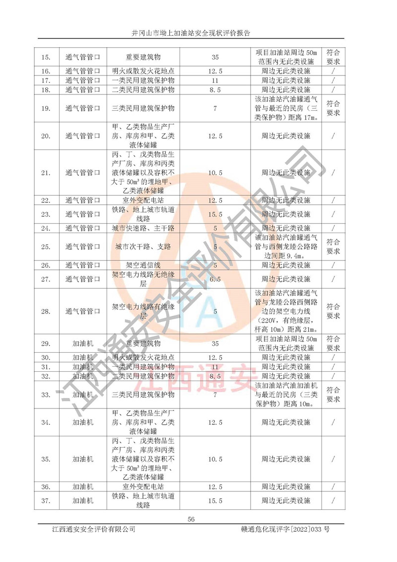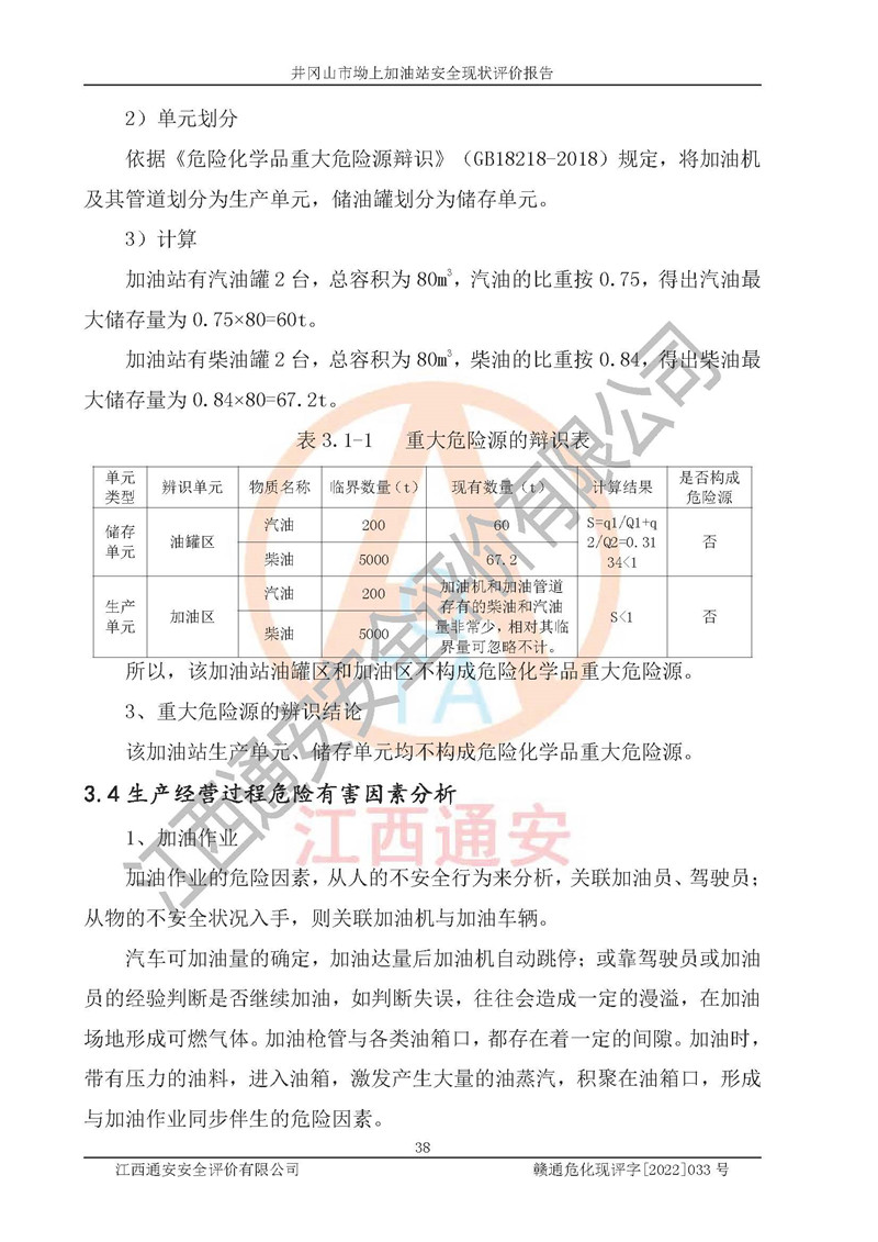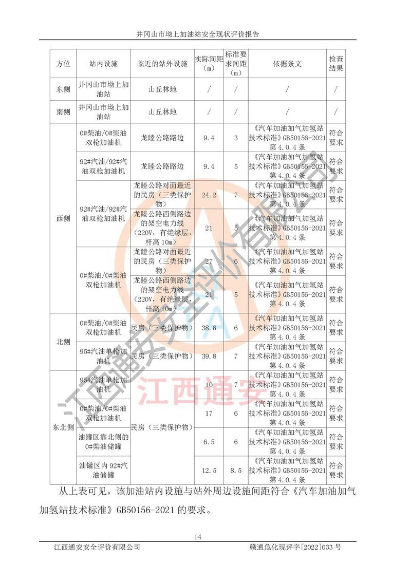 井岡山市坳上加油站是一家從事成品油零售經(jīng)營(yíng)的企業(yè)。該加油站于2014年7月1日經(jīng)井岡山市市場(chǎng)監(jiān)督管理局核準(zhǔn)注冊(cè)成立,營(yíng)業(yè)場(chǎng)所位于江西省井岡山市龍市鎮(zhèn)龍睦公路旁。該加油站屬于個(gè)人獨(dú)資企業(yè),負(fù)責(zé)人為吳亮,營(yíng)業(yè)執(zhí)照統(tǒng)一社會(huì)信用代碼為:913608817485108365。營(yíng)業(yè)執(zhí)照核準(zhǔn)經(jīng)營(yíng)范圍:成品油(汽油、柴油)、潤(rùn)滑油*卷煙、雪茄煙*預(yù)包裝食品兼散裝食品*零售(依法須經(jīng)批準(zhǔn)的項(xiàng)目,經(jīng)相關(guān)部門批準(zhǔn)后方可開展經(jīng)營(yíng)活動(dòng))。 井岡山市坳上加油站占地面積約974㎡,該加油站油罐設(shè)置罩棚下的車道下面,在罩棚下設(shè)置承重罐池,承重罐池內(nèi)每個(gè)隔池內(nèi)油罐數(shù)量按不多于兩臺(tái)設(shè)置,密閉卸油點(diǎn)設(shè)在原罐區(qū)東北面靠護(hù)坡一側(cè)。罩棚下設(shè)置的承重罐池設(shè)置有2臺(tái)40m3SF雙層0#柴油臥式埋地儲(chǔ)罐,1臺(tái)40m3SF雙層95#汽油臥式埋地儲(chǔ)罐,1臺(tái)40m3SF雙層92#汽油臥式埋地儲(chǔ)罐。該加油站油品*大總儲(chǔ)存能力為160m3,折算之后120m3(柴油罐容積折半計(jì)入油罐總?cè)莘e),屬二級(jí)加油站,該加油站汽油卸油、加油均設(shè)置了油氣回收系統(tǒng)。 |